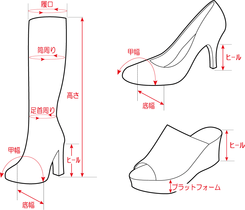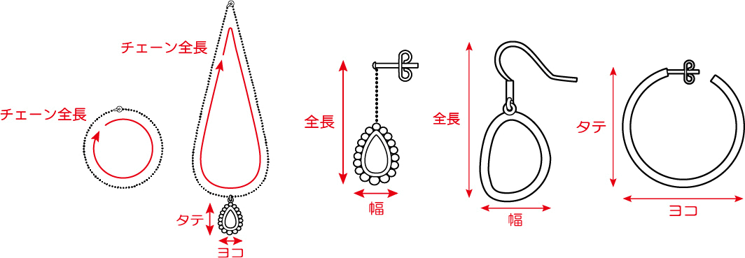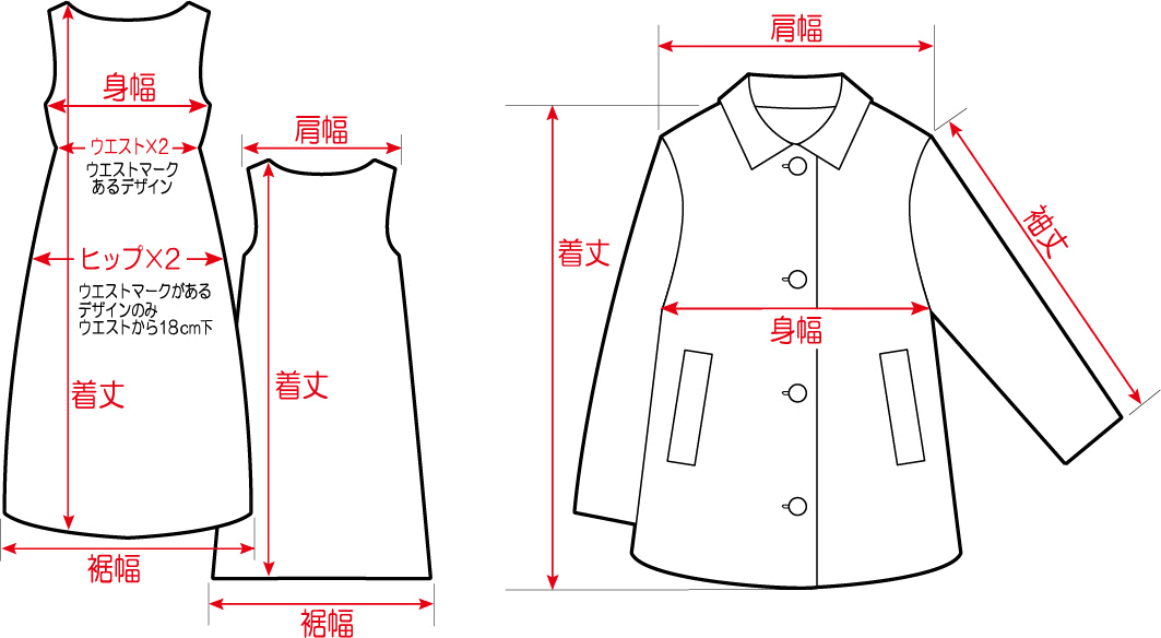 商品詳細ページに記載されている商品のサイズは、下記の表示に従って採寸しております。