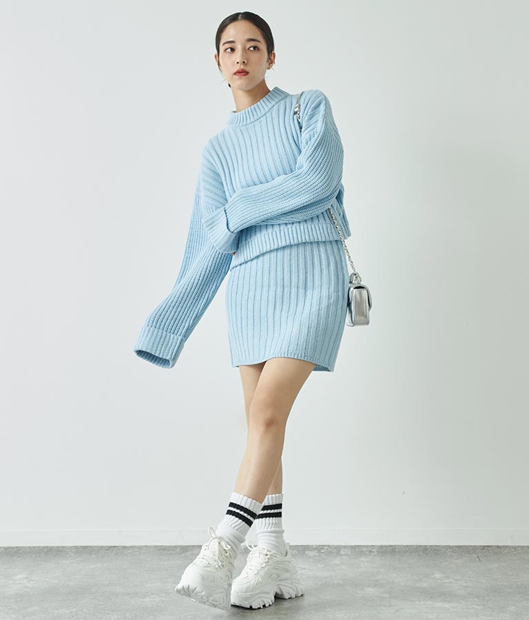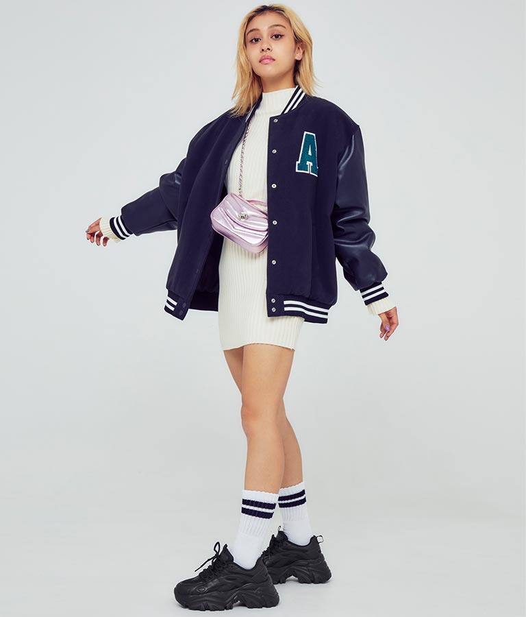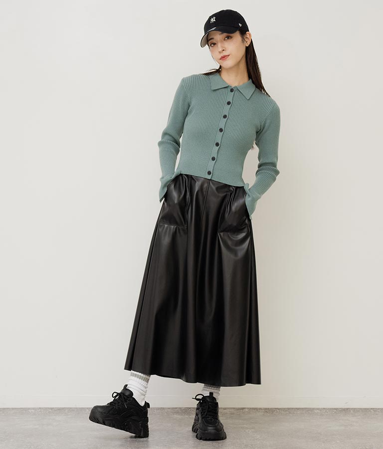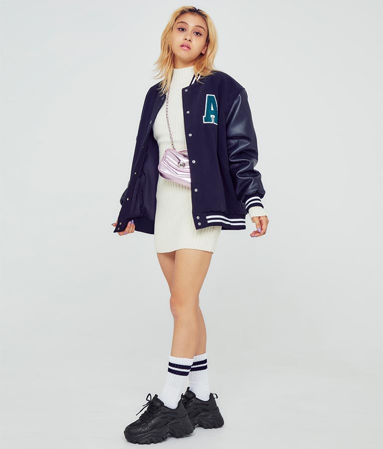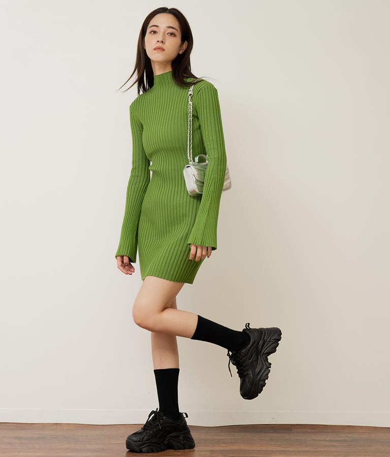 シンプルな単色使いがクールな厚底スニーカー、 メンズライクな雰囲気ですが、どんなコーディネートにも馴染みやすいのがポイントです。