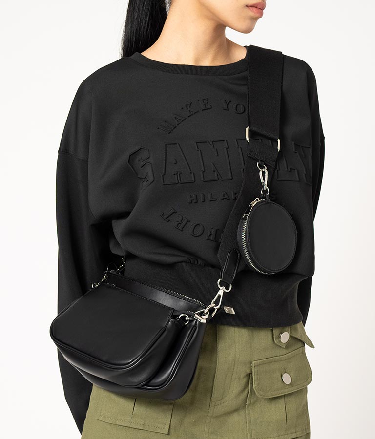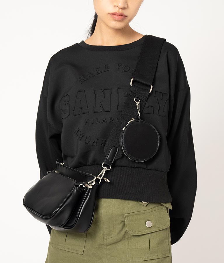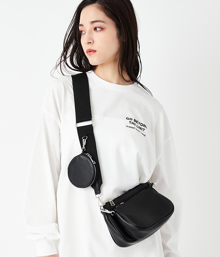 鍵やコインなど細かいアイテムを入れるのに便利なサークル型のポーチも取り外し可能です。