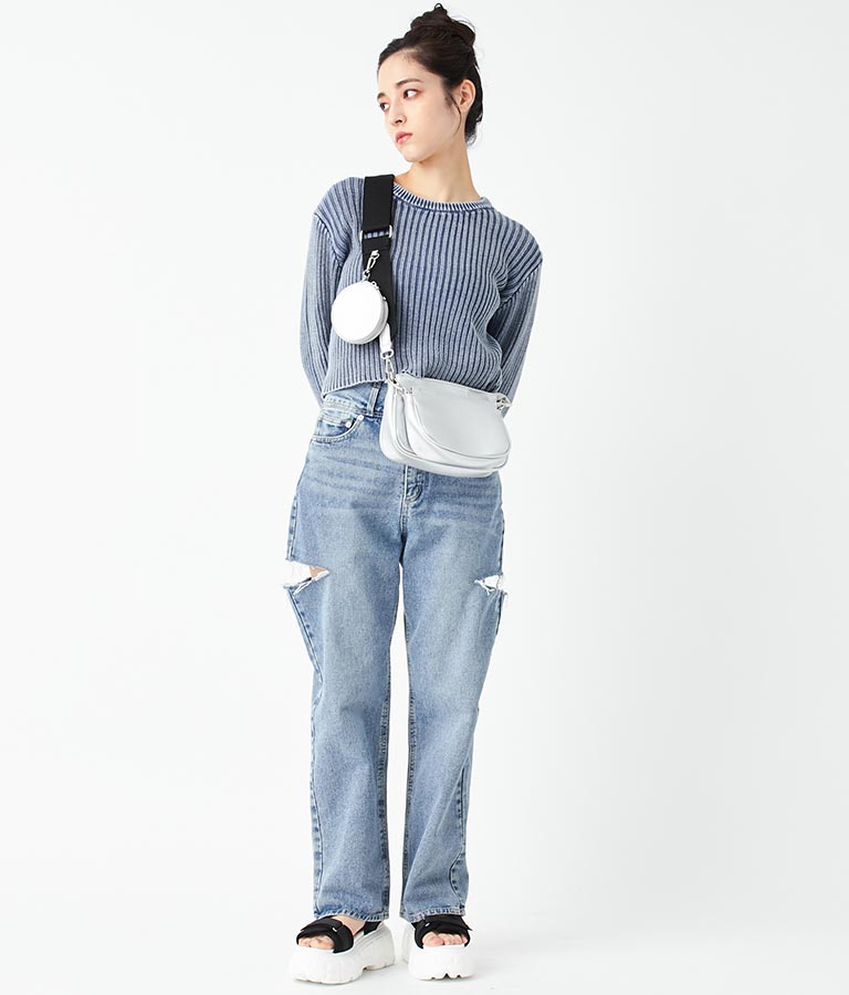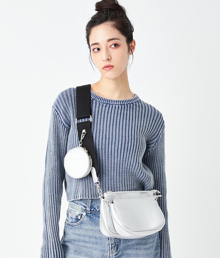 ショルダー部分はテープベルトとチェーンで付け替えができ、気分によって変えるのもおすすめ。