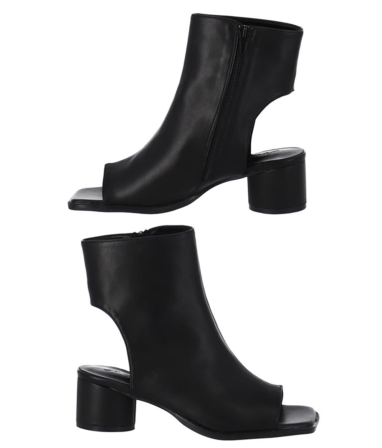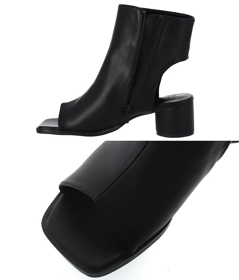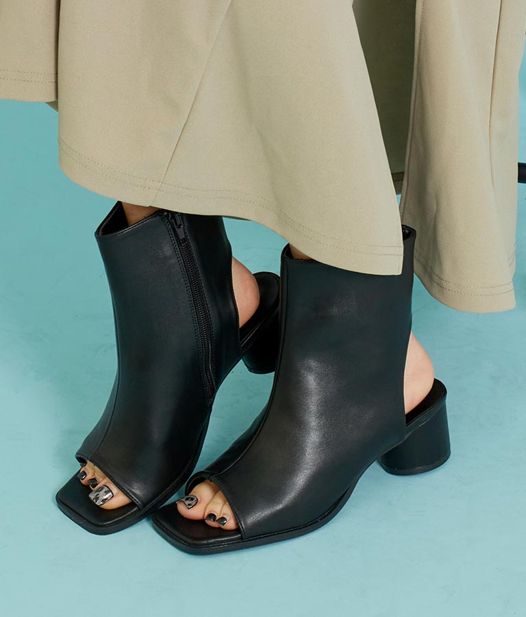 開放的なオープントゥが洗練された雰囲気を漂わせるスクエアブーツ。