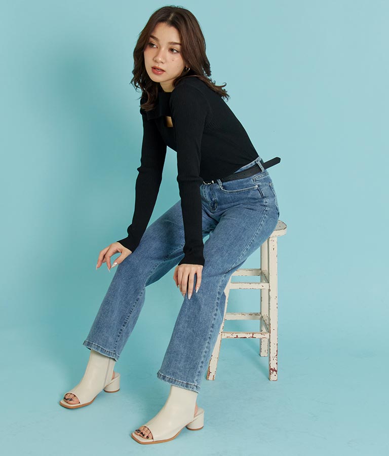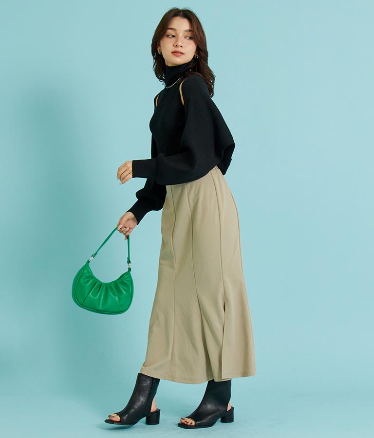 足先が見えることで重たい印象にならず、ロングボトムに合わせても抜け感が出せます◎