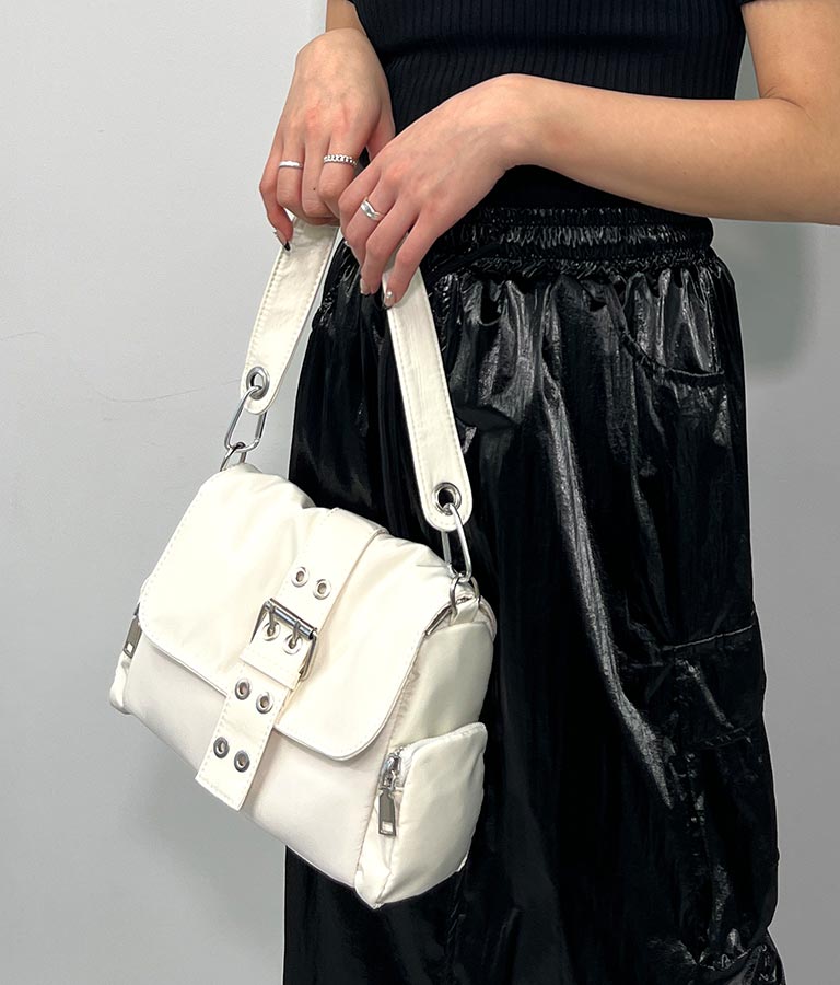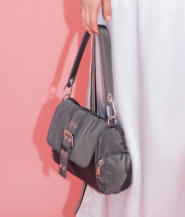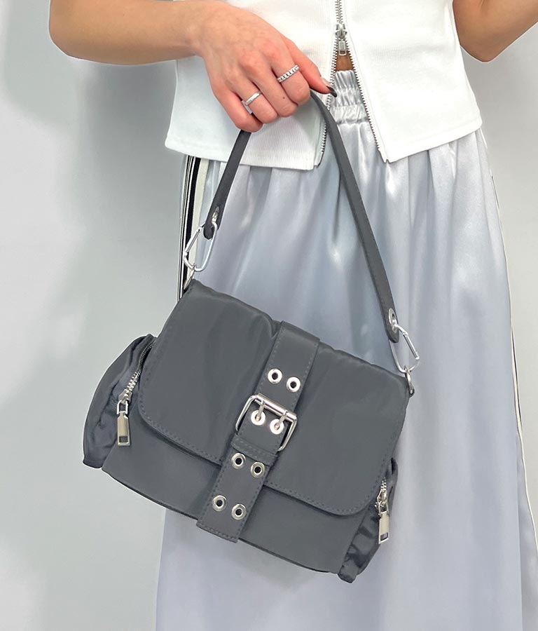 程よく艶感のあるナイロン素材がクールなショルダーバッグ。