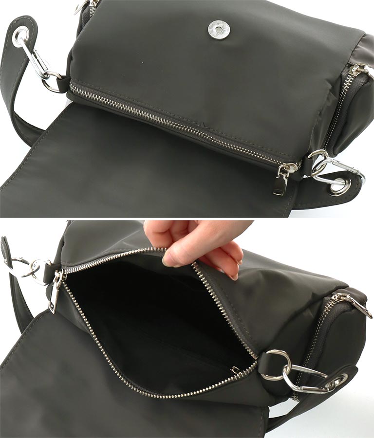 両サイドには2つのZIPポケットがあり、さっと取り出したい荷物の収納に便利です◎