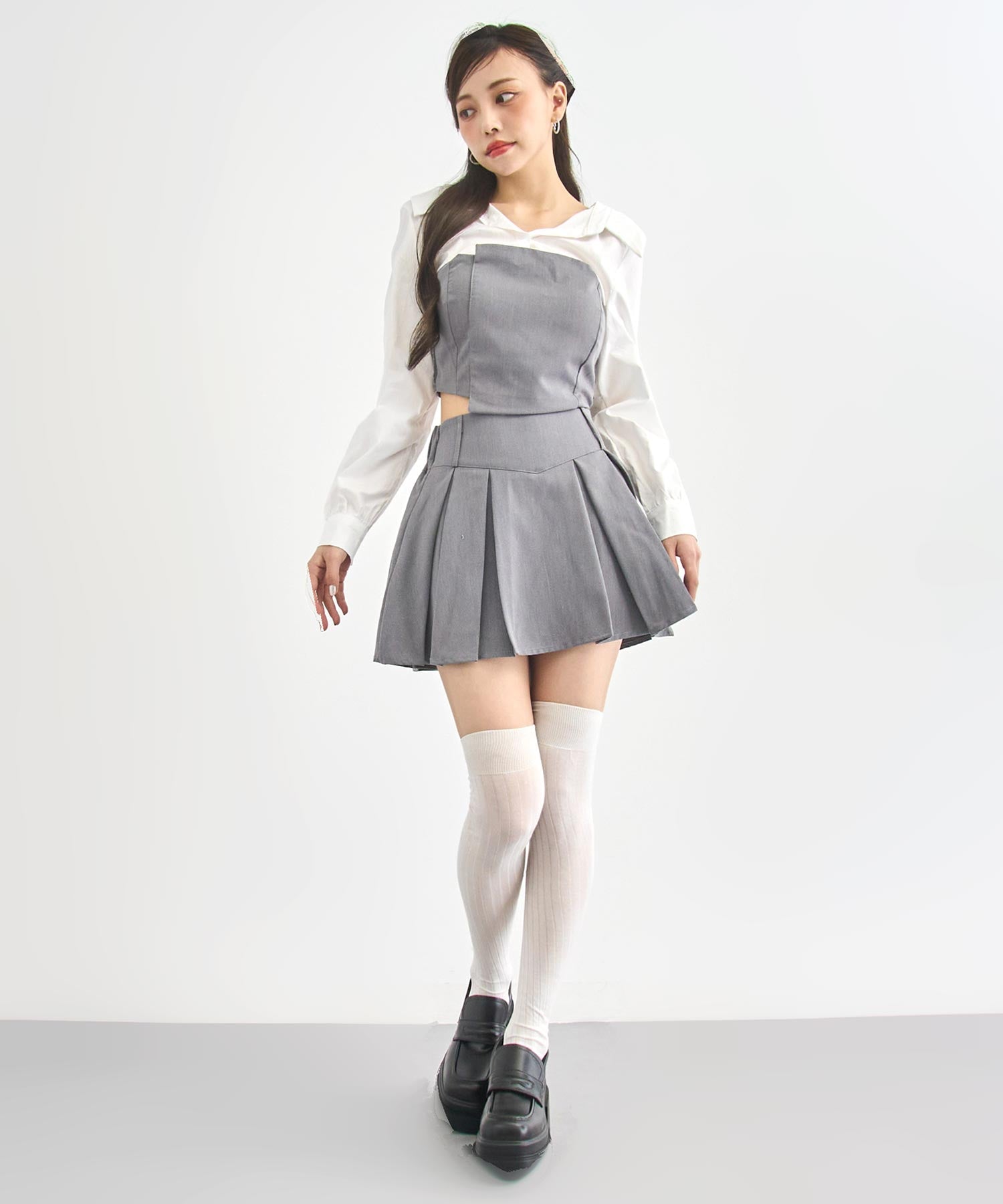 スクールライクになりたい系統→プリーツスカートやシャツと組み合わせ、ソックスで抜け感を演出。