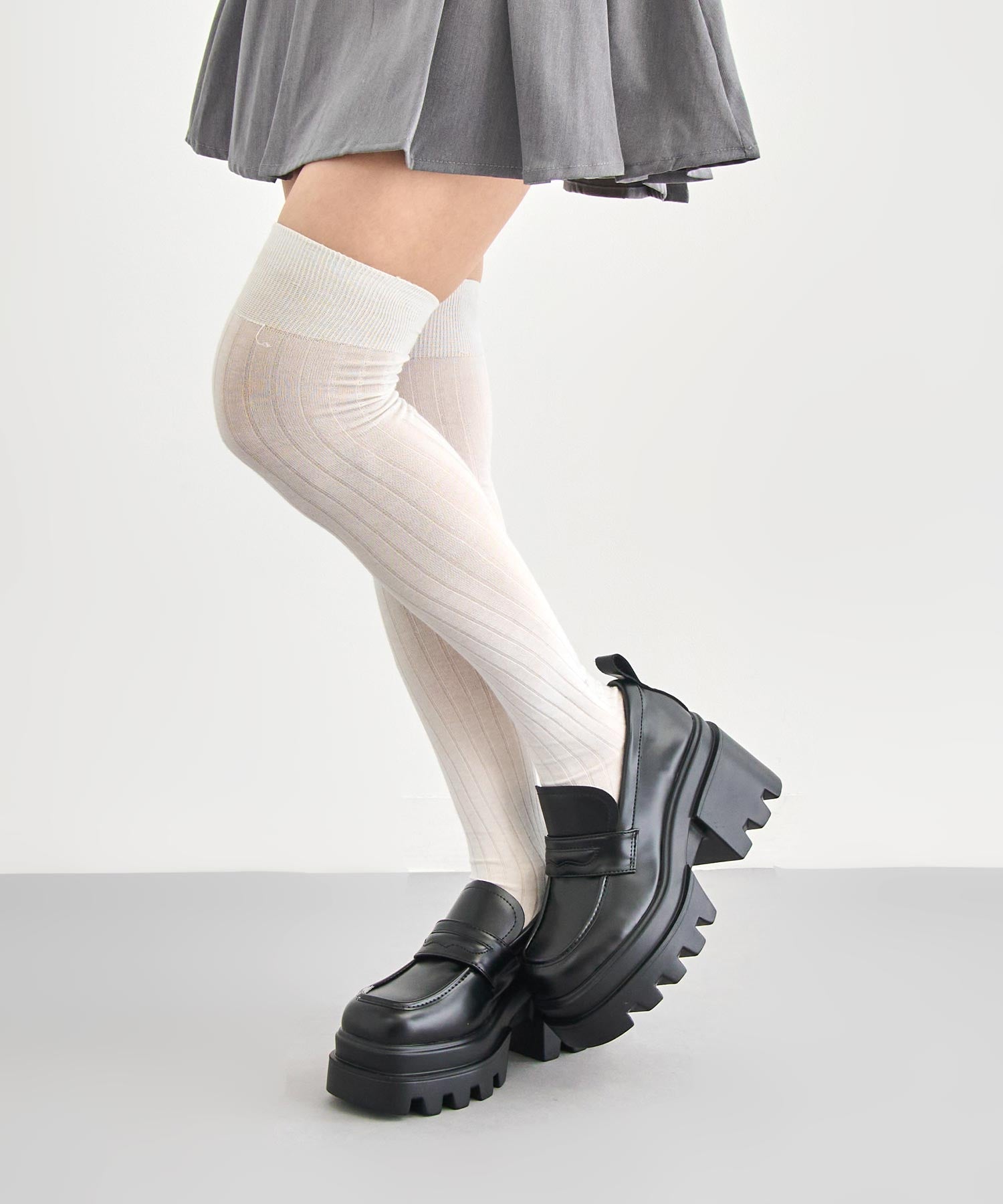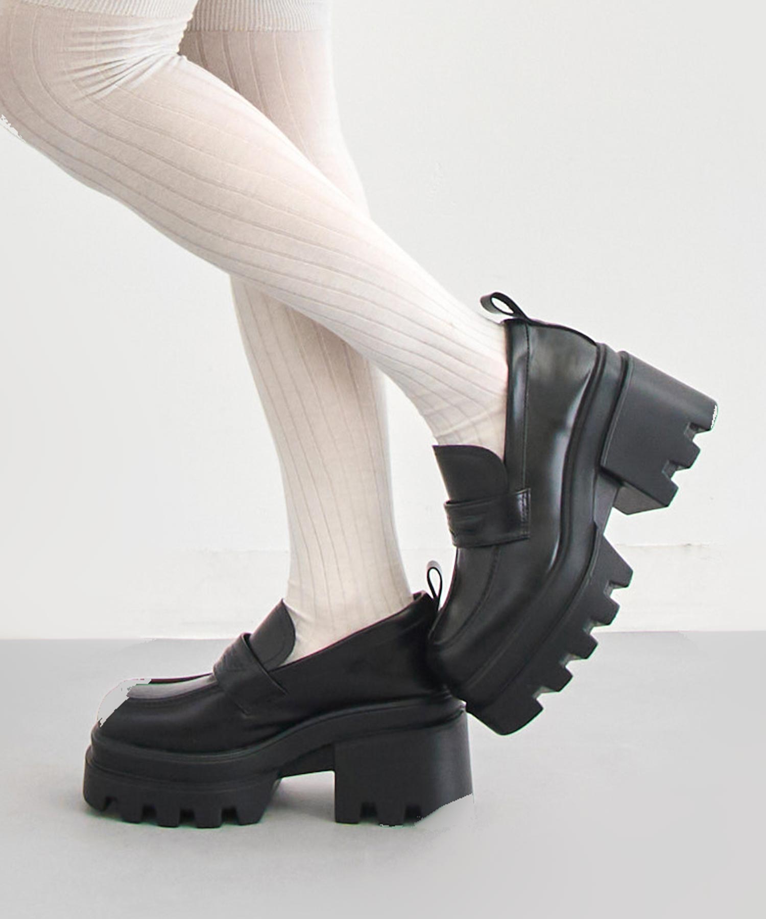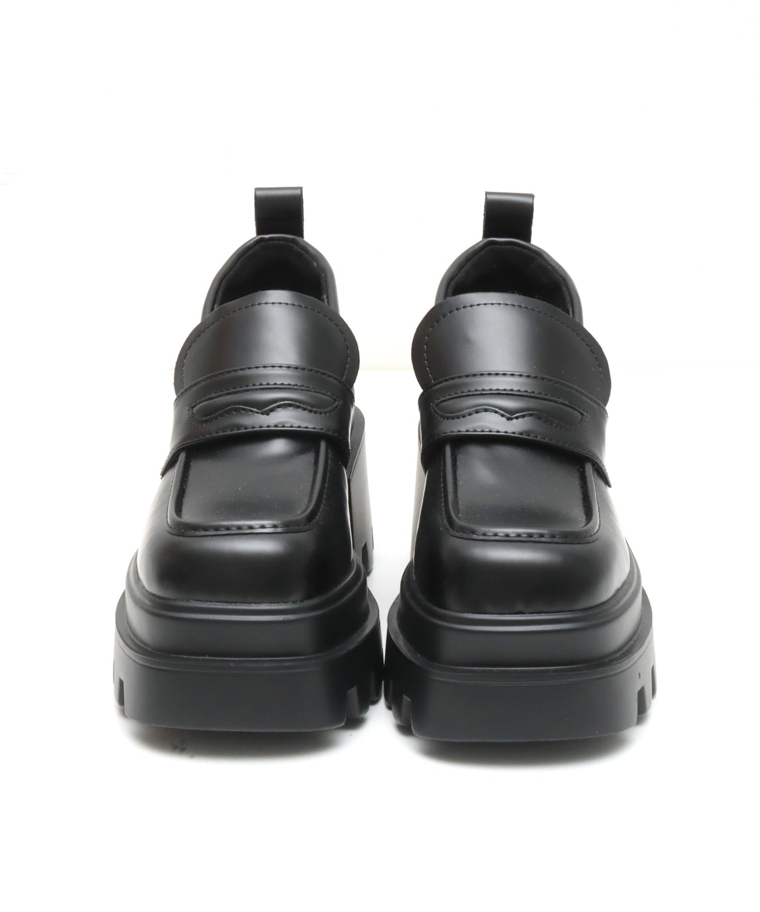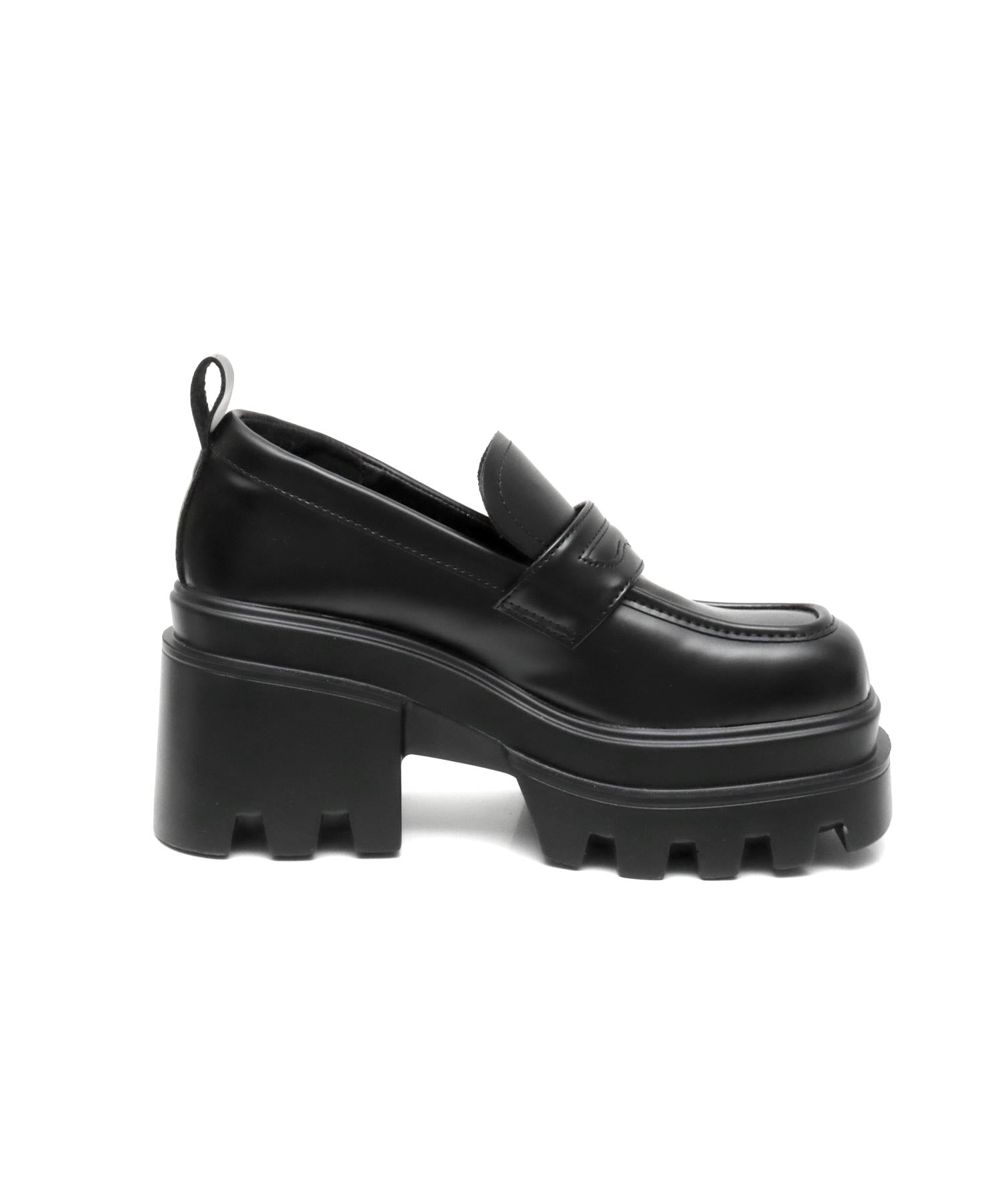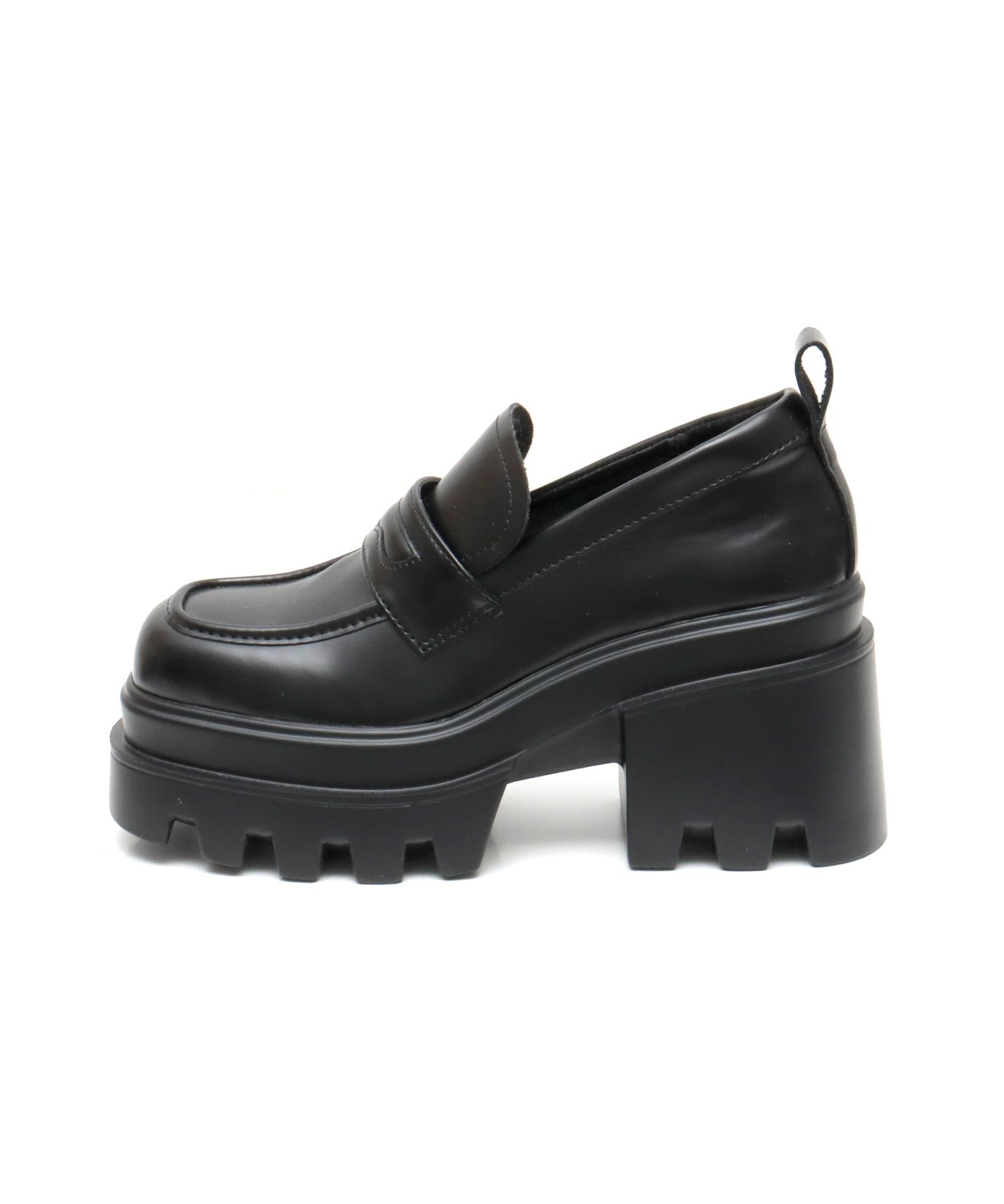 ボリュームのある厚底ソールが自然なスタイルアップを叶え、重心を高めることで全身のシルエットを美しく整えます。存在感のあるタンクソールは安定感があり、見た目以上に歩きやすい設計。艶を抑えた上品なフェイクレザーがモードな雰囲気を演出し、程よい丸みのトゥラインが女性らしさもキープします。ローファーデザインならではのきちんと感がありながら、ストリートにも馴染む絶妙なバランスが魅力です。