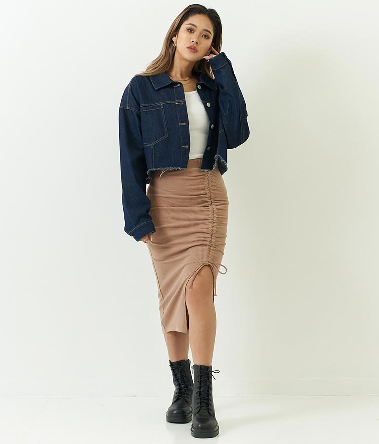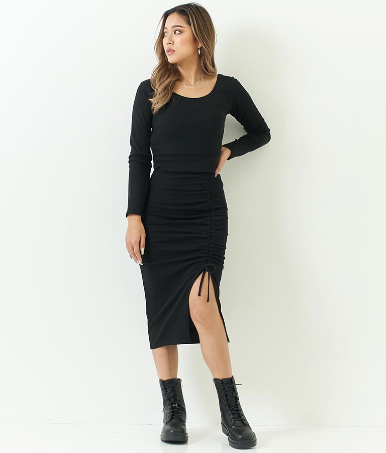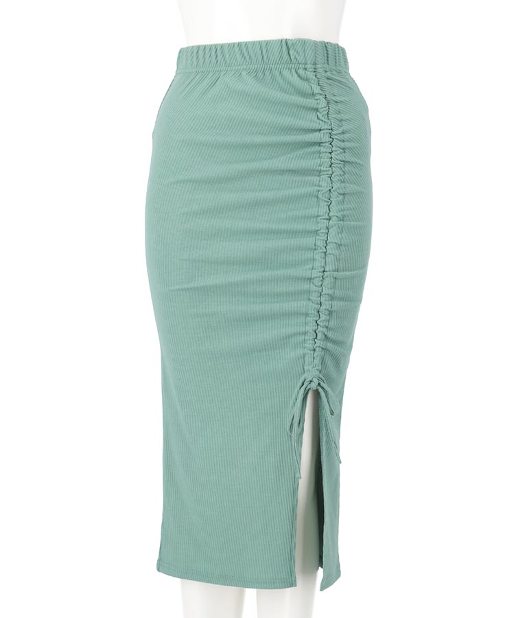 伸縮性のあるリブ素材で着心地抜群なスカート。