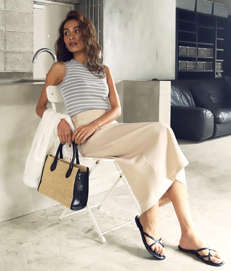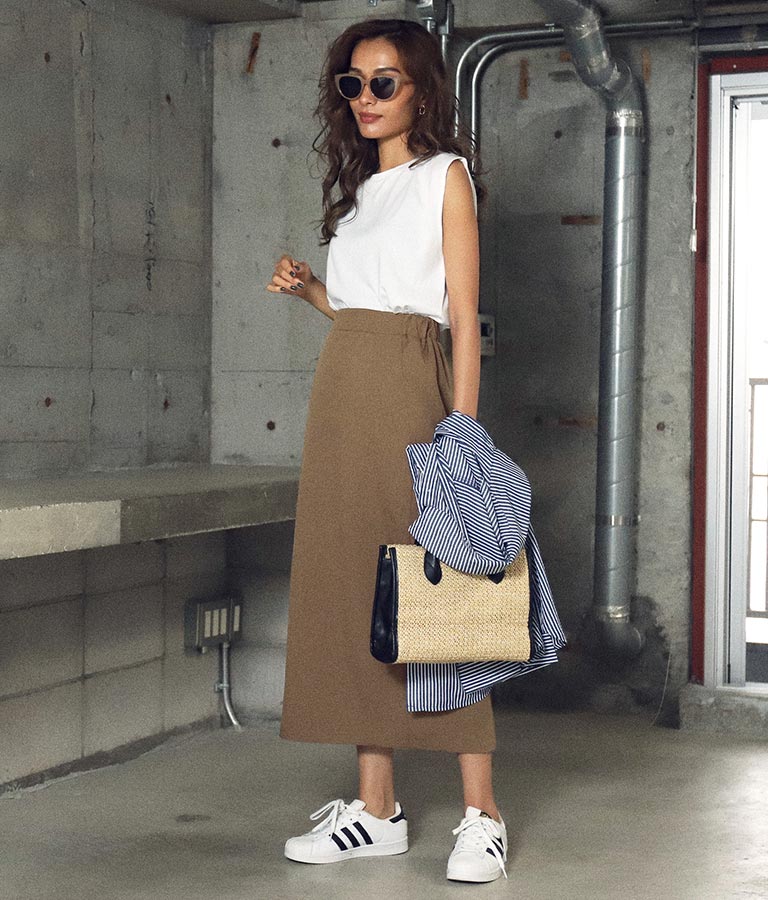サンダルからショートブーツまで合わせられるミディ丈で、秋口まで着用できます。