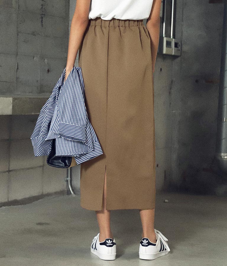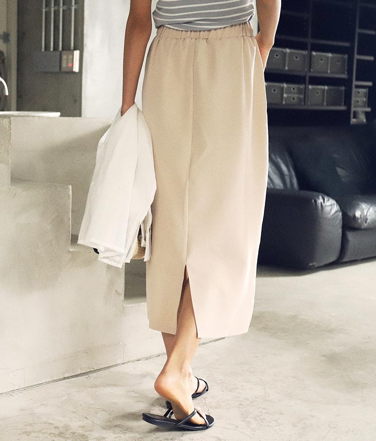 すっきりとした綺麗なシルエットにバックスリットを入れ、大人フェミニンな印象に。