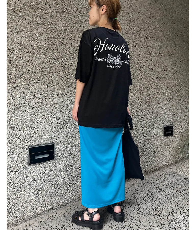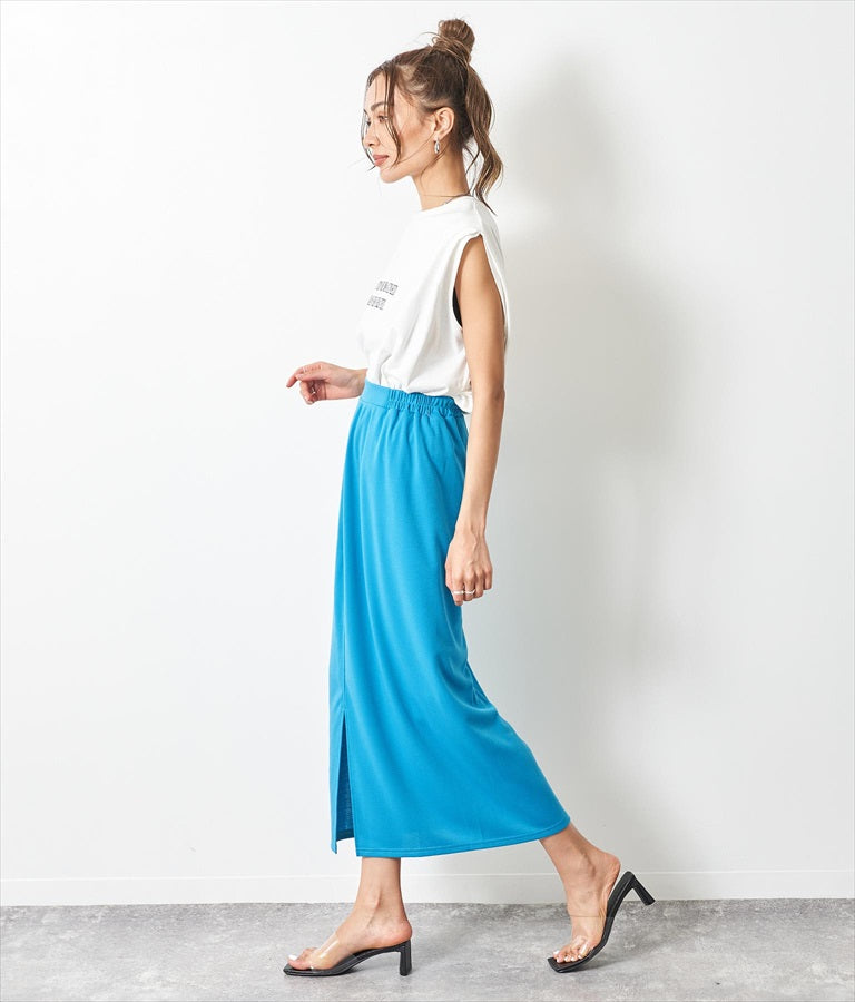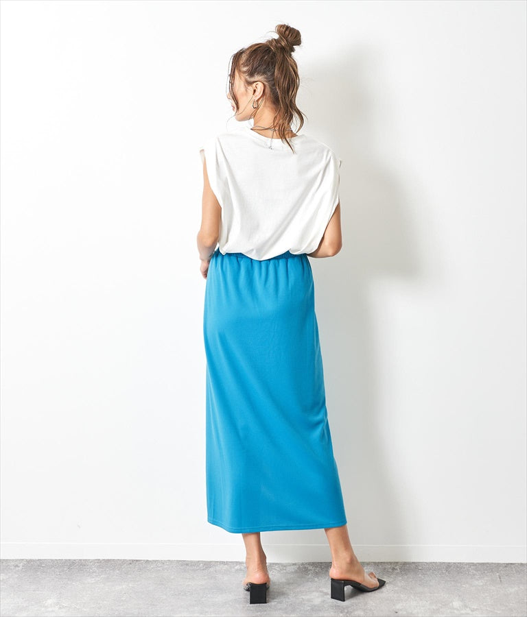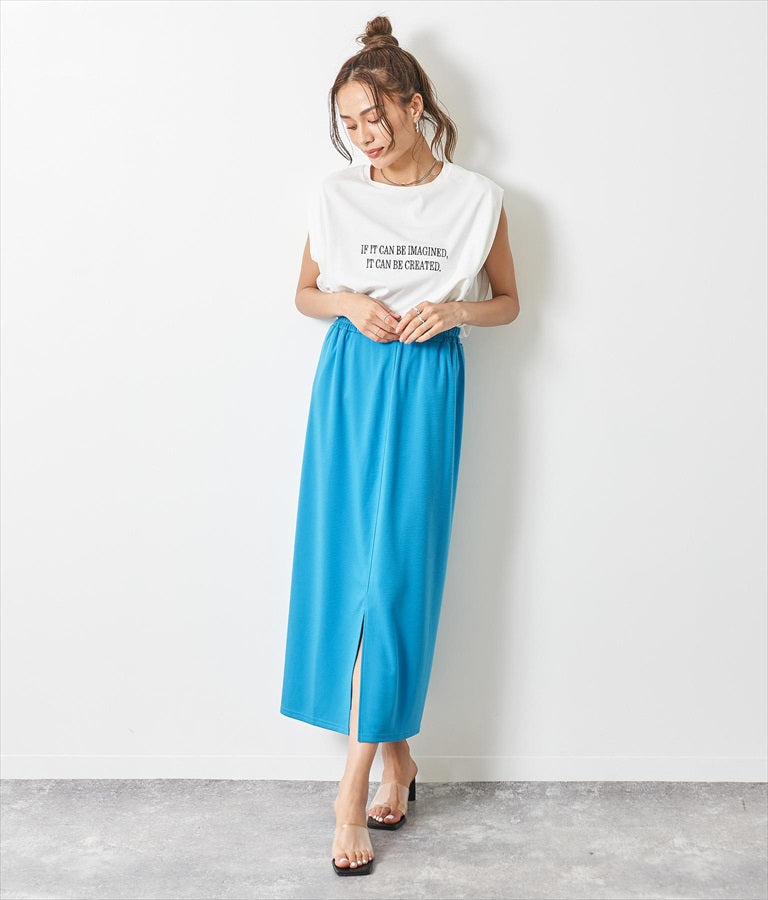 足首にかかるロング丈とスリットの抜け感がサンダルやスニーカー等にもピッタリで、1枚あるとコーディネートの幅が広がります。