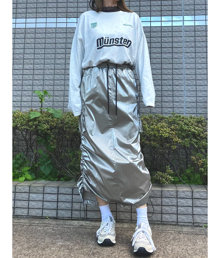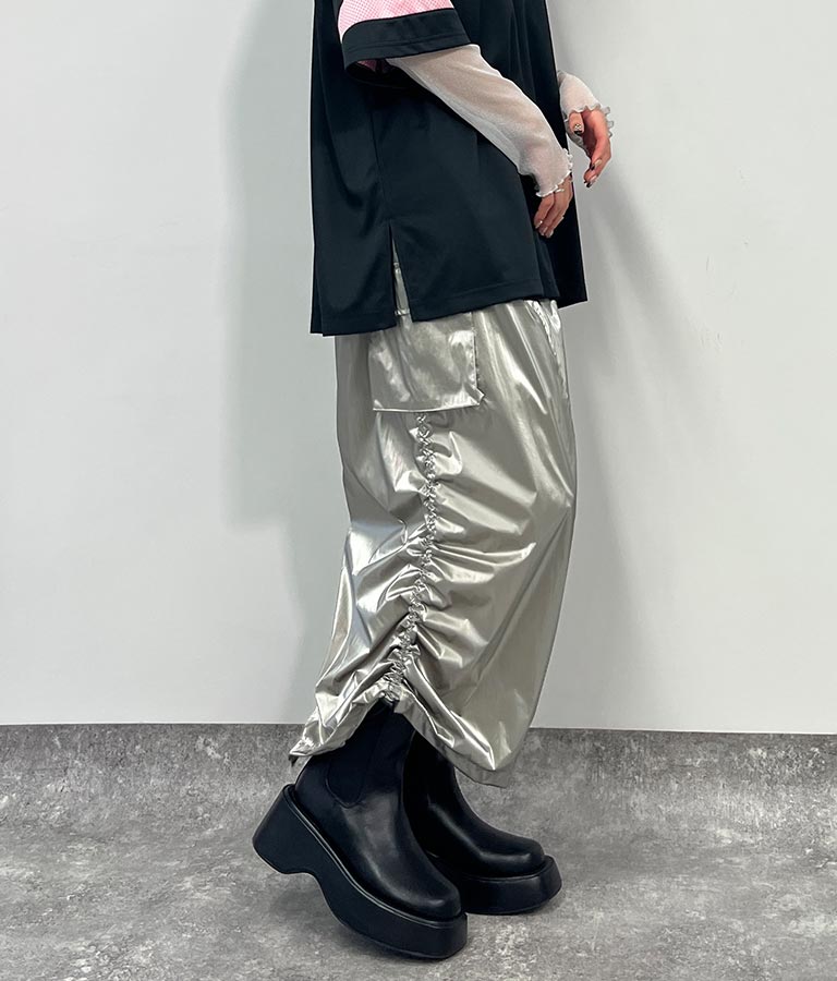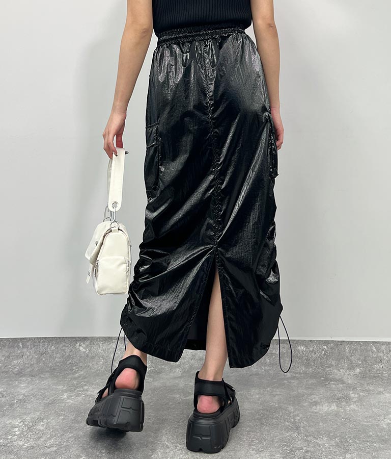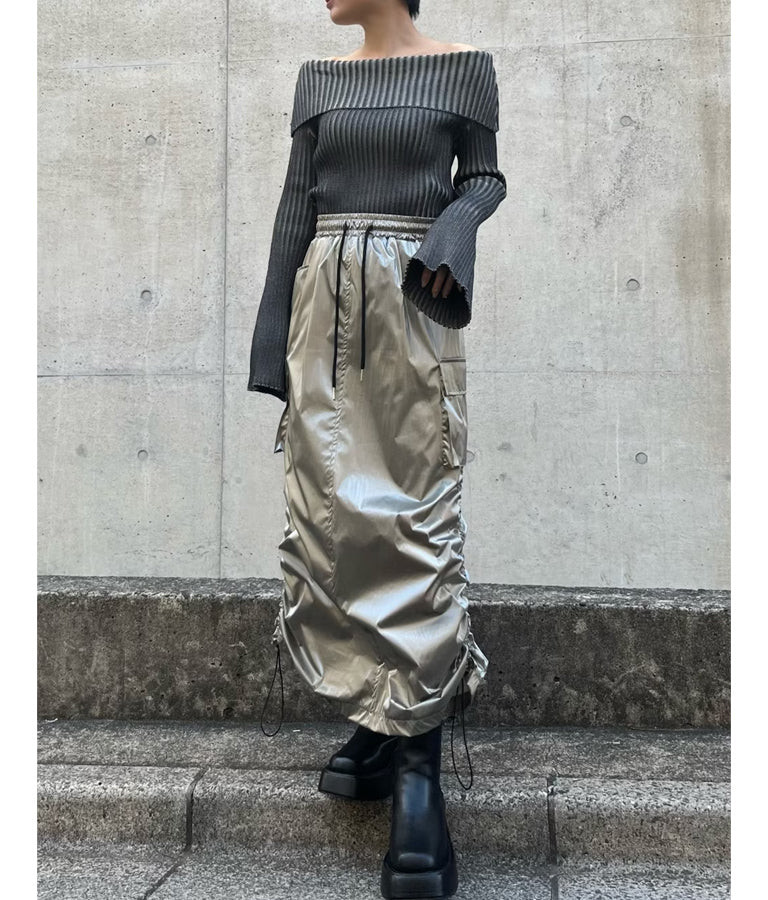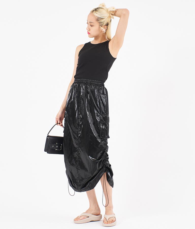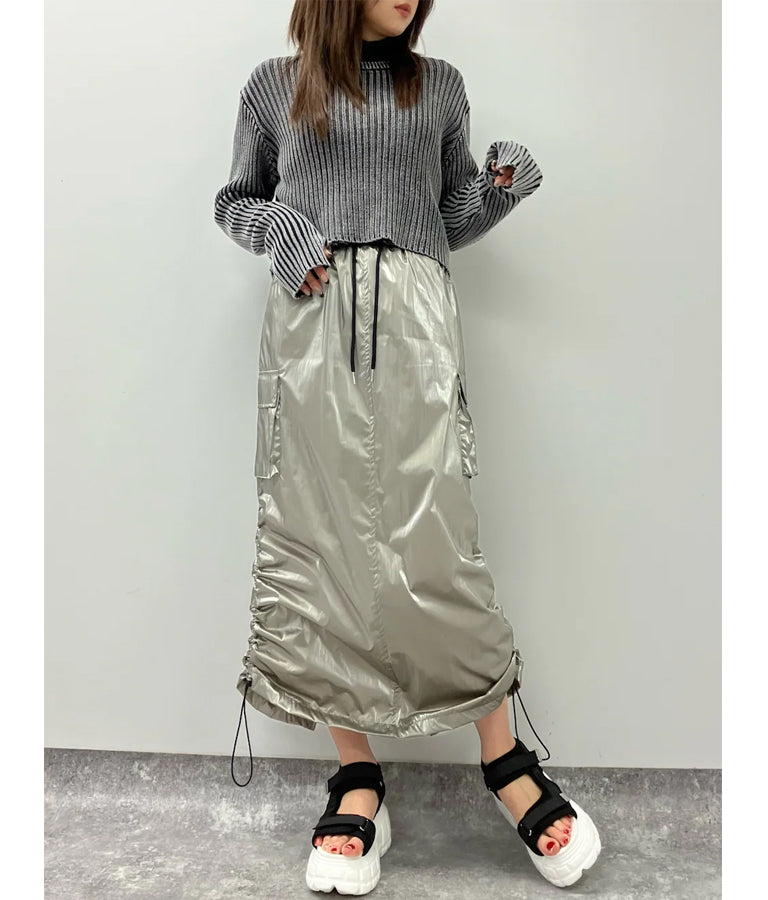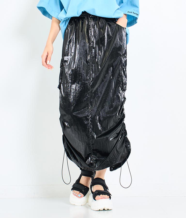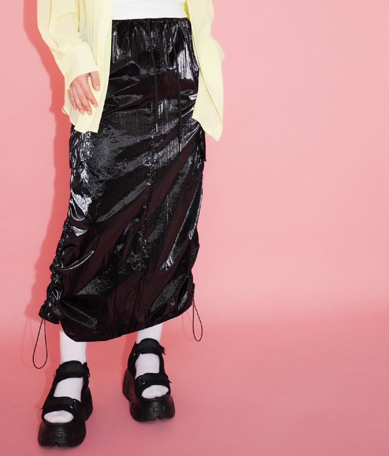 メタリック タフタ サイド シャーリング ロング スカート 151-5571
