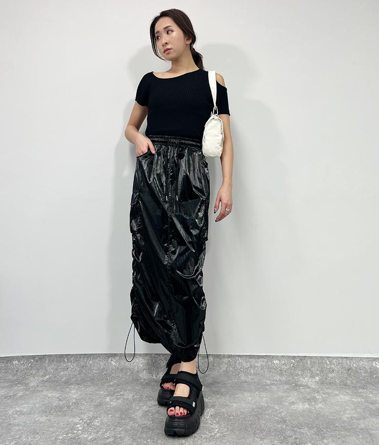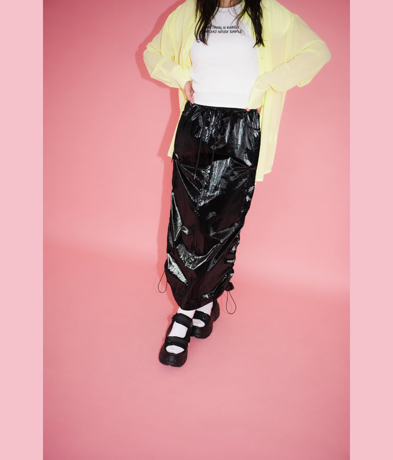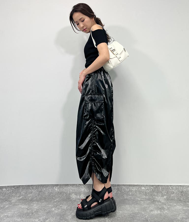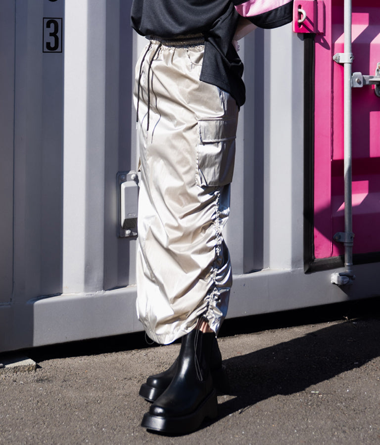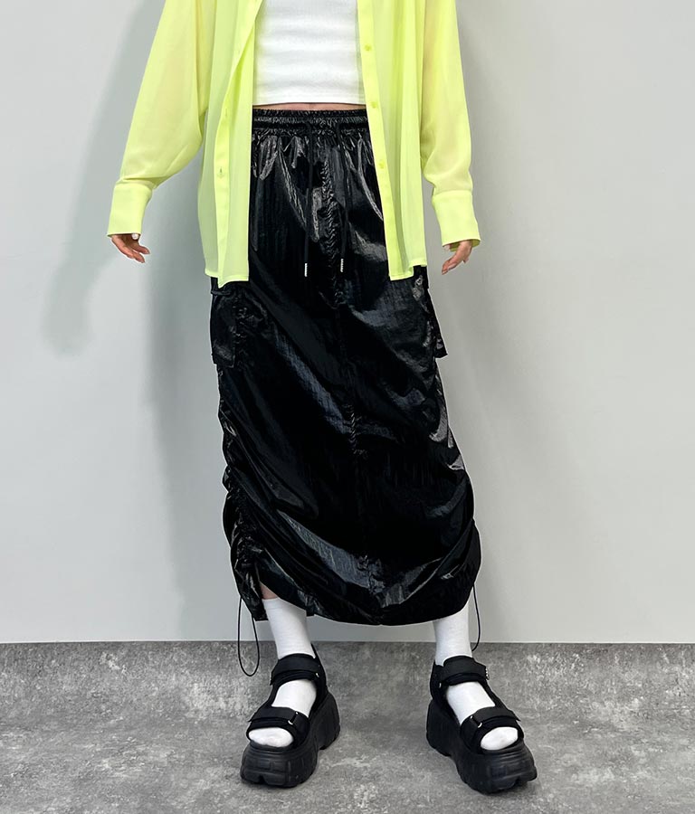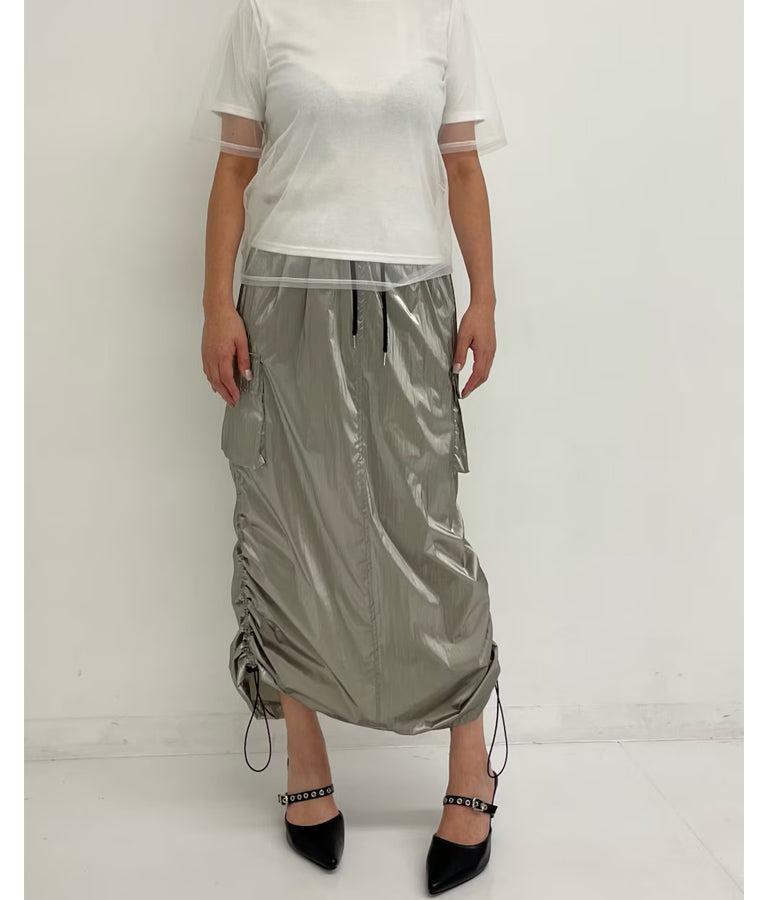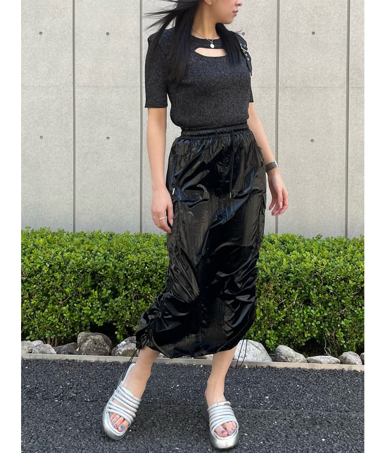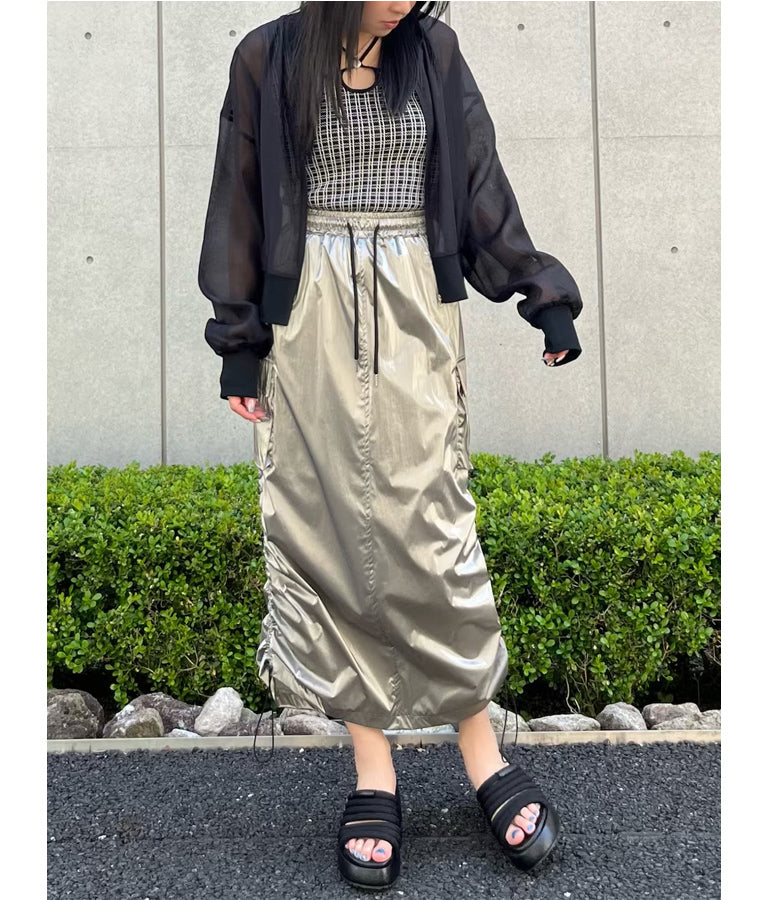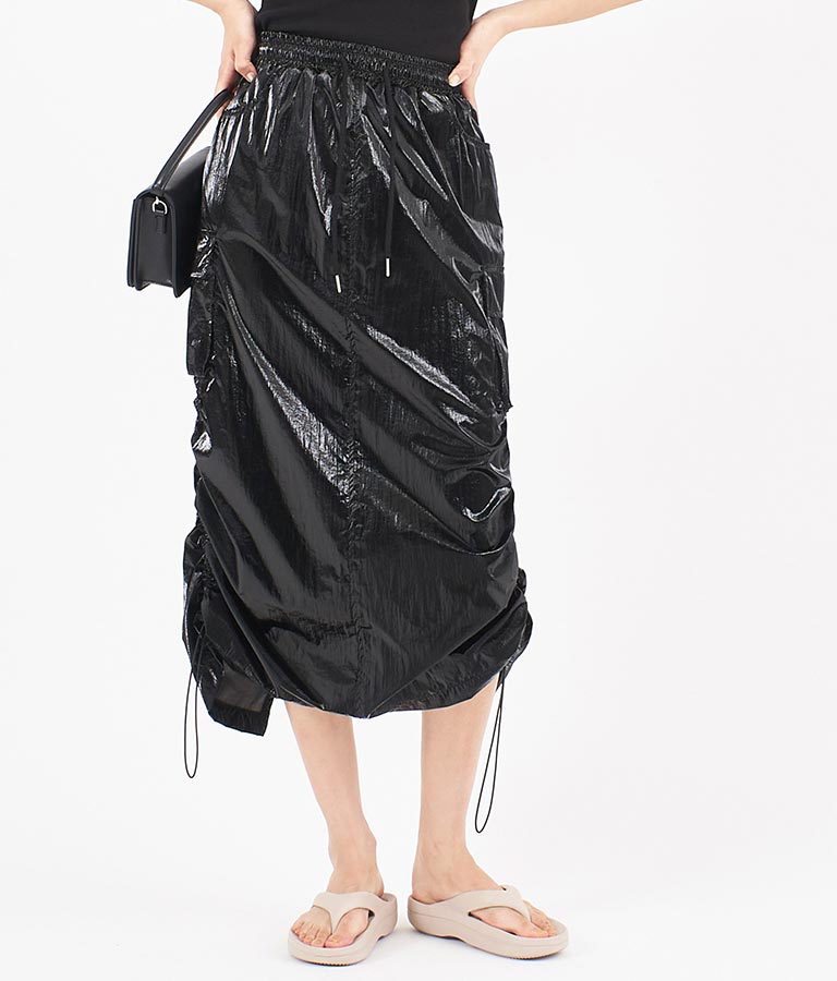 メタリック タフタ サイド シャーリング ロング スカート 151-5571