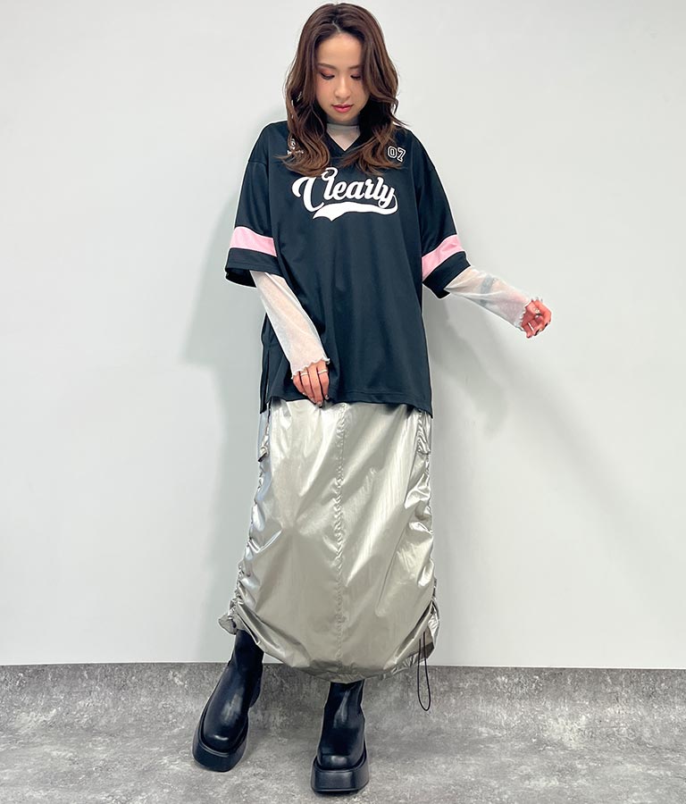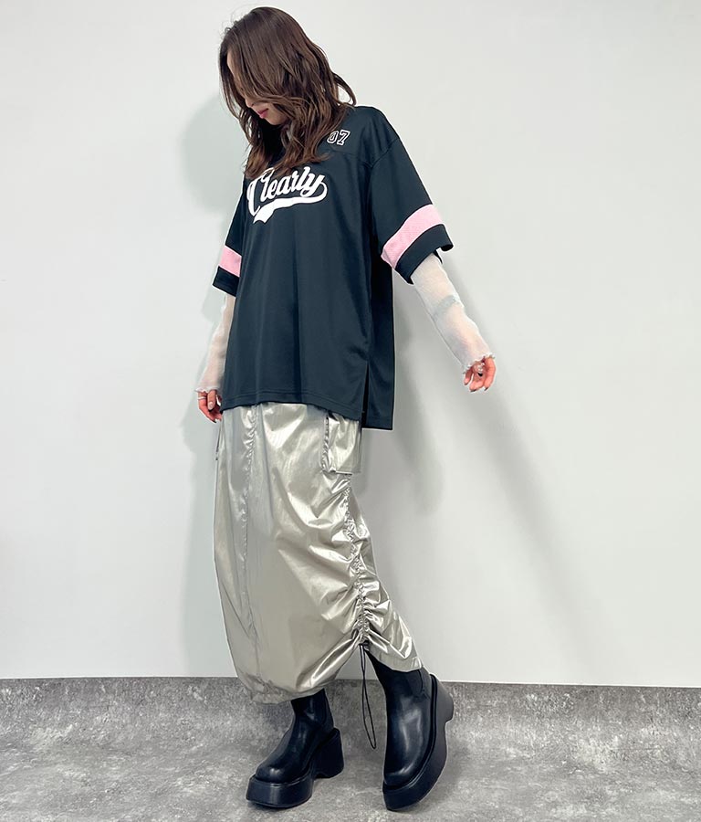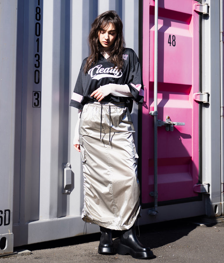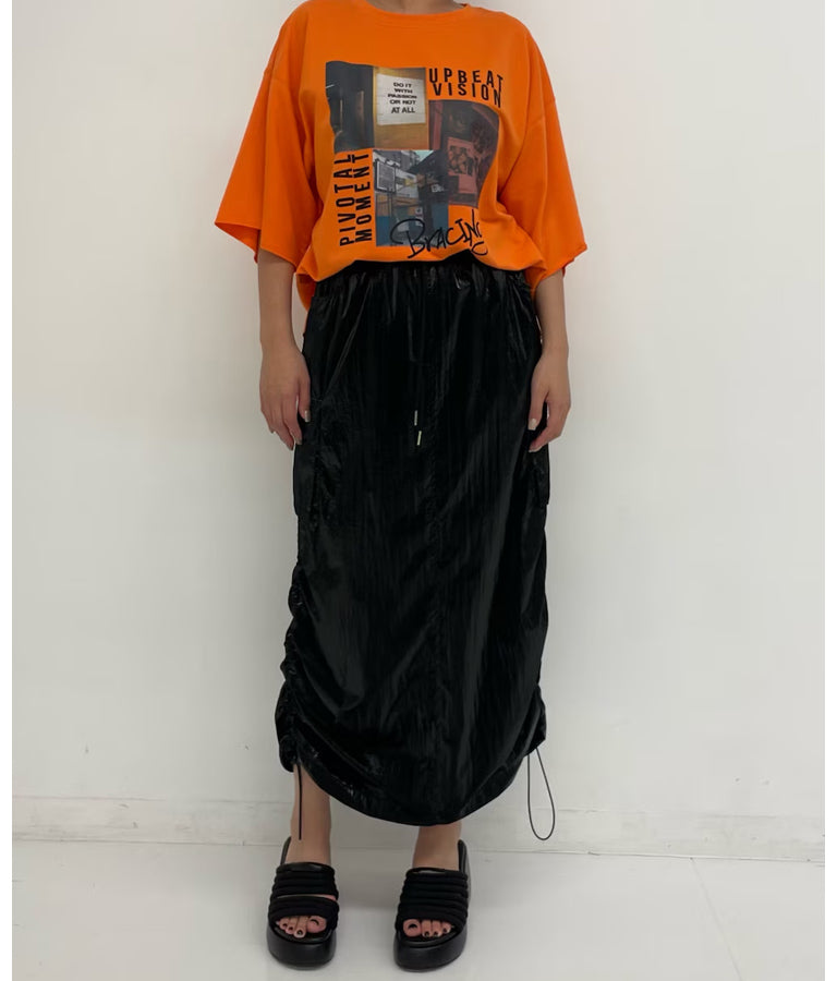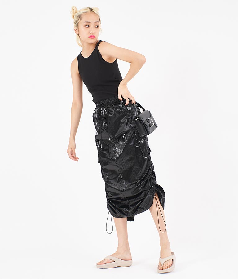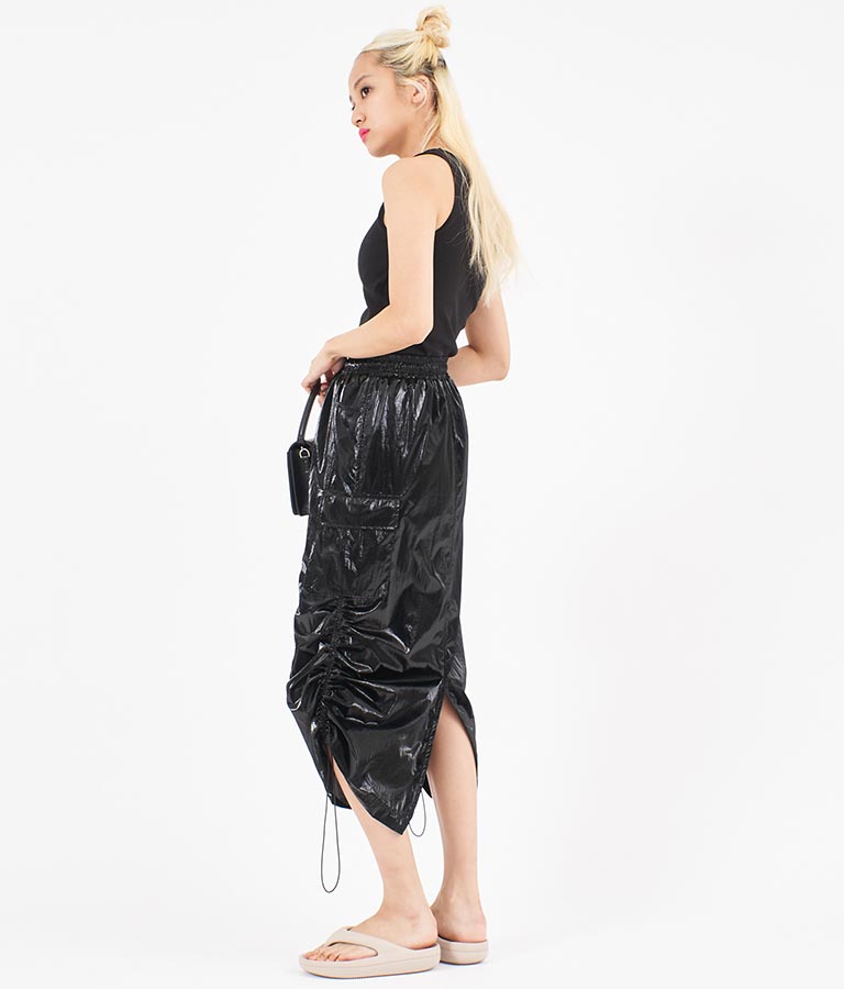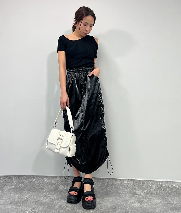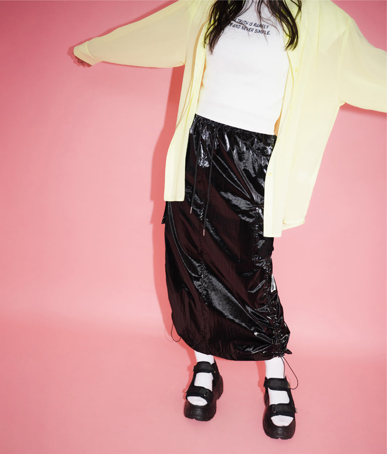 メタリック タフタ サイド シャーリング ロング スカート 151-5571