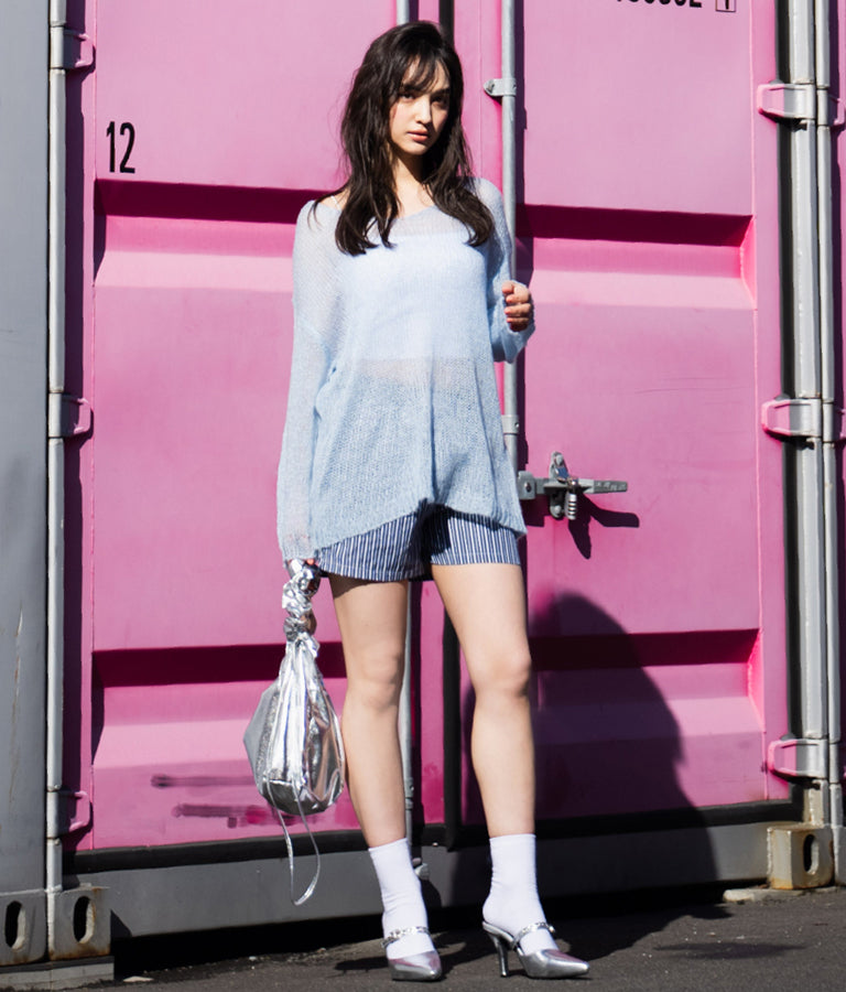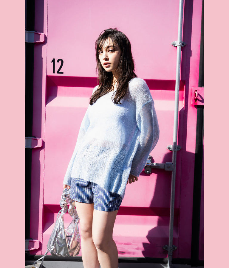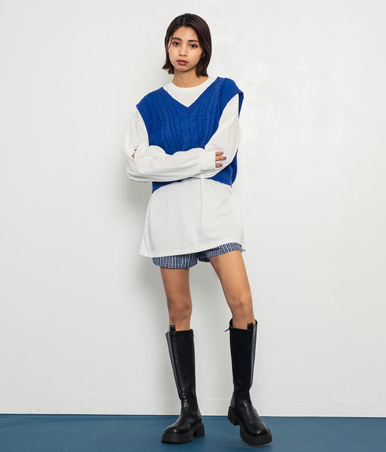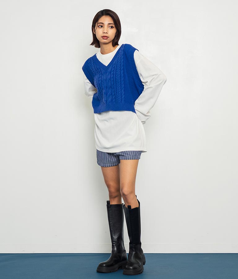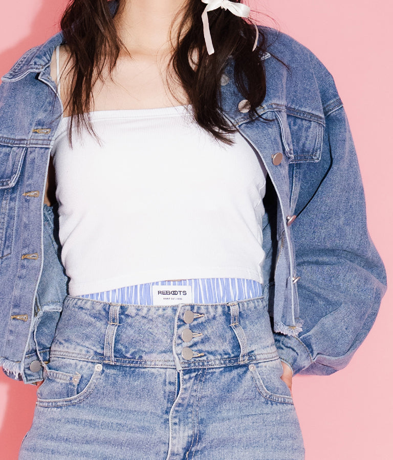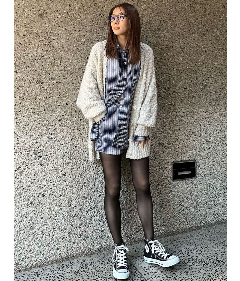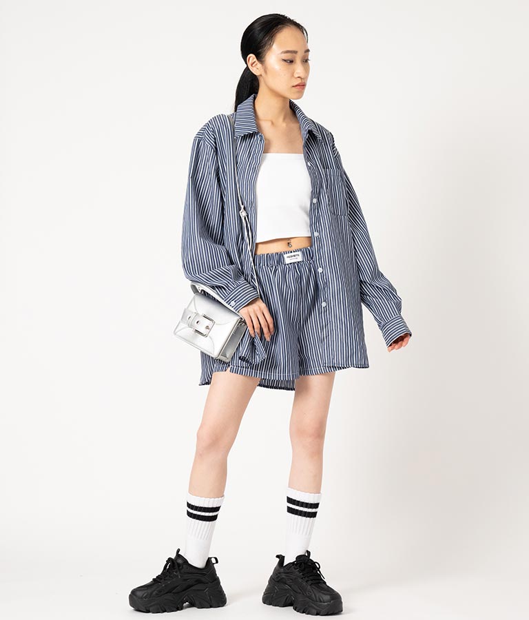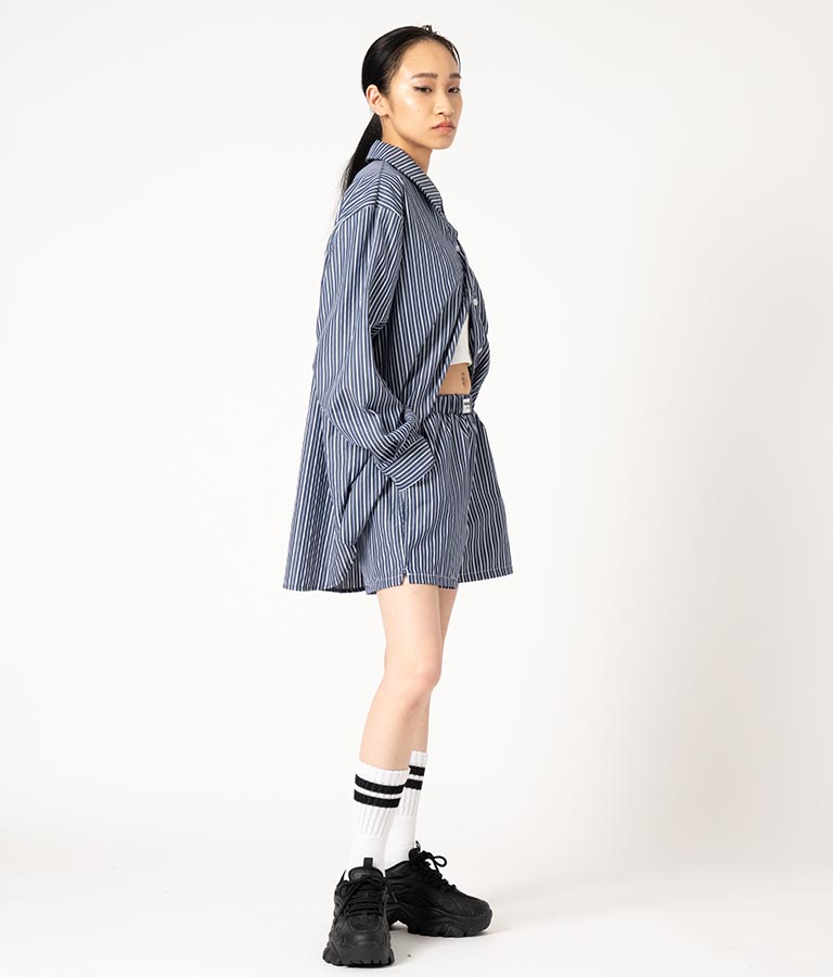 同素材を使用した【オーバーサイズシャツ ストライプ 無地】とセットで合わせるのもおススメです。