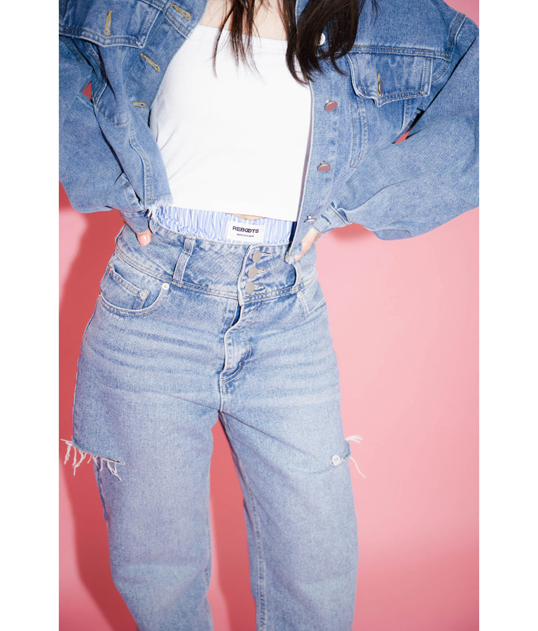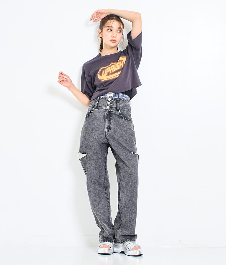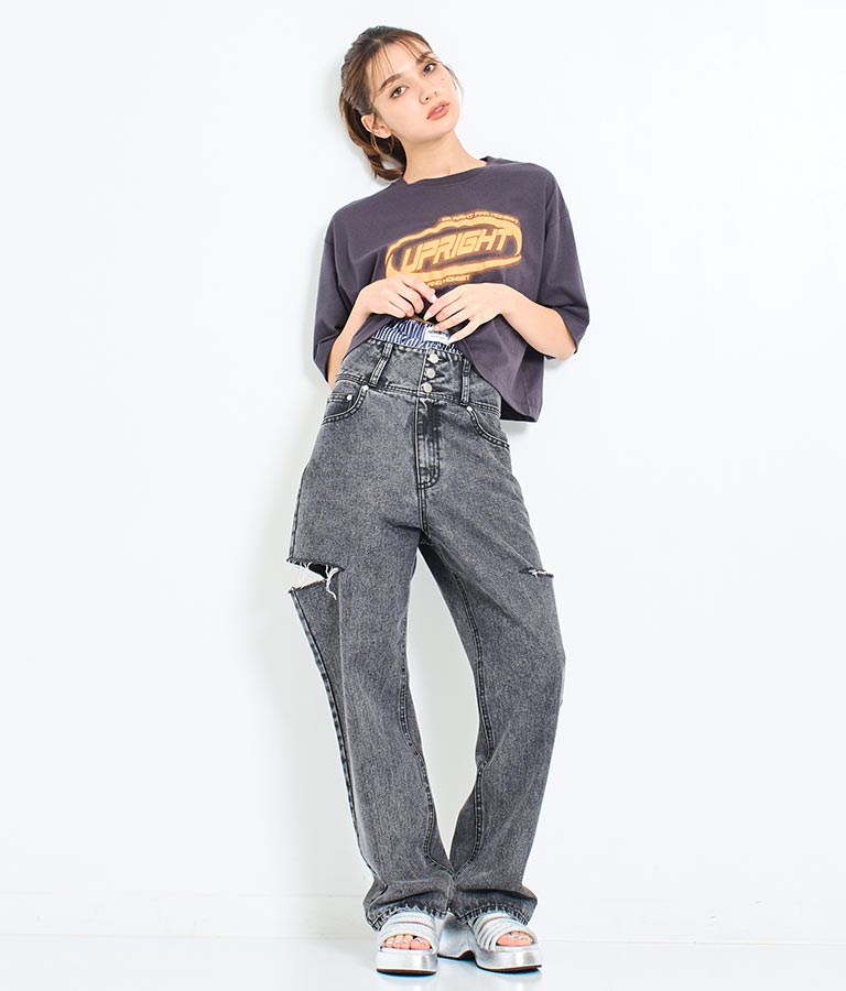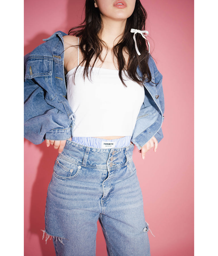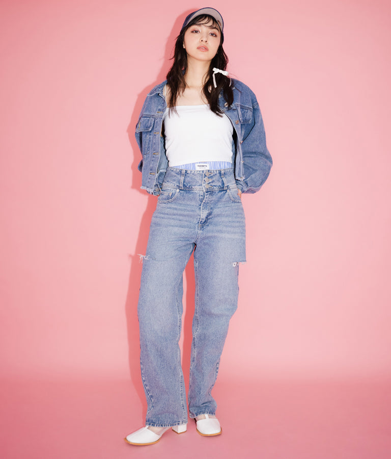 ウエストのタグがアクセントに。
