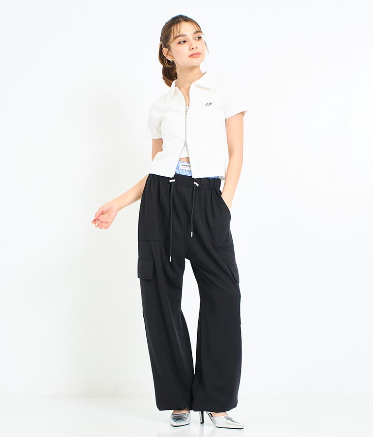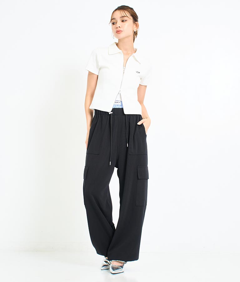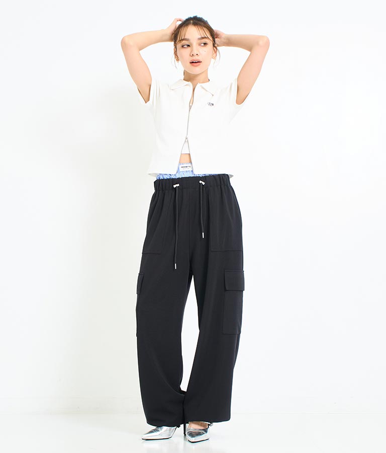 ゆとりのあるサイズ感とさらりとした素材、ゴム仕様のウエストでストレスフリーに履ける1枚。