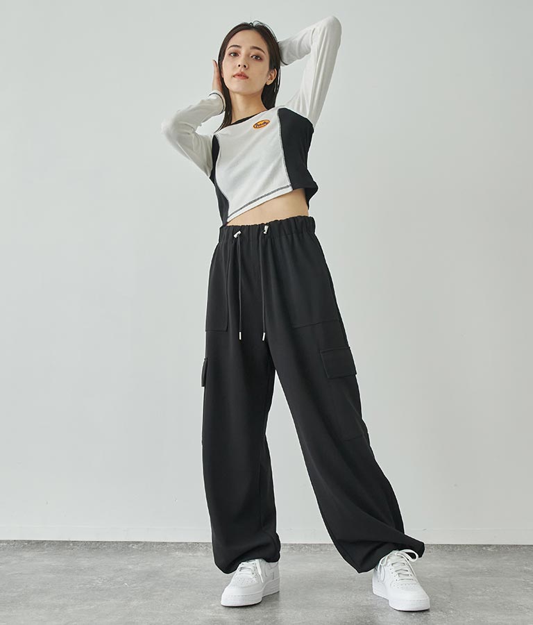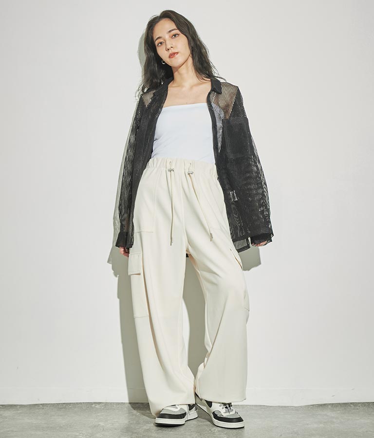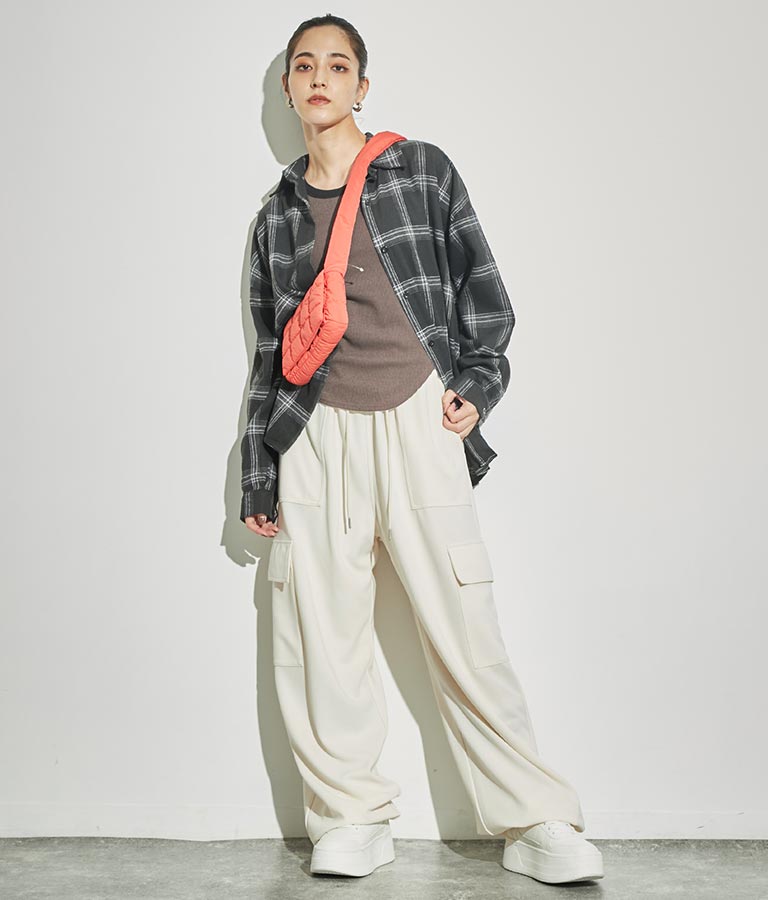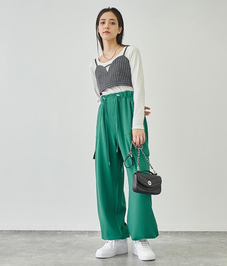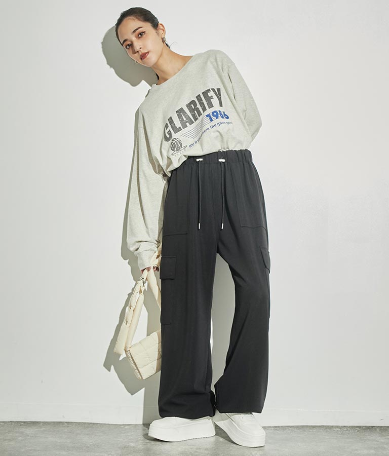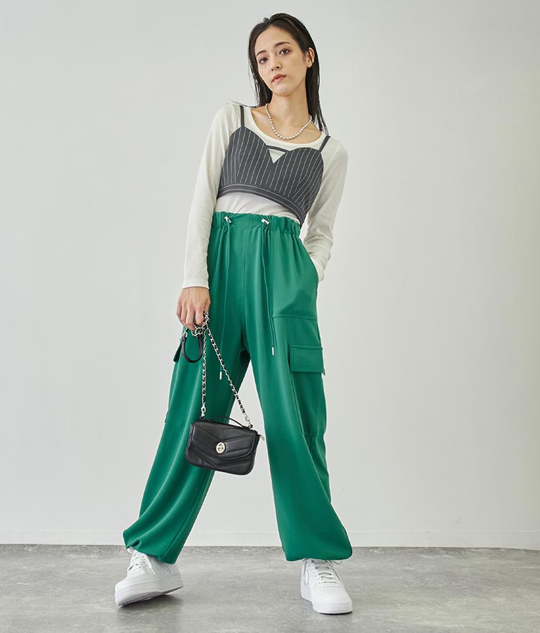 程良いゆったりとした作りで動き易さはもちろん、気になる腰やヒップ周りもカバーしてくれます。