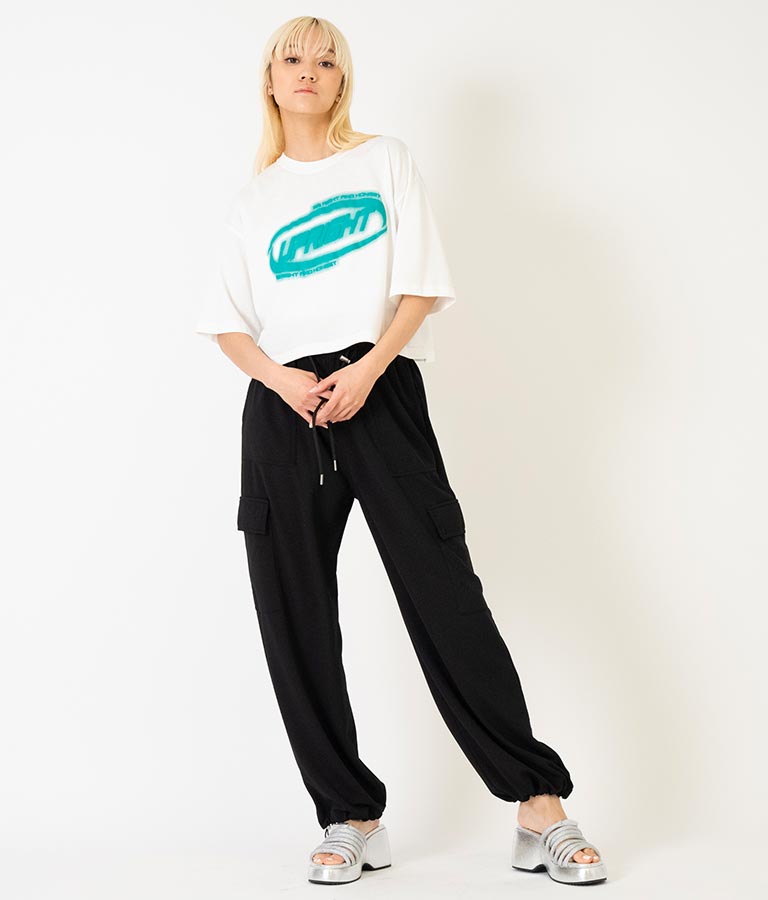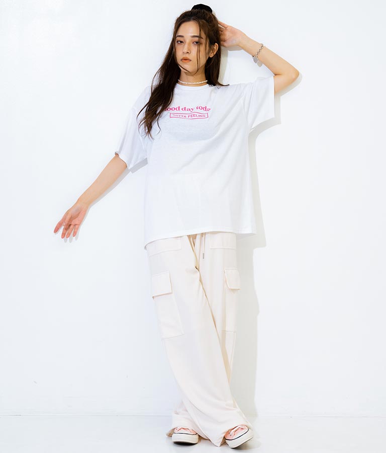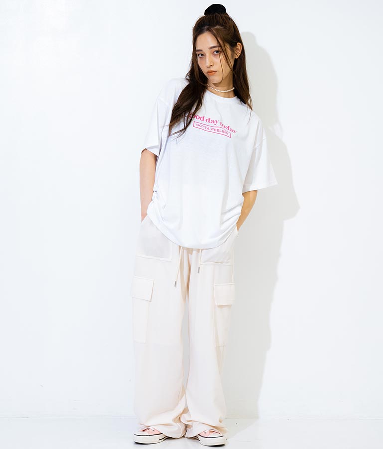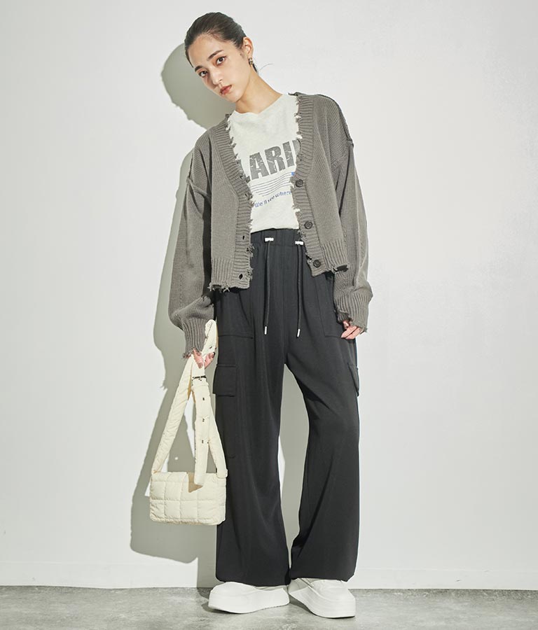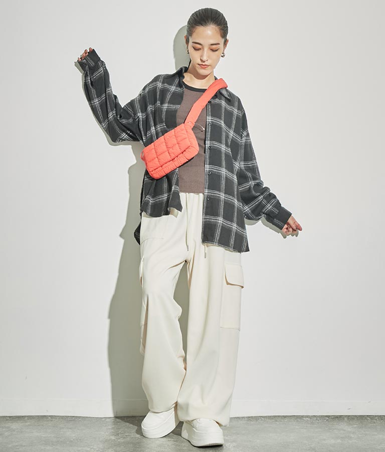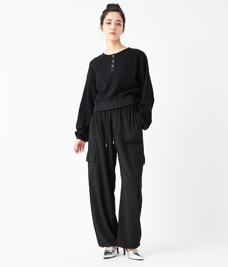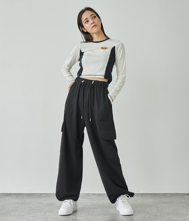 程良いゆったりとした作りで動き易さはもちろん、気になる腰やヒップ周りもカバーしてくれます。