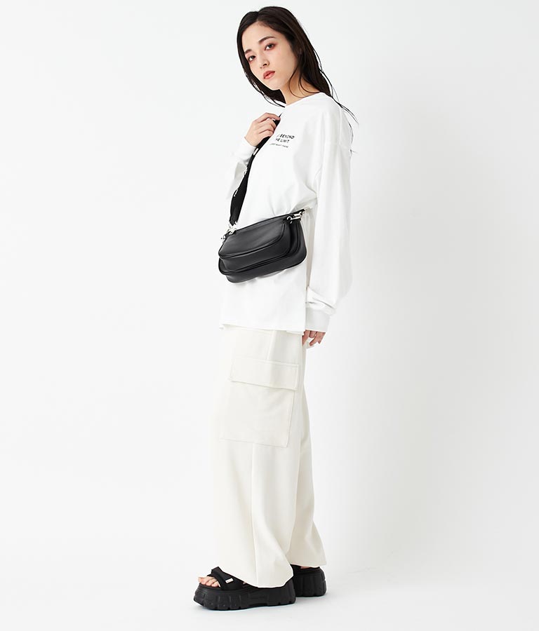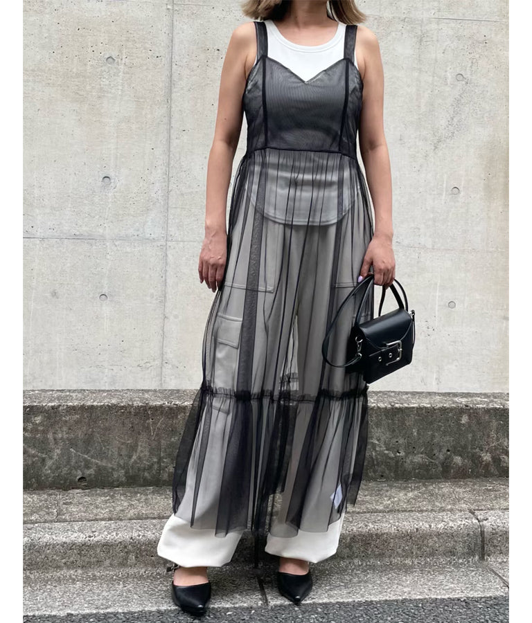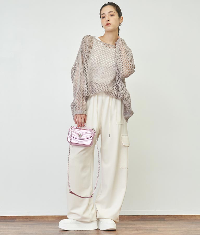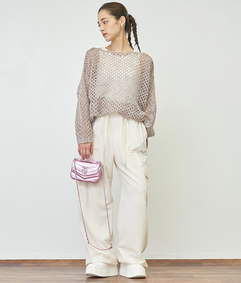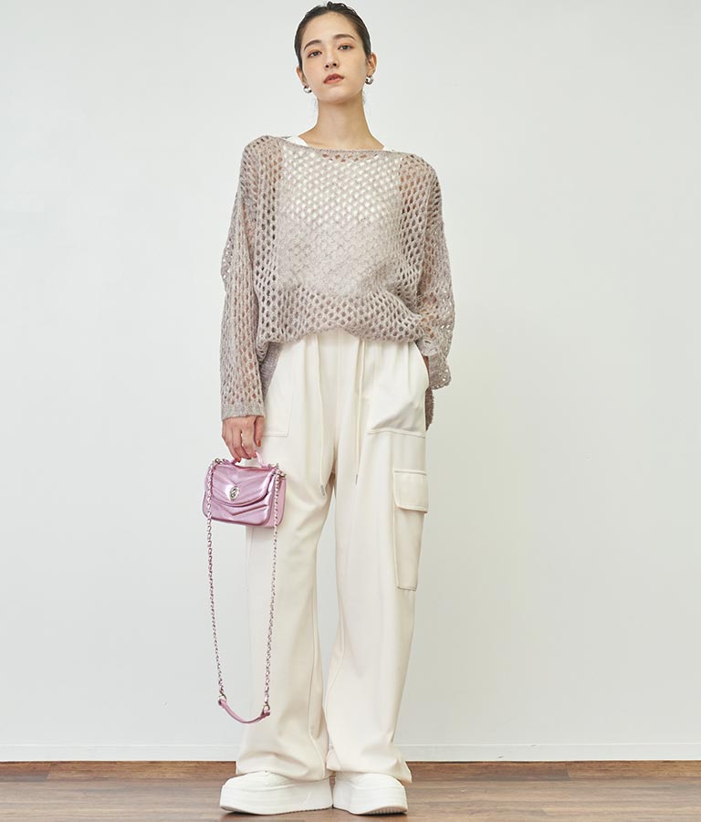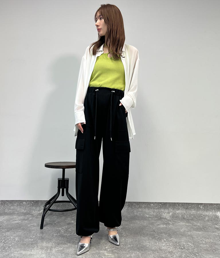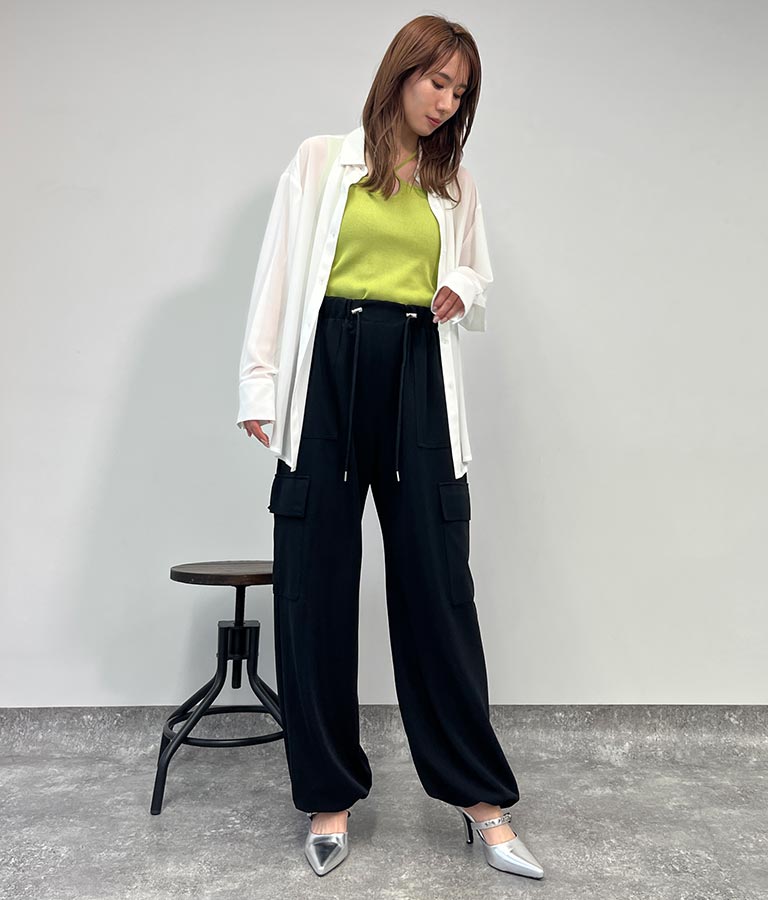 さらりとした素材感と微光沢、ハリ感がカジュアルになりすぎず綺麗なスタイリングに◎