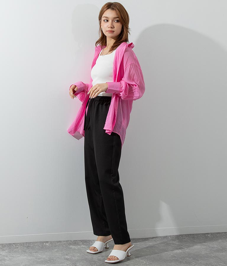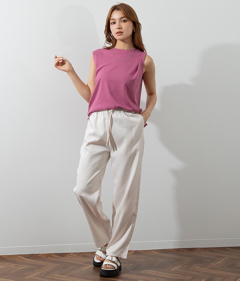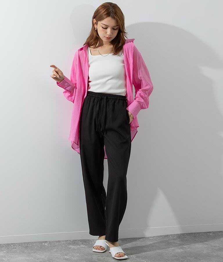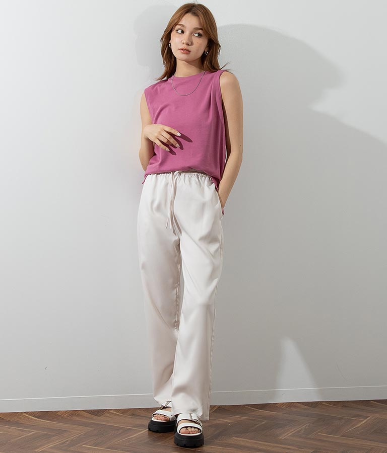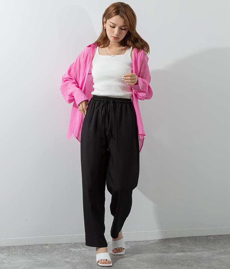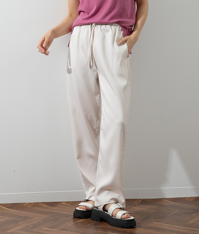 ルーズな着心地が魅力のウエストゴムパンツ。