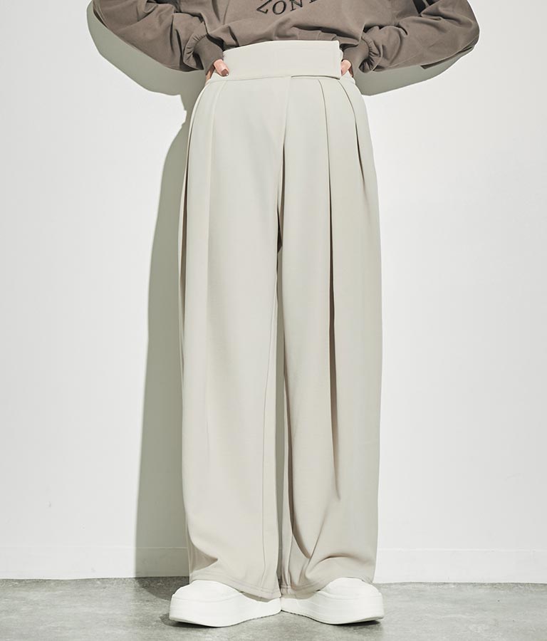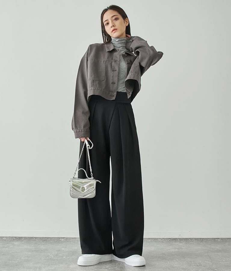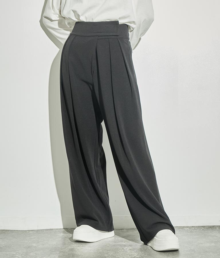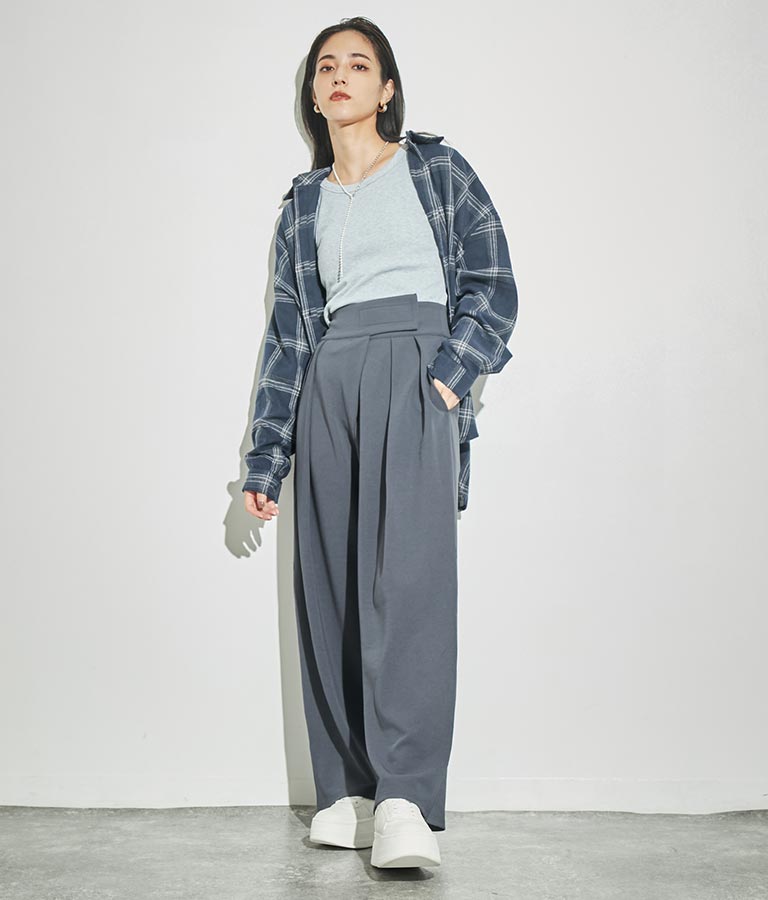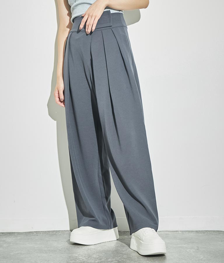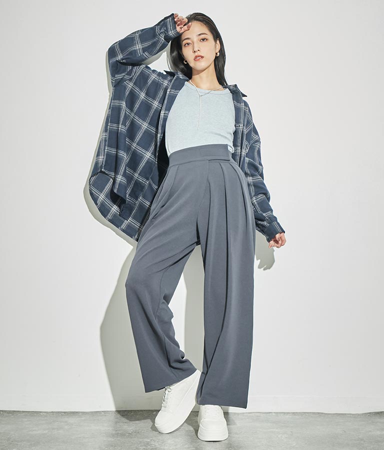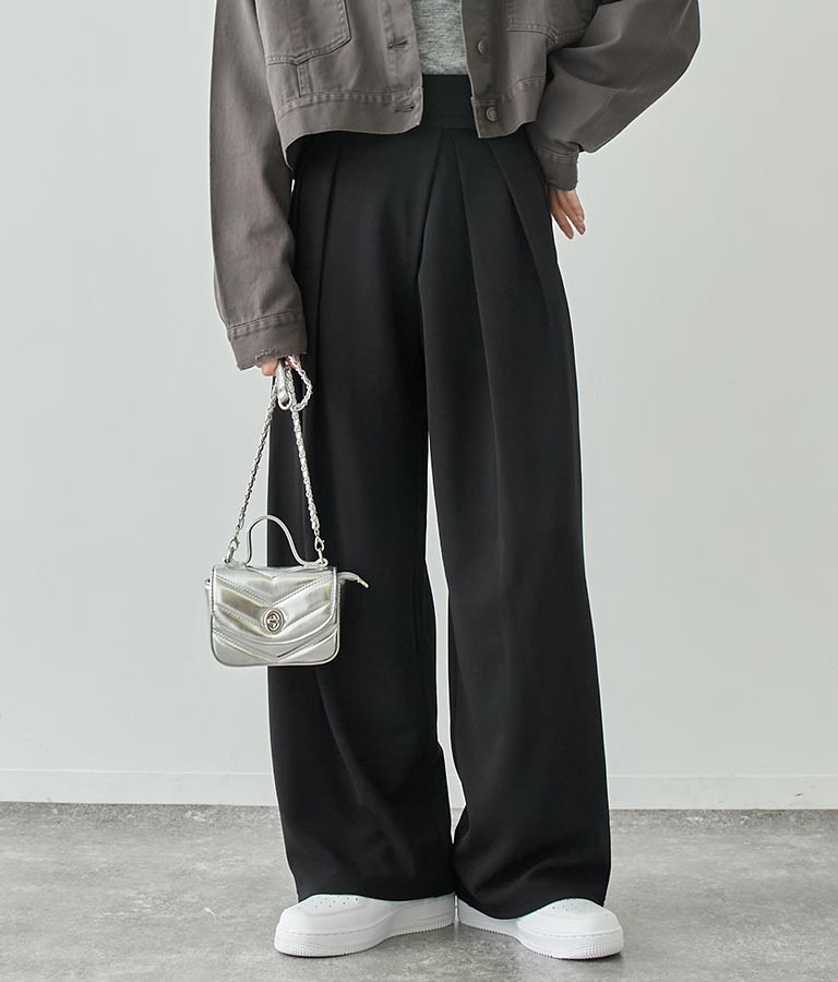 シンプルなデザインで1着は持っておきたいタックワイドパンツ。