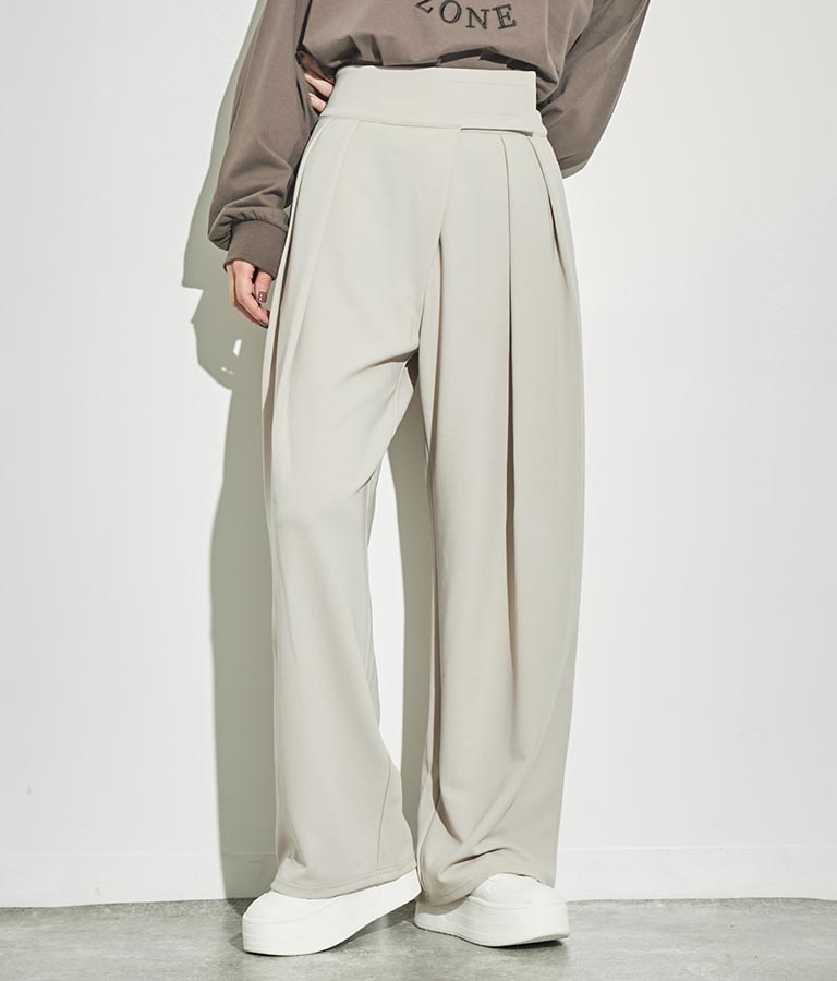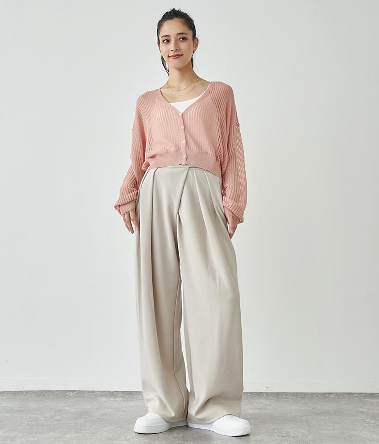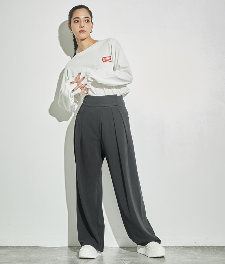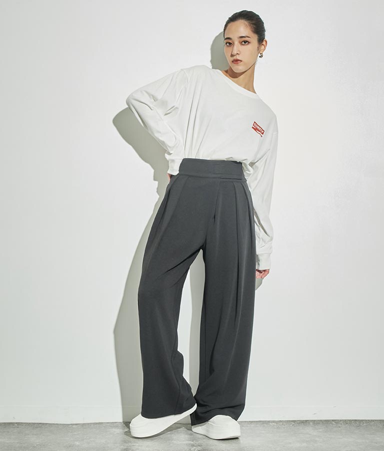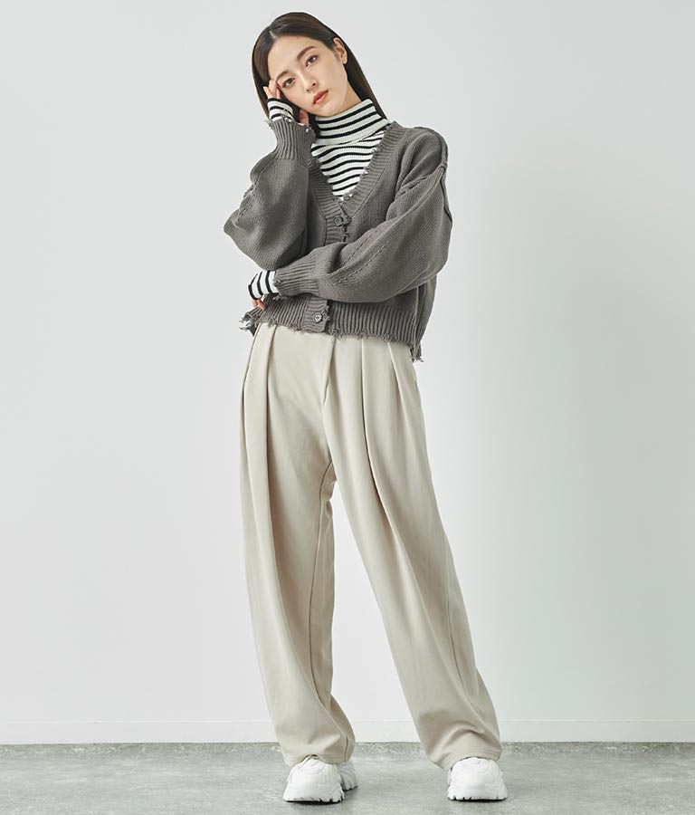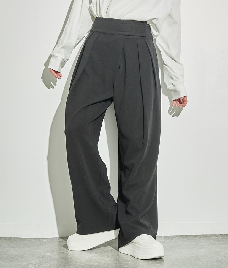 シンプルなデザインで1着は持っておきたいタックワイドパンツ。