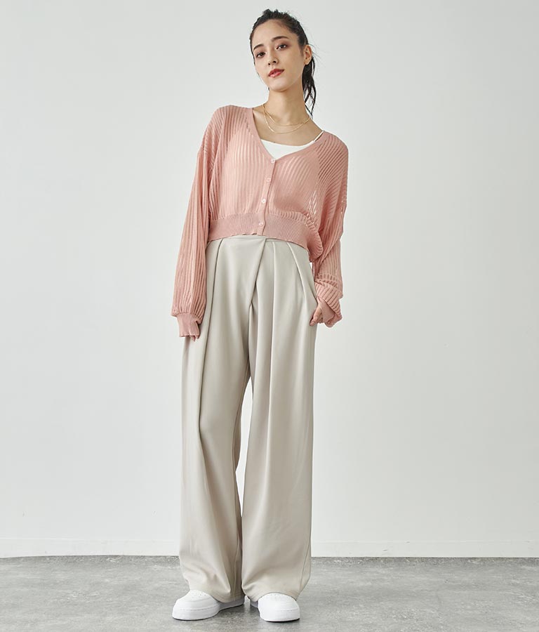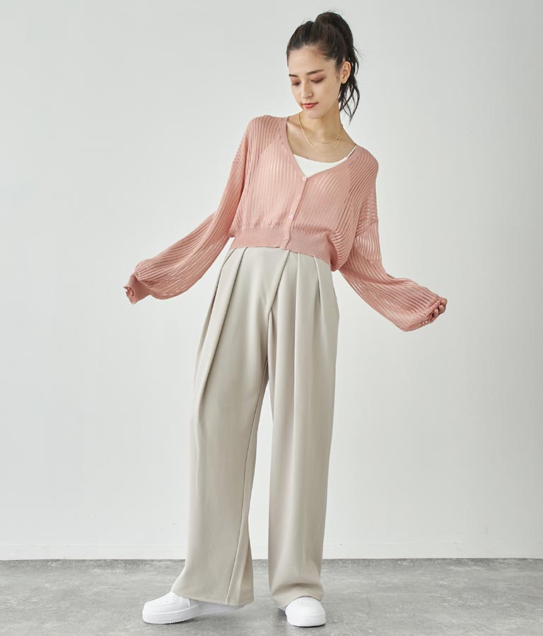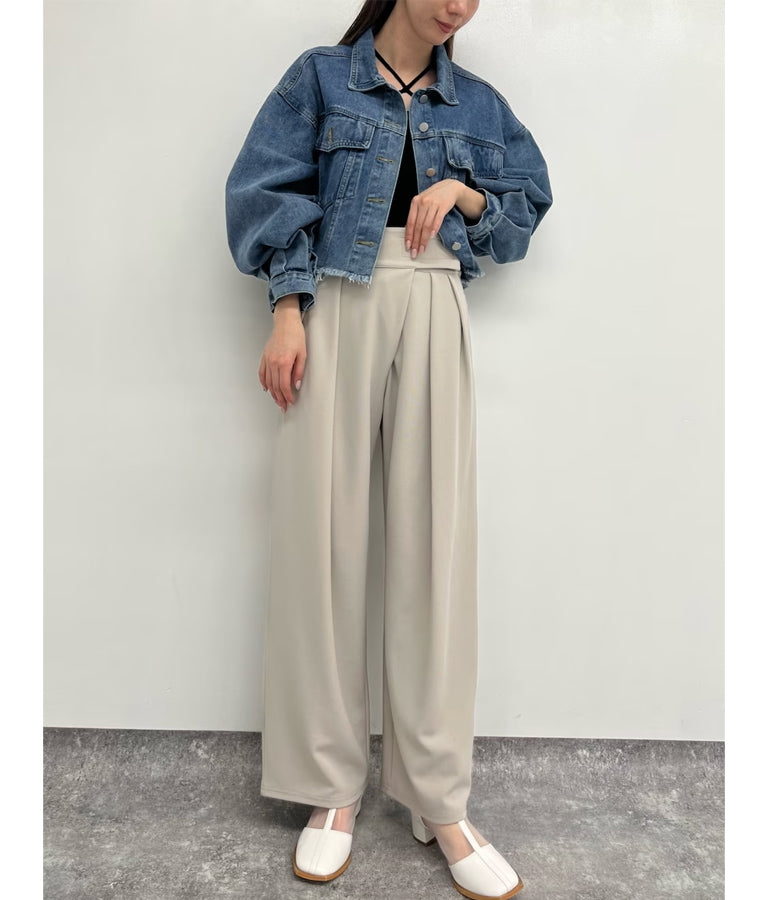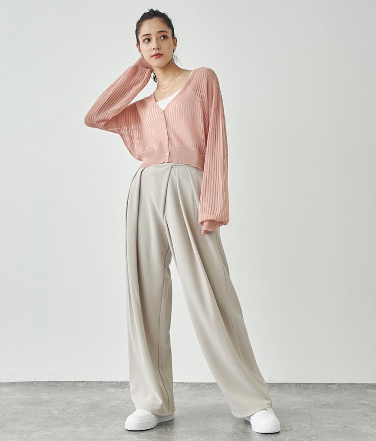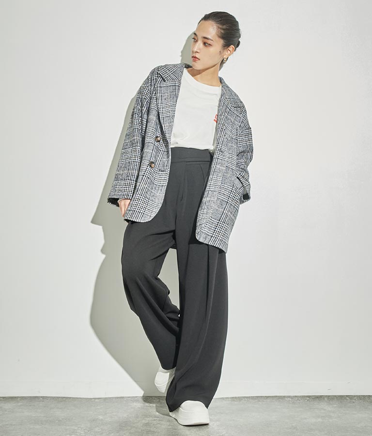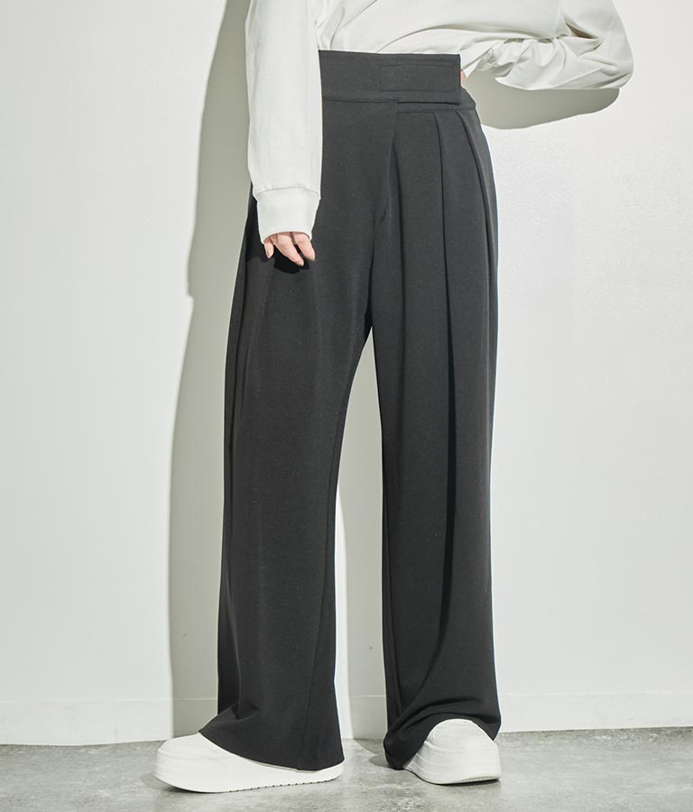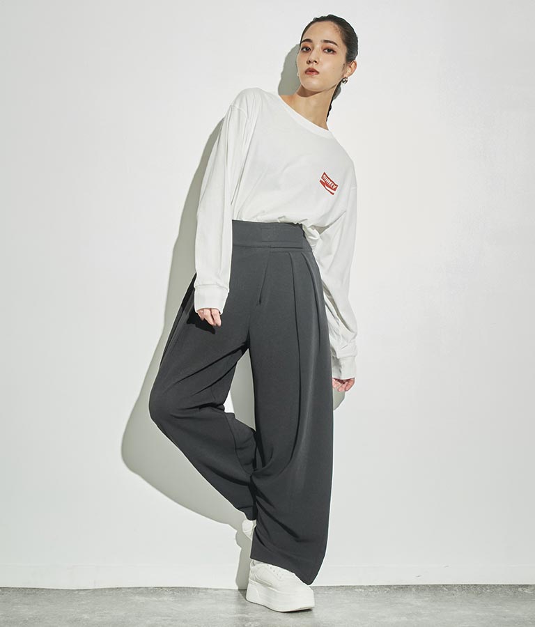 シンプルなデザインで1着は持っておきたいタックワイドパンツ。