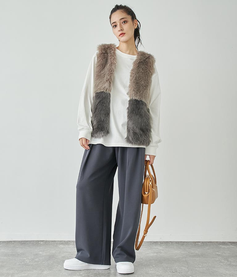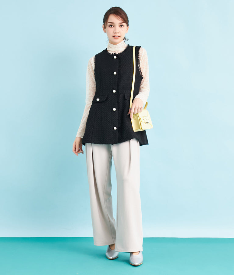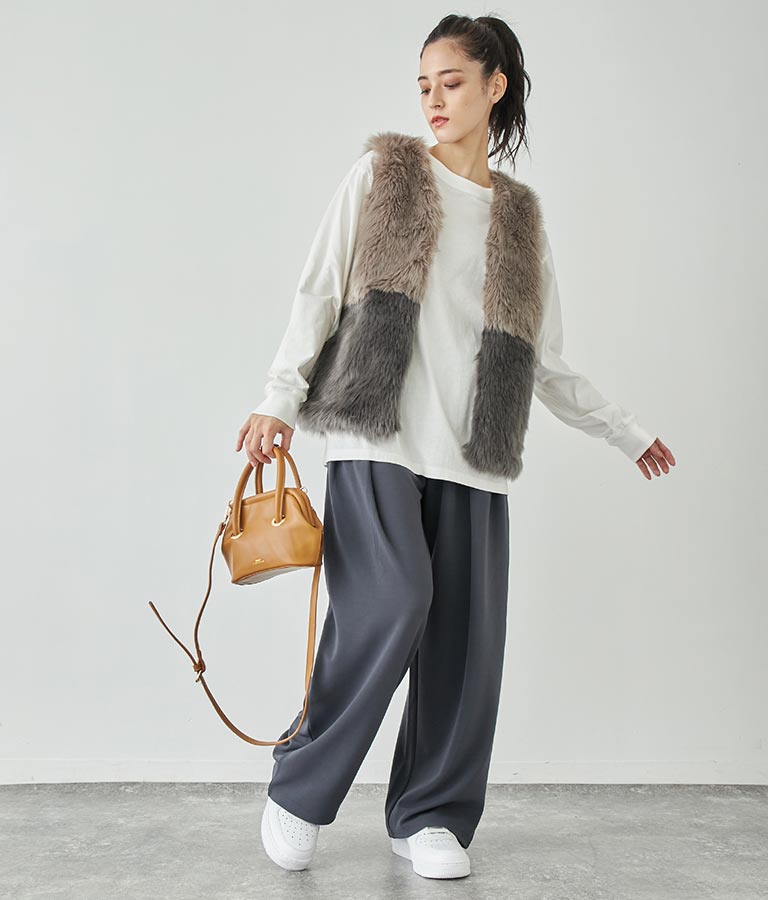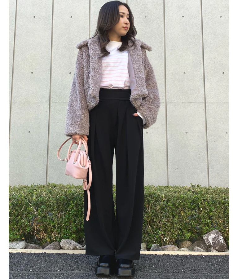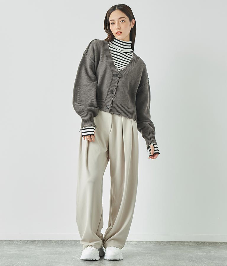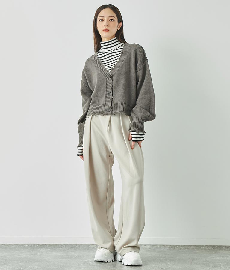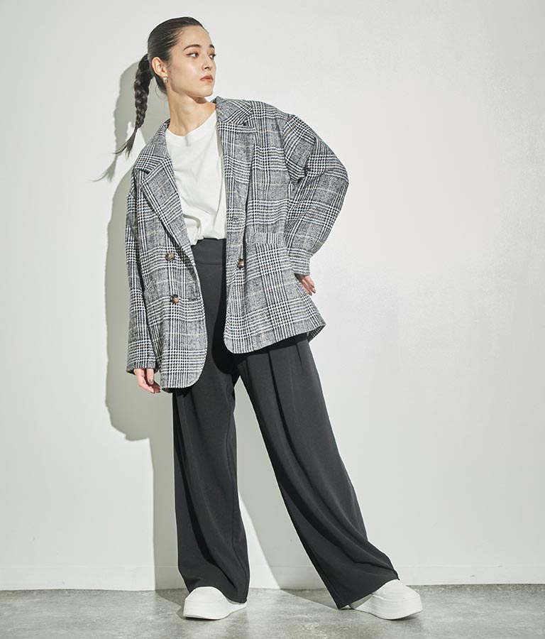 シンプルなデザインで1着は持っておきたいタックワイドパンツ。