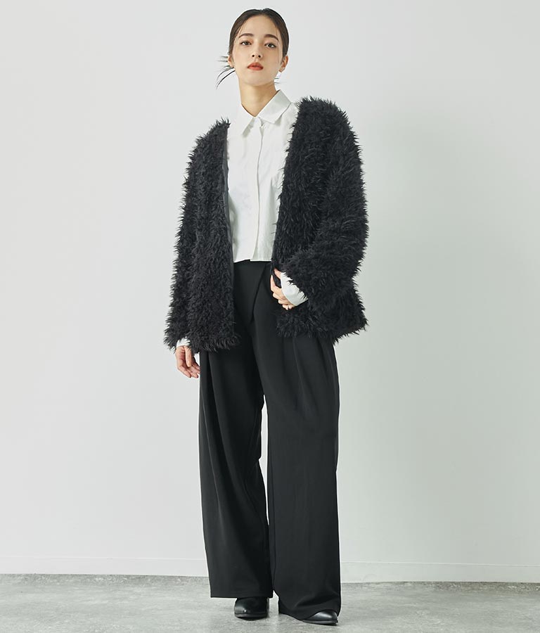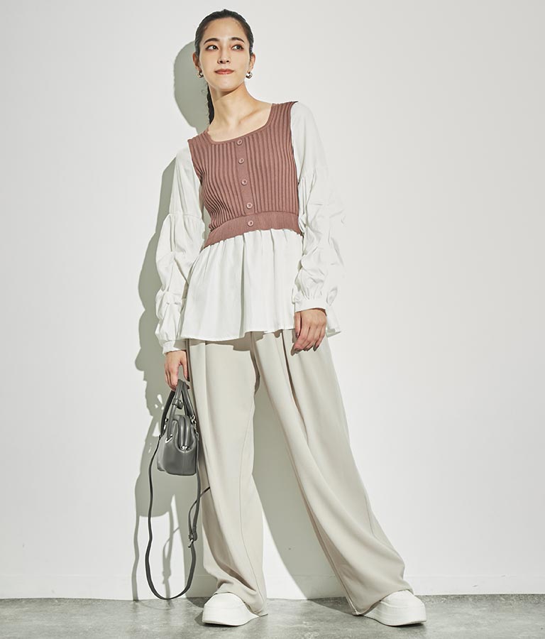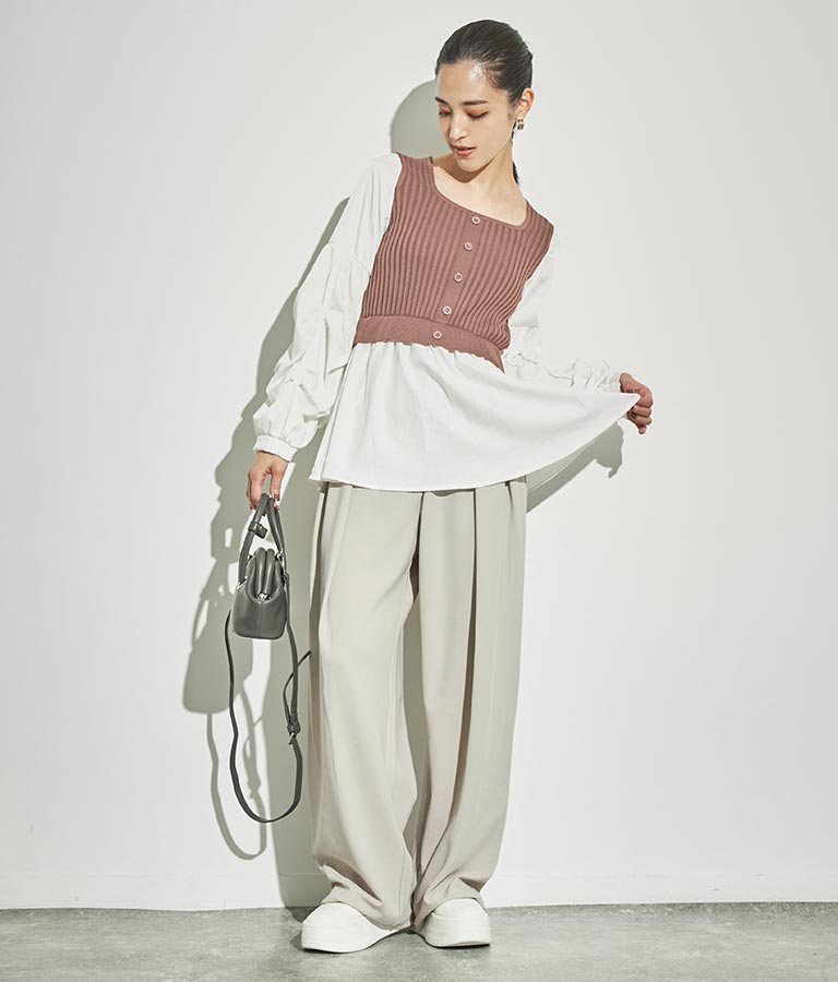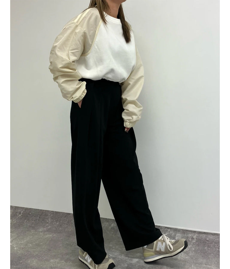 大きめにタックが入ることによってメリハリのあるシルエットが生まれます。