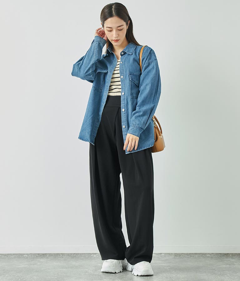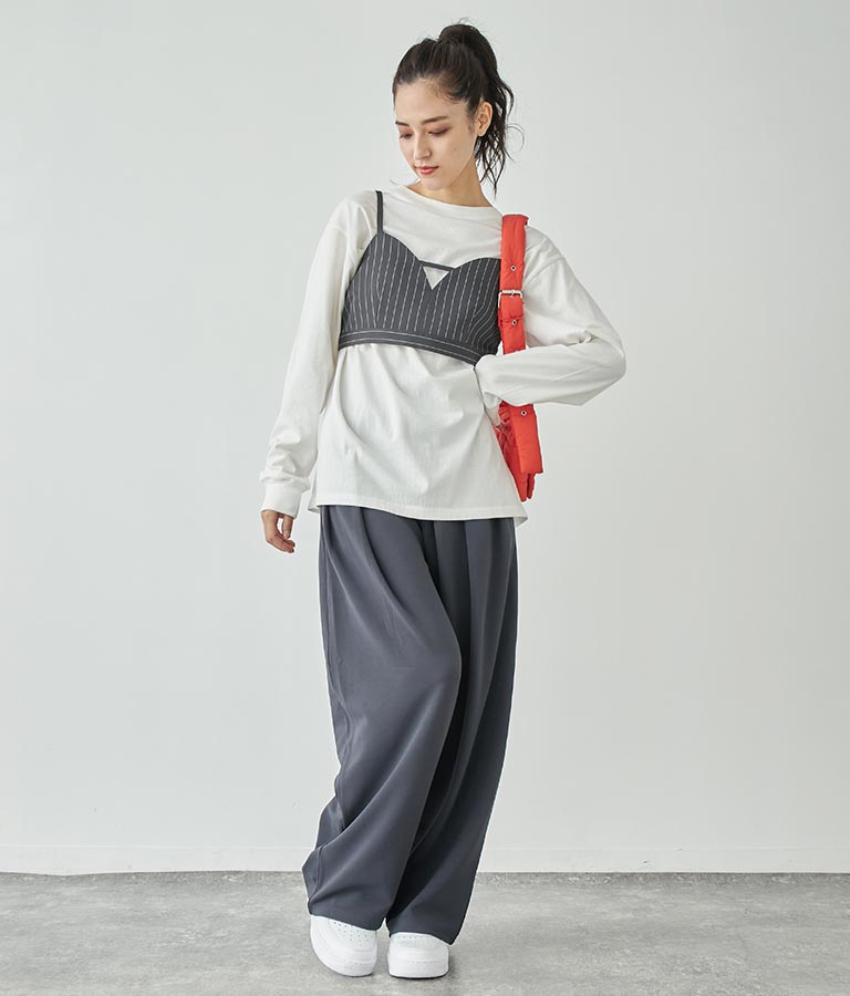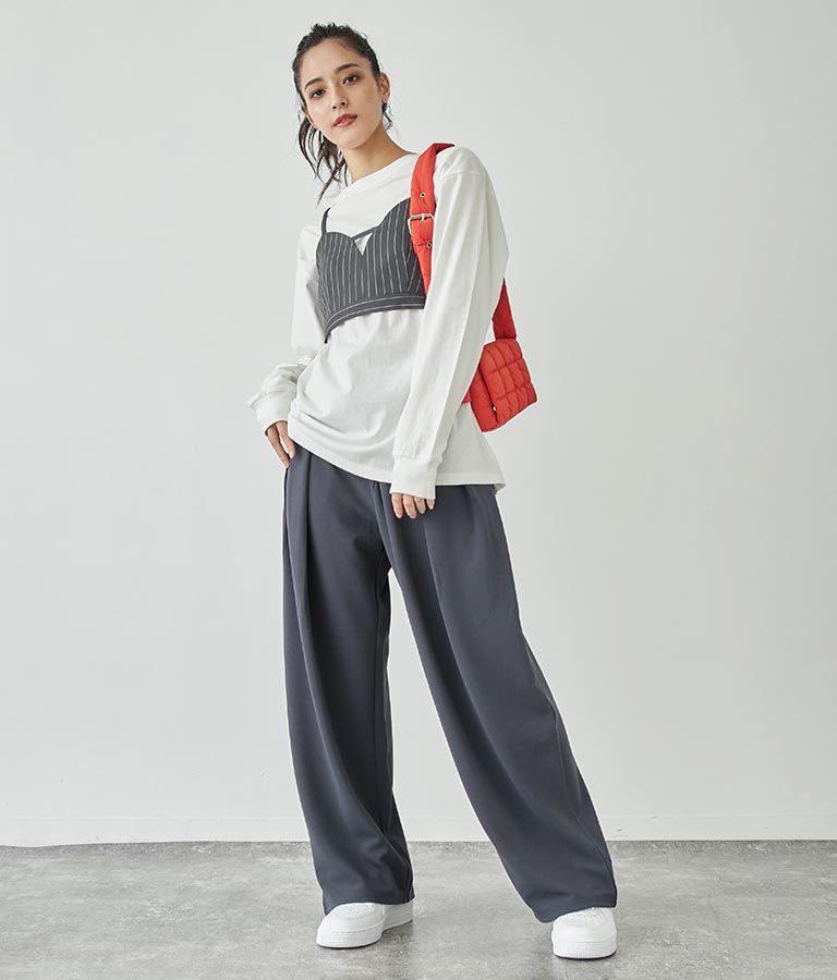 コンパクトなトップスやショート丈トップスと合わせたトレンド感のあるストリートコーデや、ビッグシルエットTシャツやスウェットを合わせてカジュアルにコーディネートしたり、シャツやジャケットを合わせて綺麗めに着こなしたりと様々に着まわせるアイテムです。