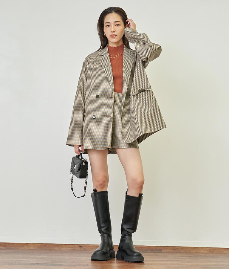 同素材を使用した【チェック柄テーラードジャケット】とセットアップでも着用可能です。