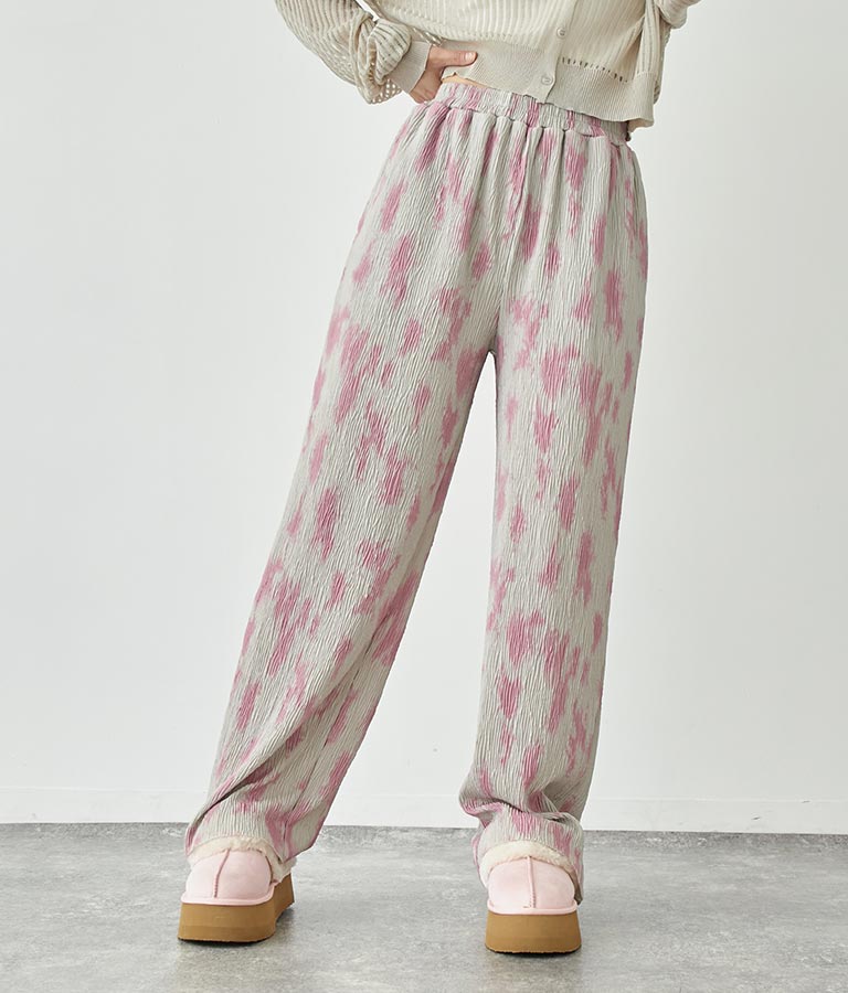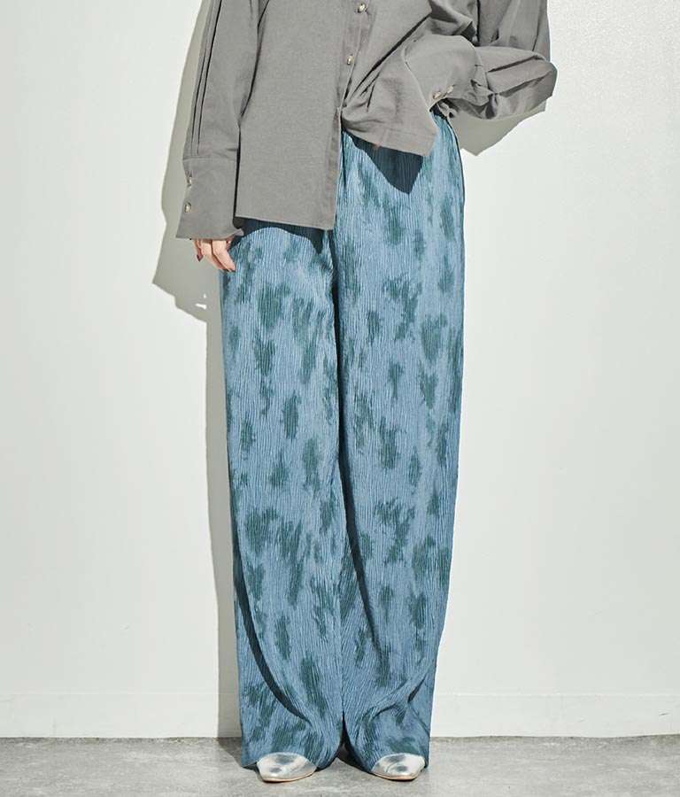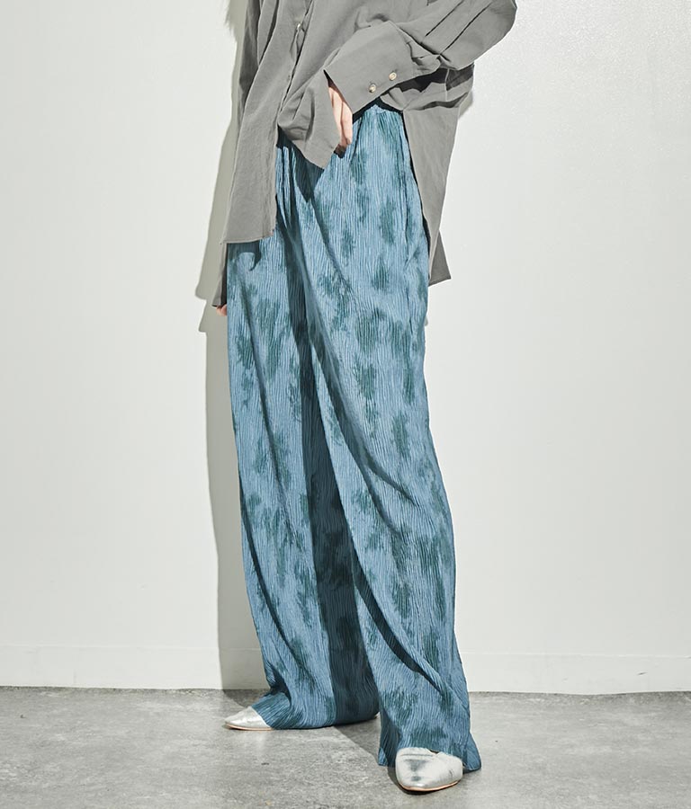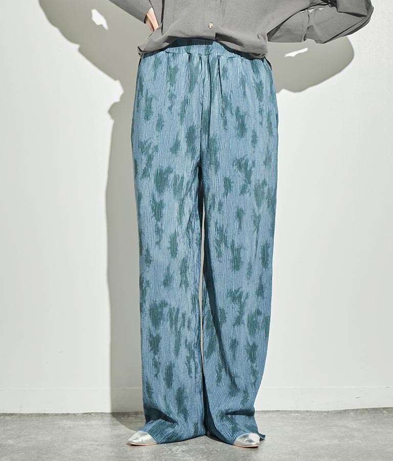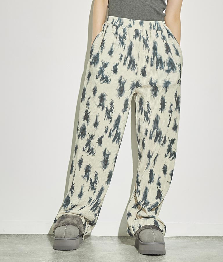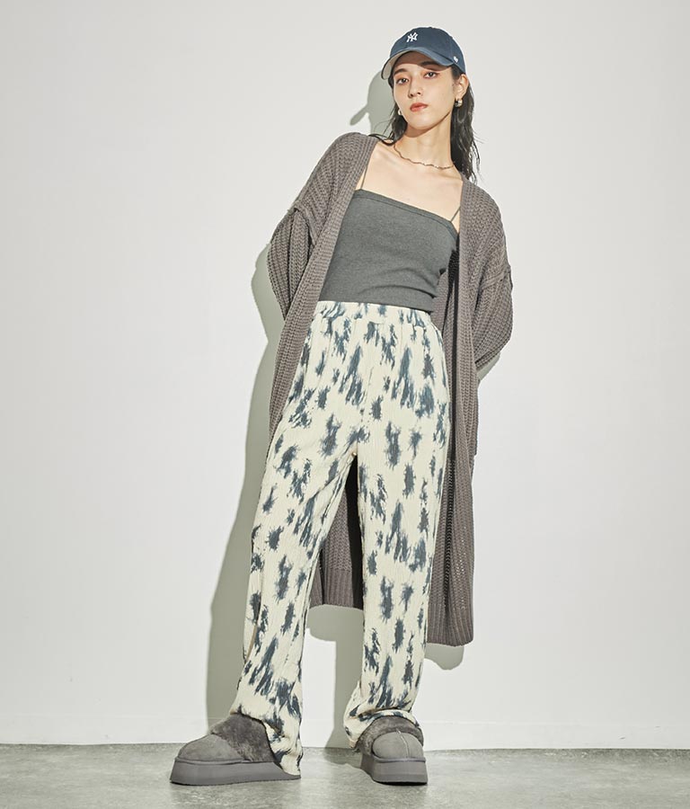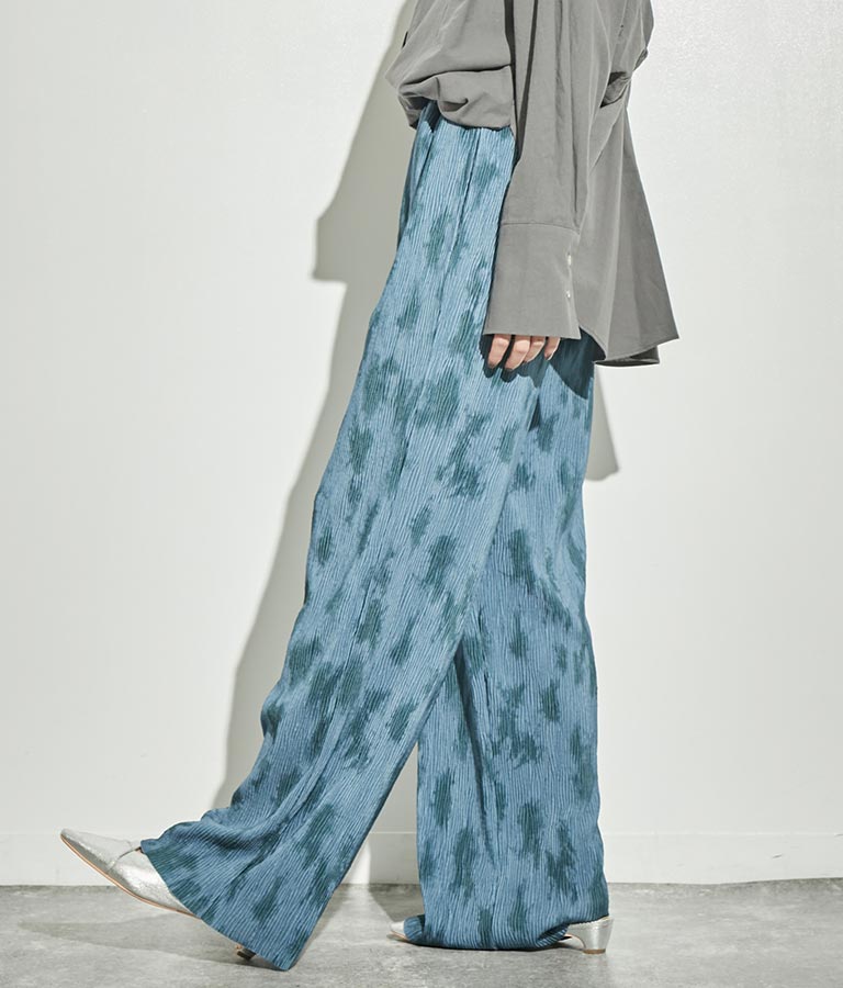 ニュアンス感ある柄がコーデの主役になるプリーツパンツ。