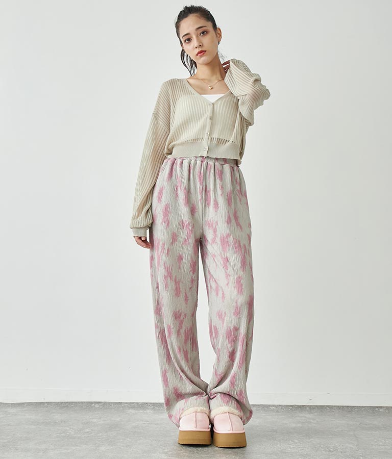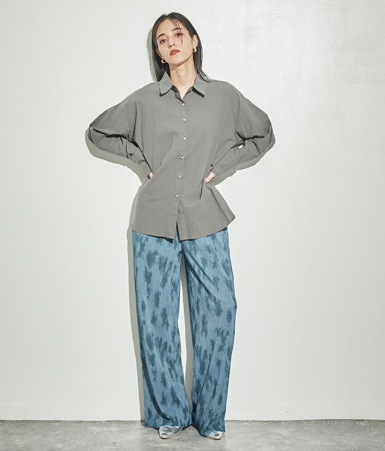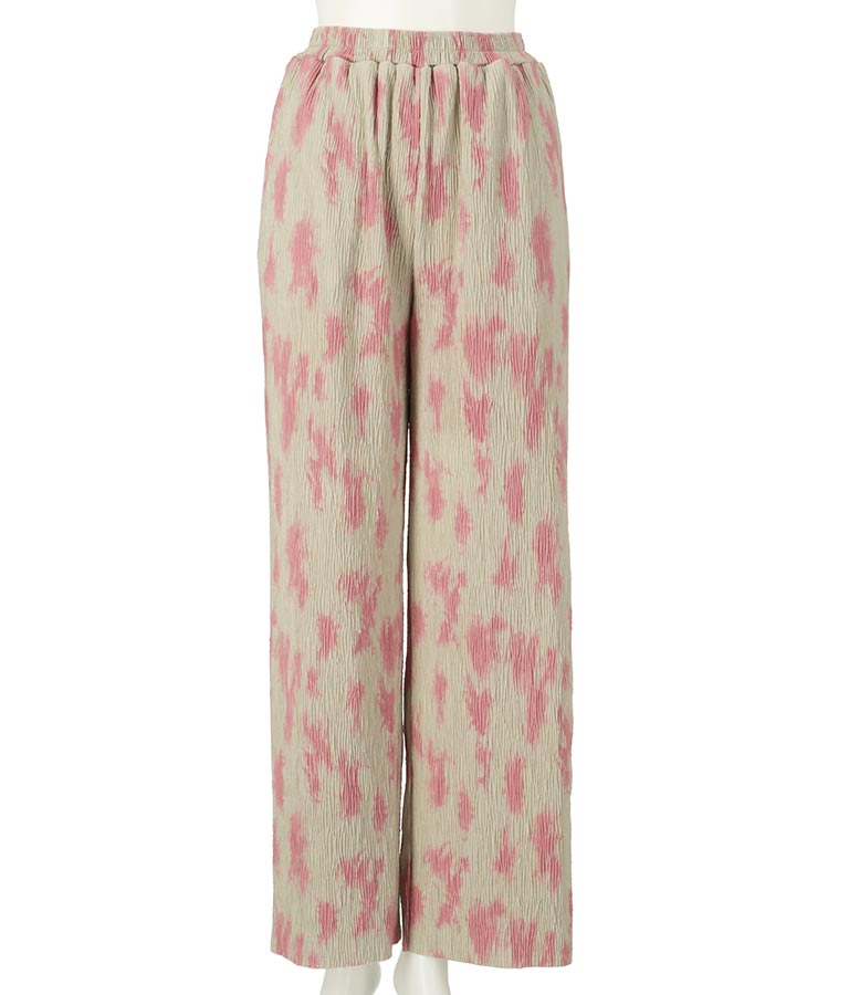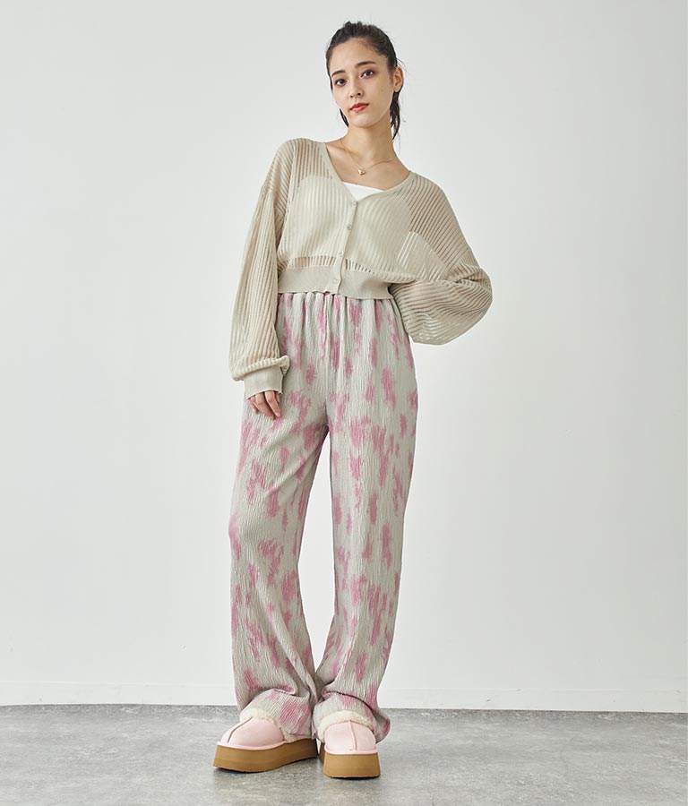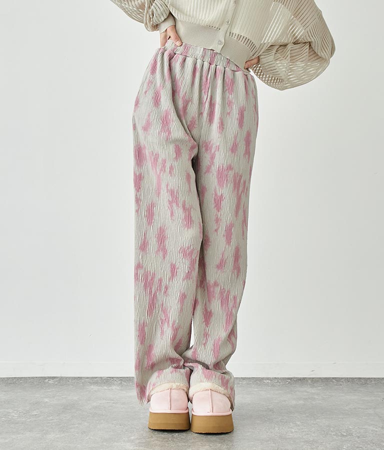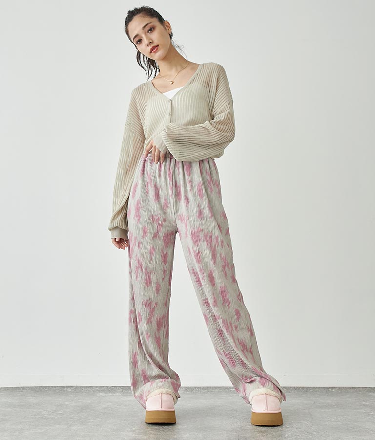 ニュアンス感ある柄がコーデの主役になるプリーツパンツ。