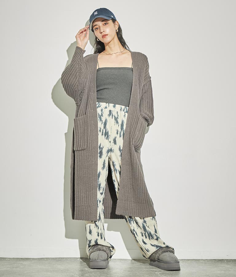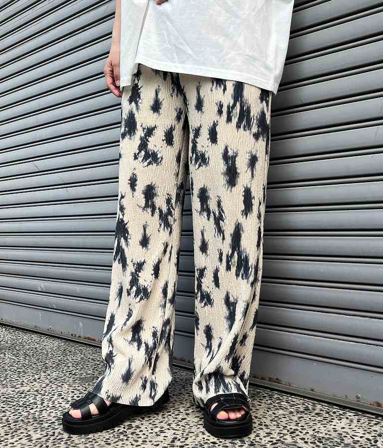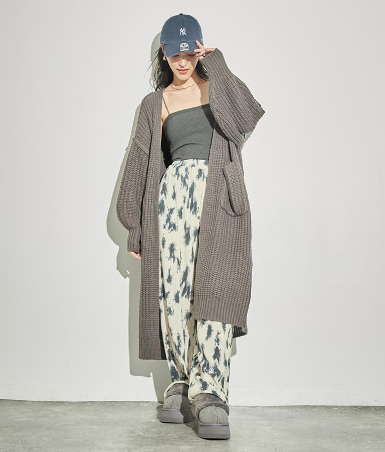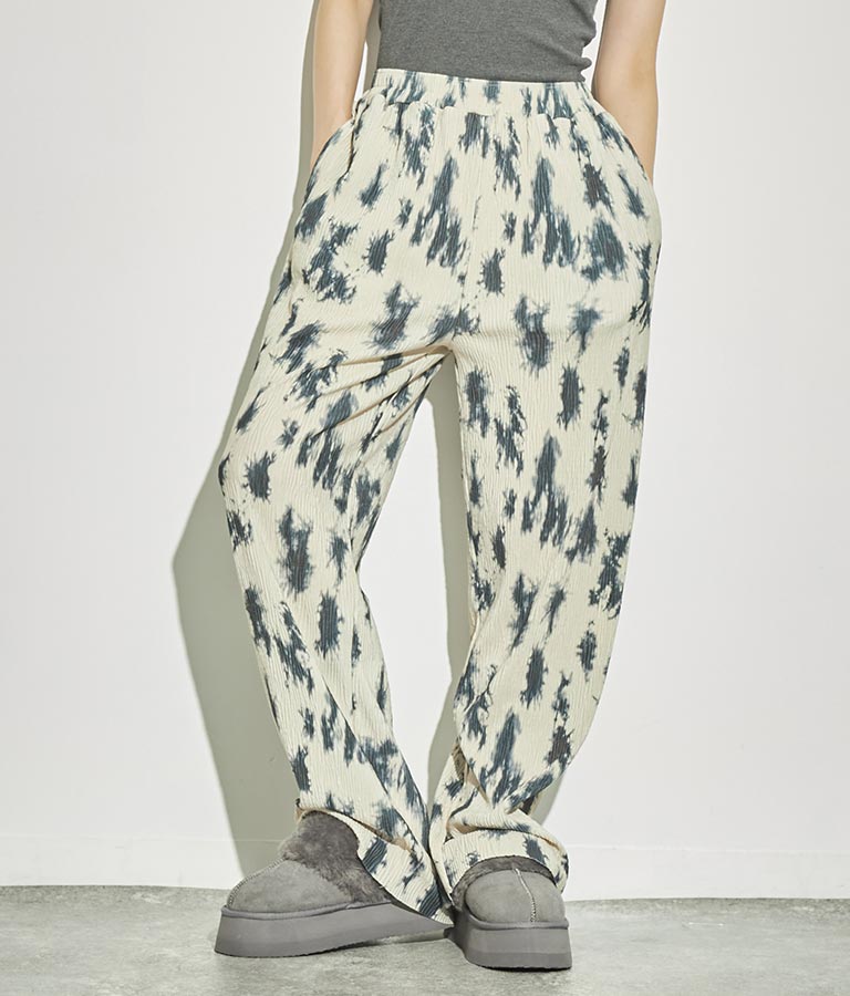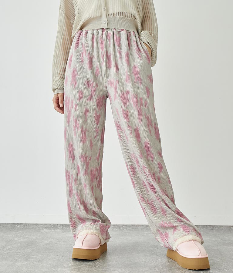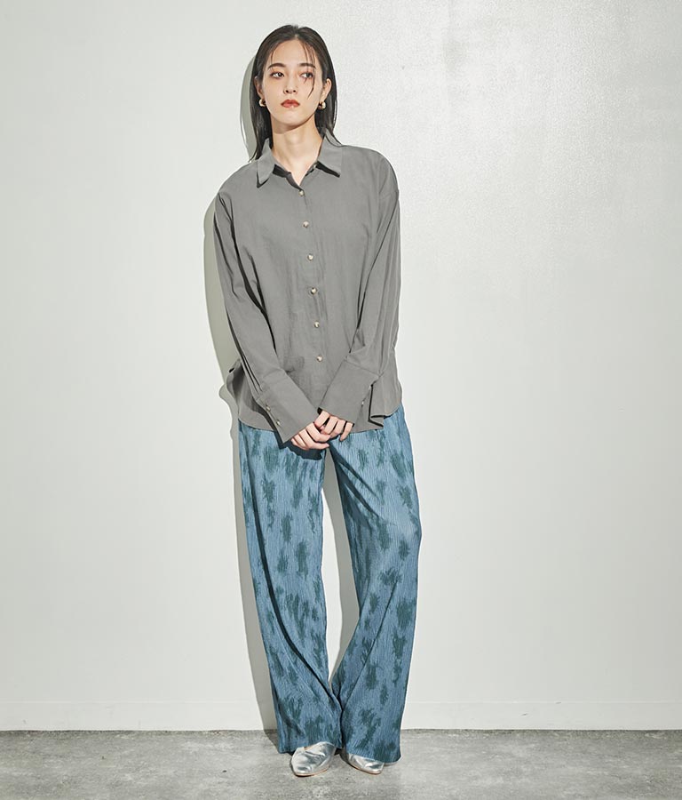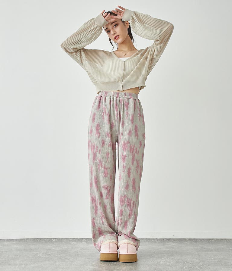 ニュアンス感ある柄がコーデの主役になるプリーツパンツ。