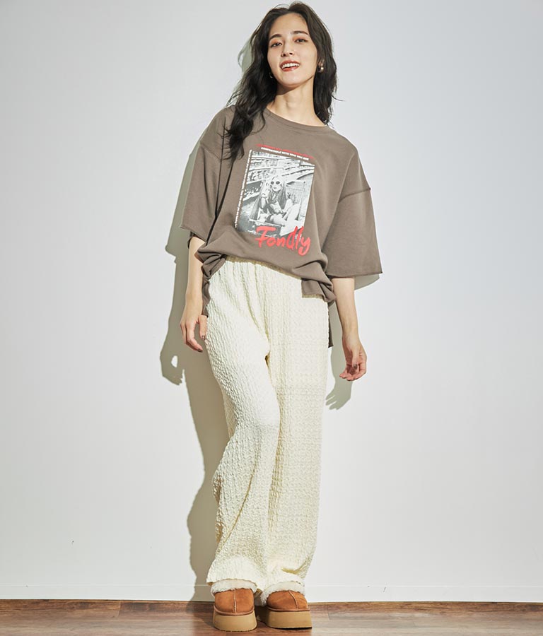ジャガードカットソーワイドパンツ【セットアップ着用可】 -