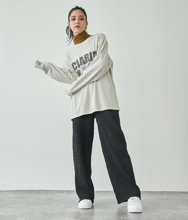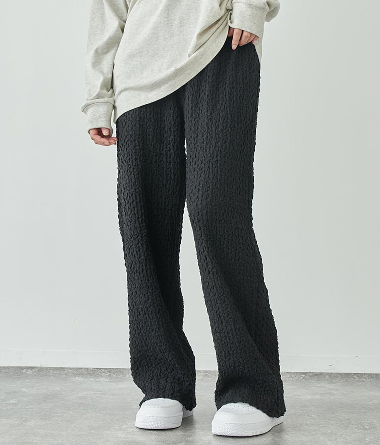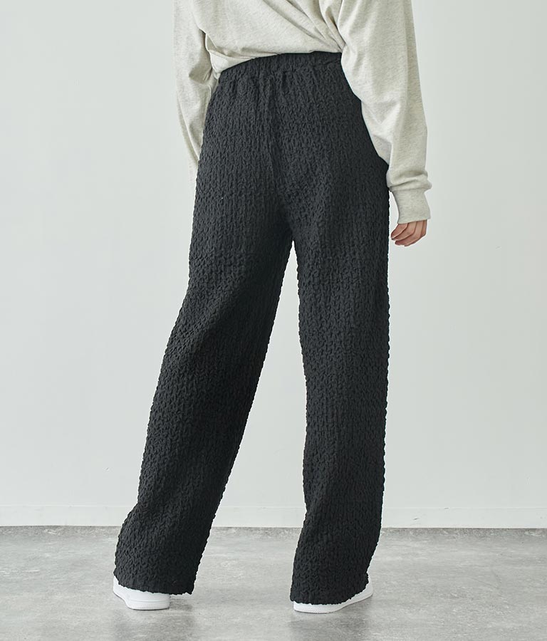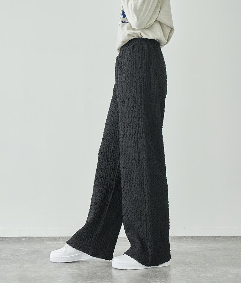着こなしにやわらかなニュアンスを加えるジャガードカットソーワイドパンツ。