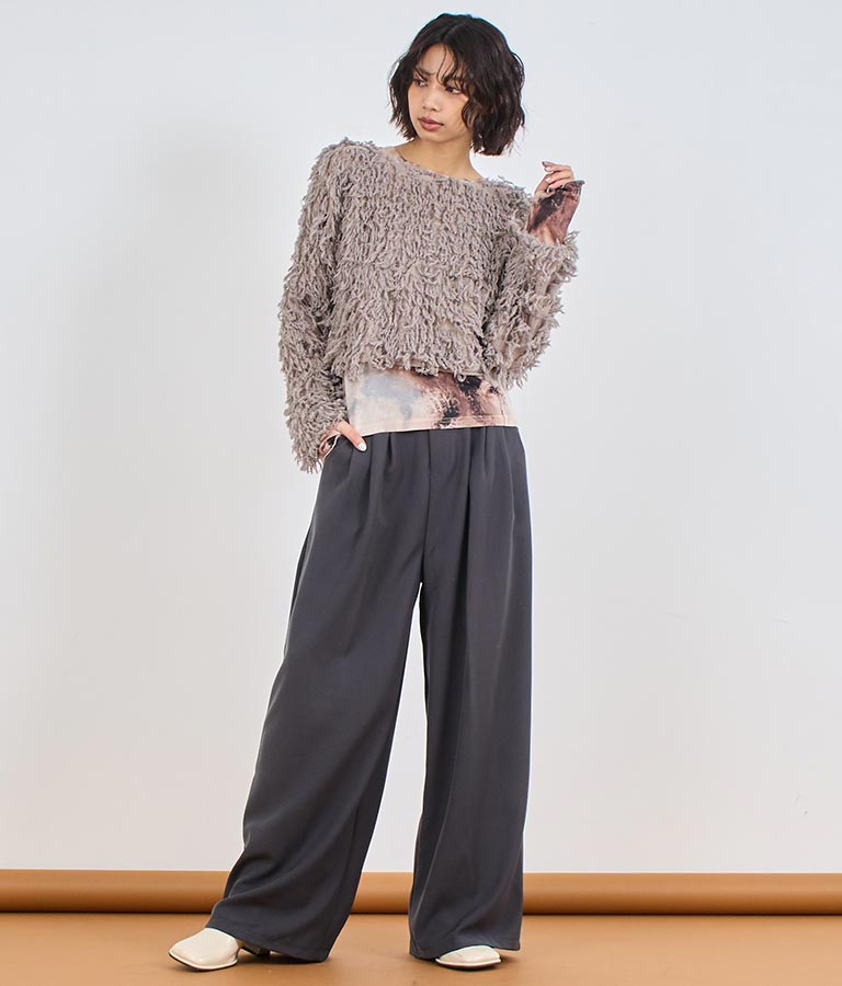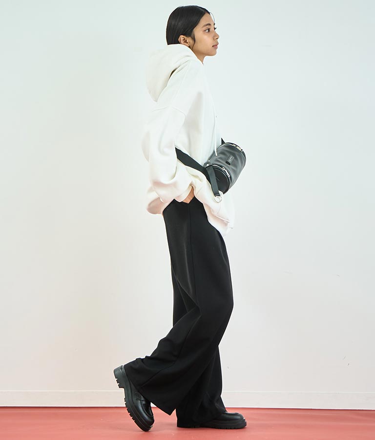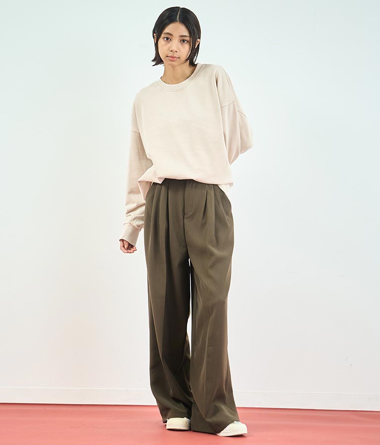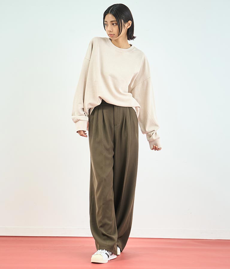 ボディラインを拾わないストンと落ちるストレートワイドシルエット。