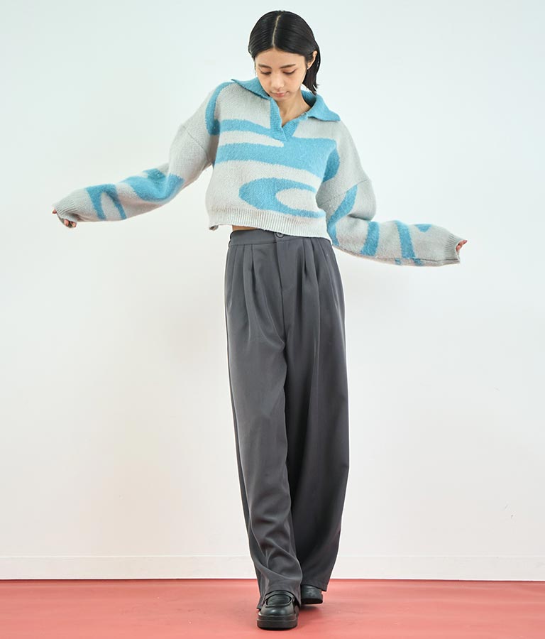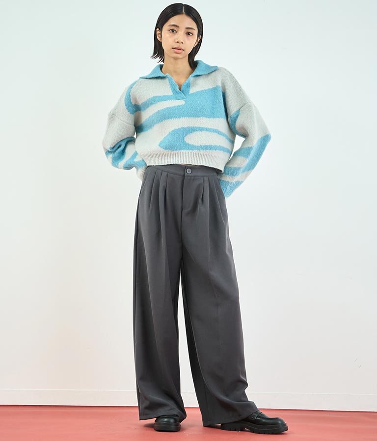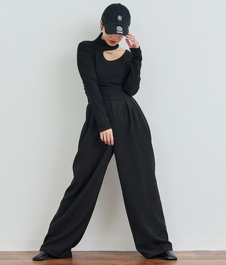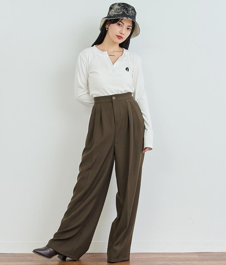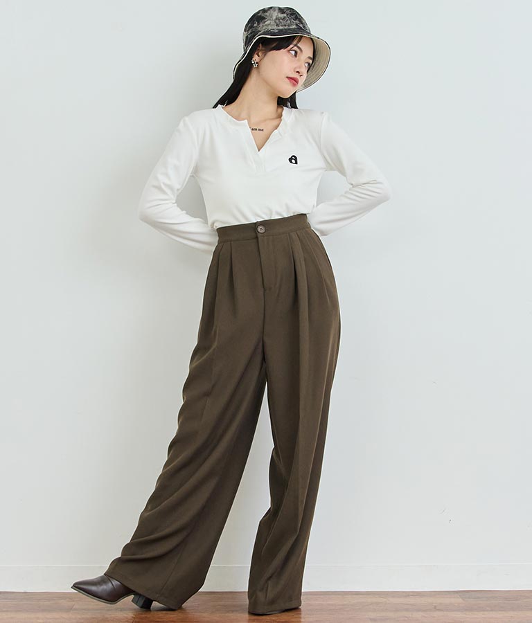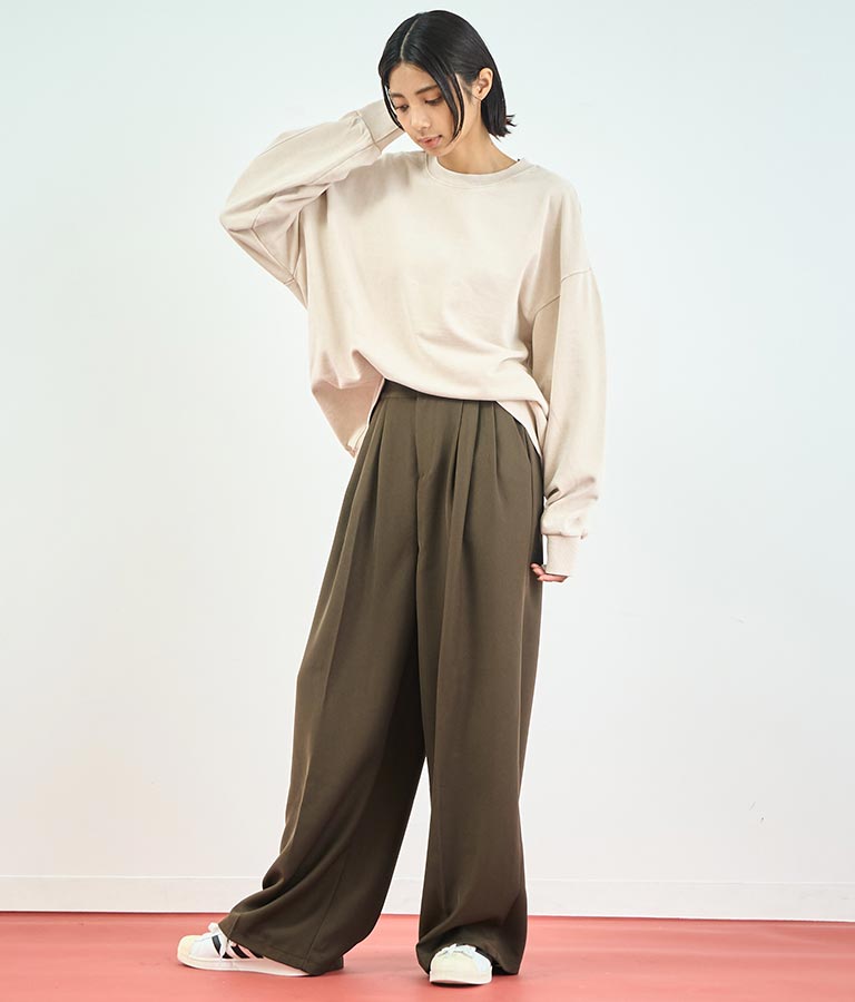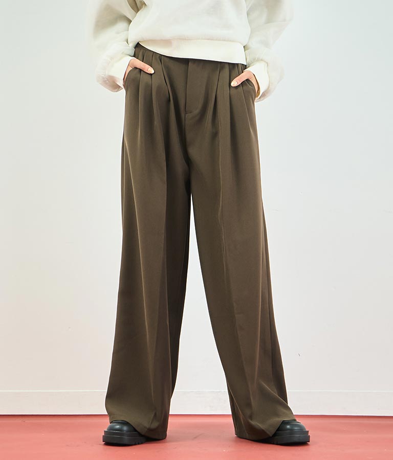 センタープレス タック ワイド スラックス パンツ 152-5608