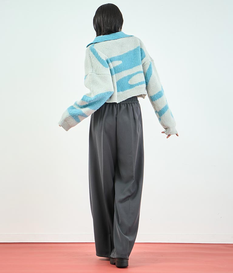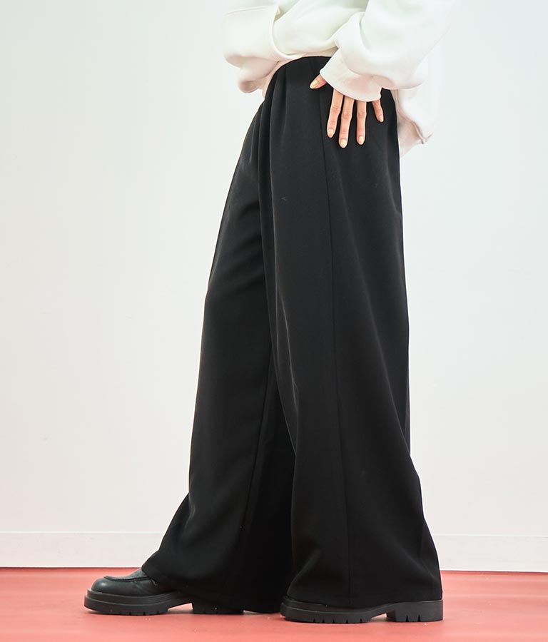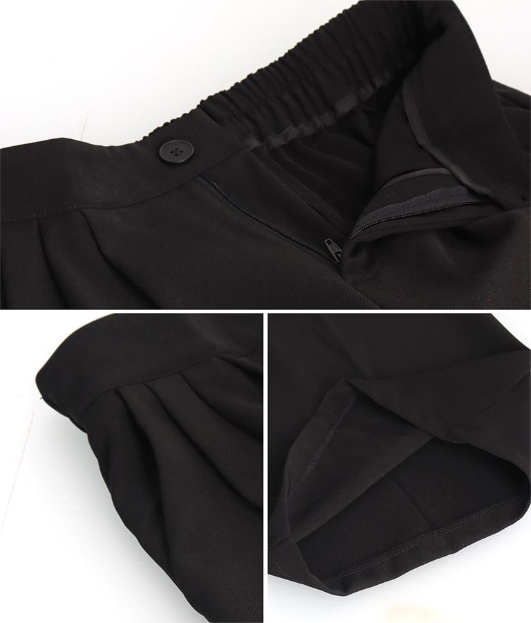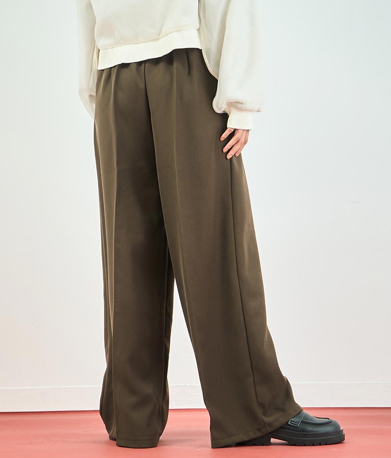 センタータックがこだわりの綺麗なシルエットを演出し、後ろはゴム仕様でストレスフリーな履き心地です。