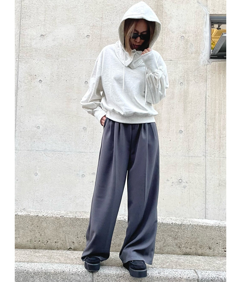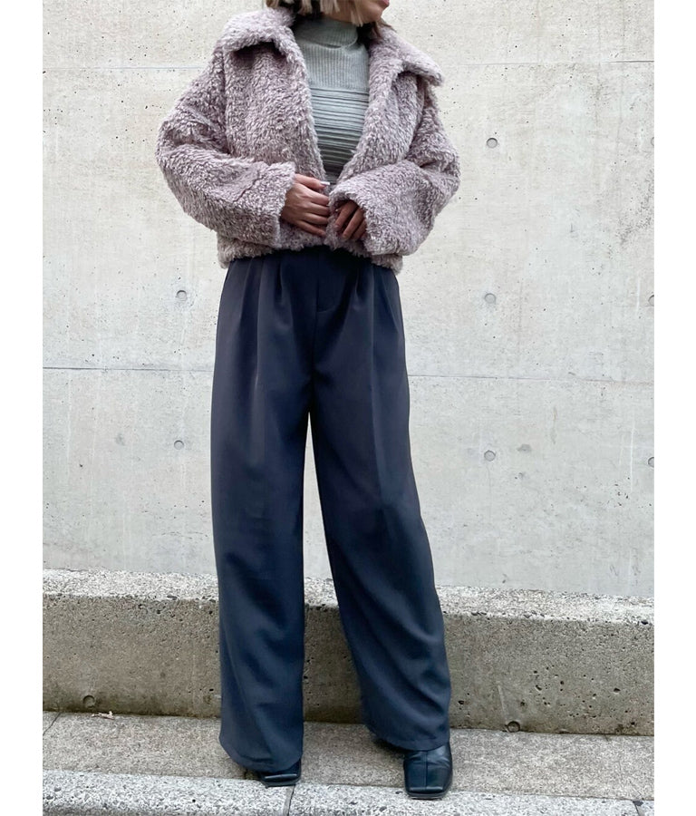 センタープレス タック ワイド スラックス パンツ -