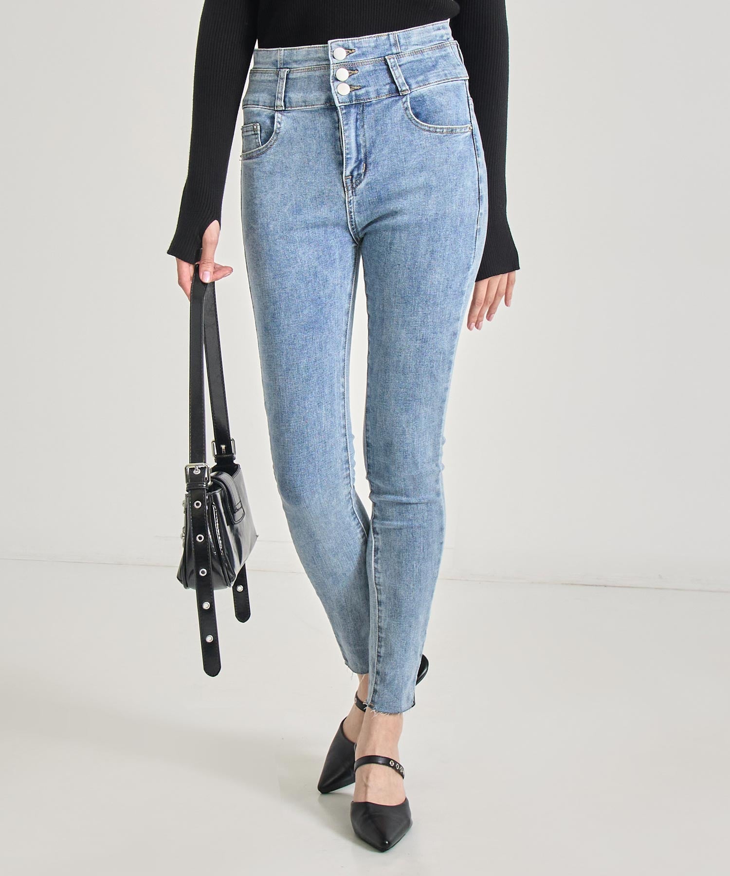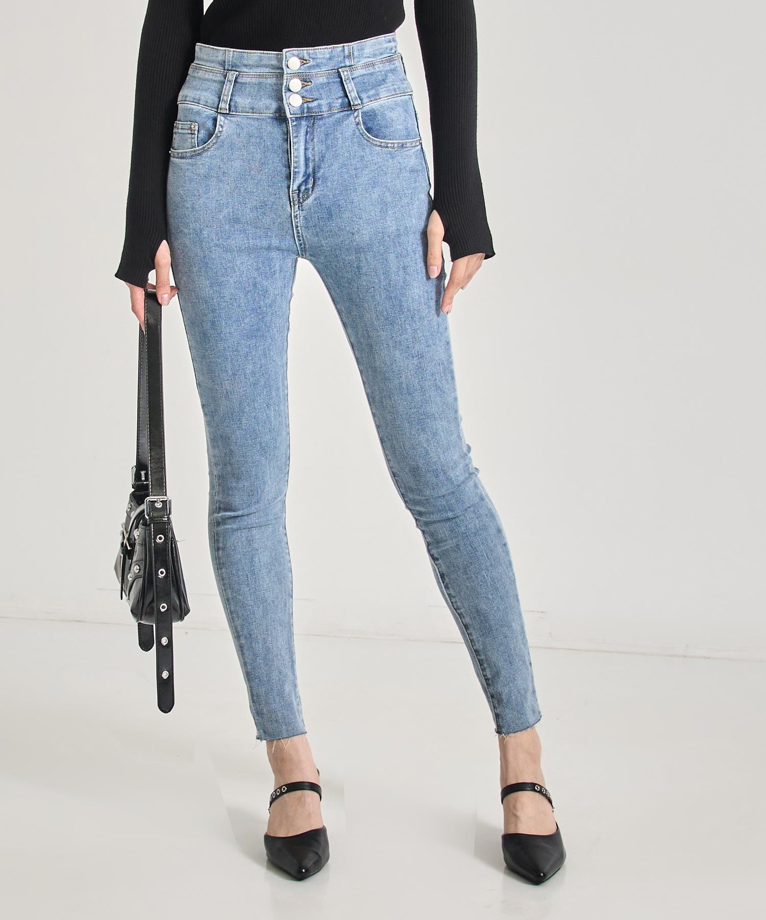 美しいシルエットを引き出す、ハイウエストスキニーデニム。