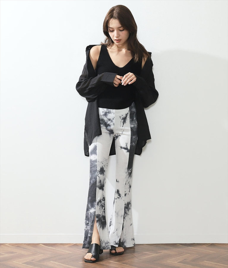 裾にかけて広がるフレアシルエットでスッキリと見えるのが嬉しいポイント。