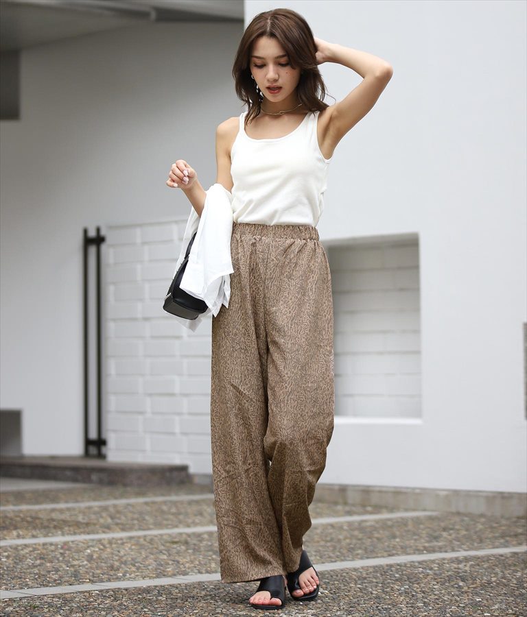 着用するだけでコーデが映える、アニマル柄のワイドパンツ。