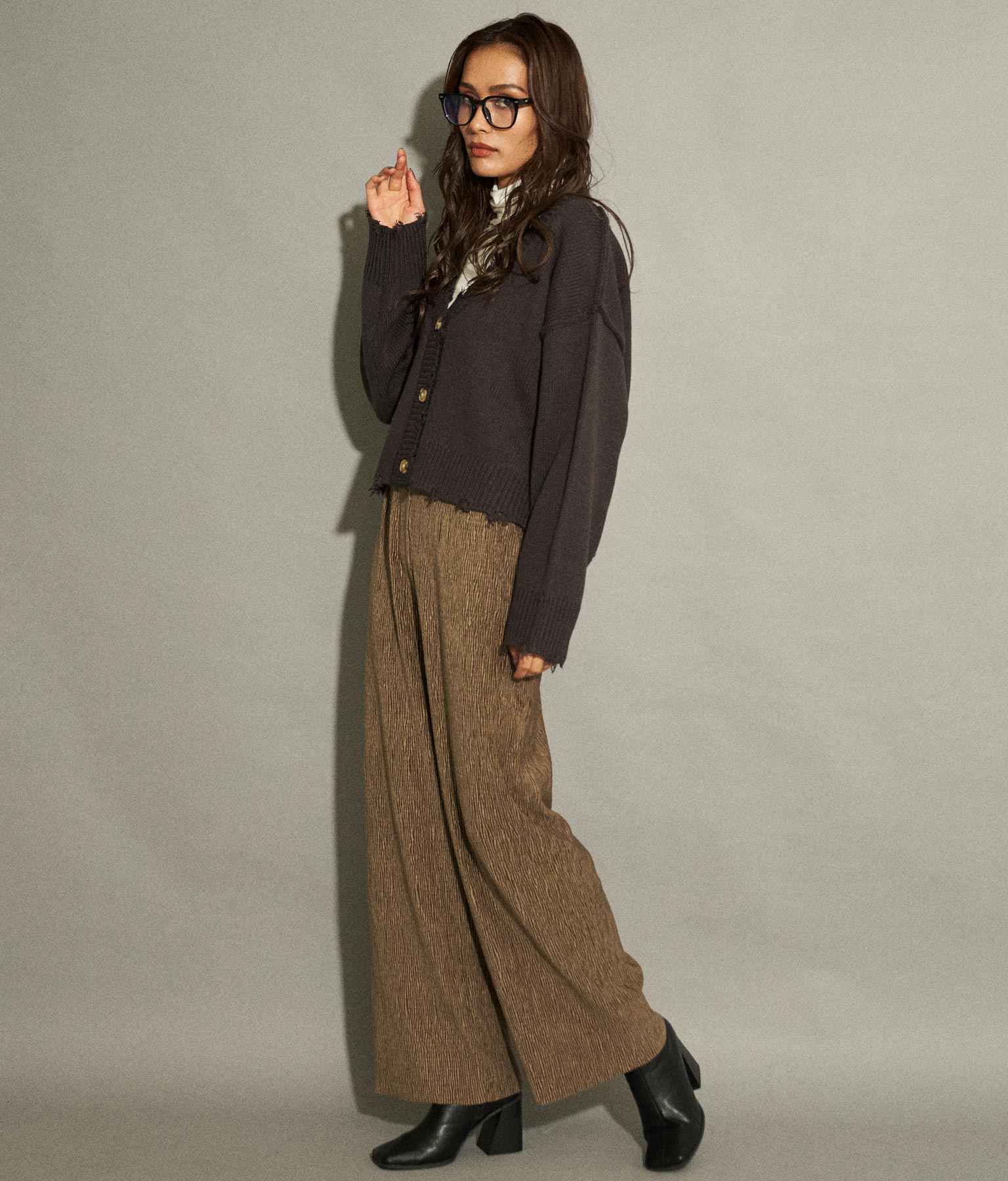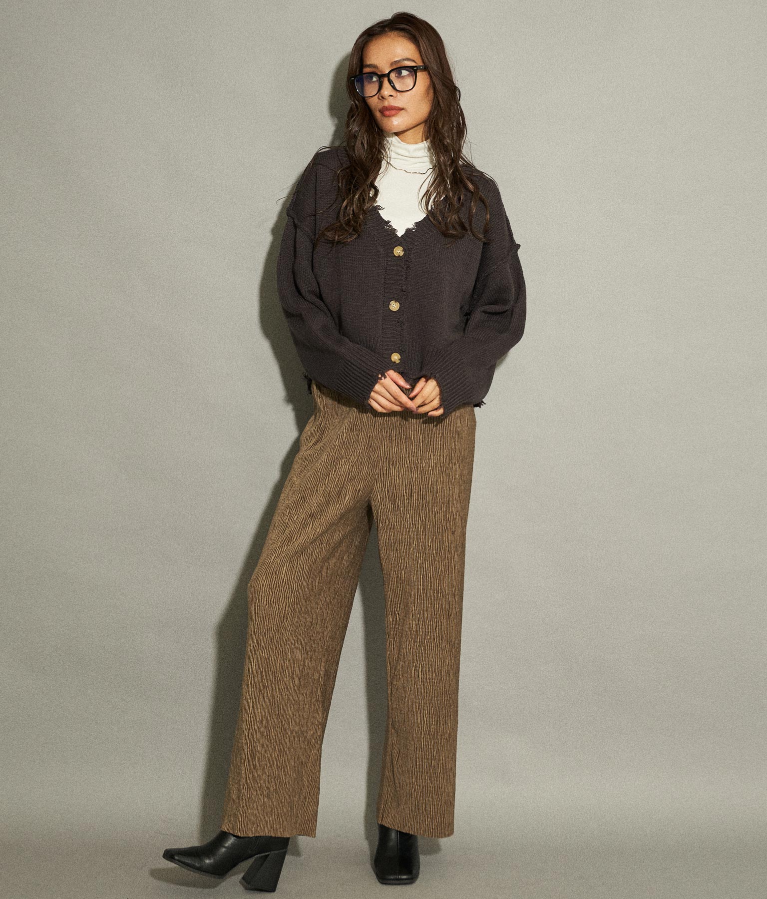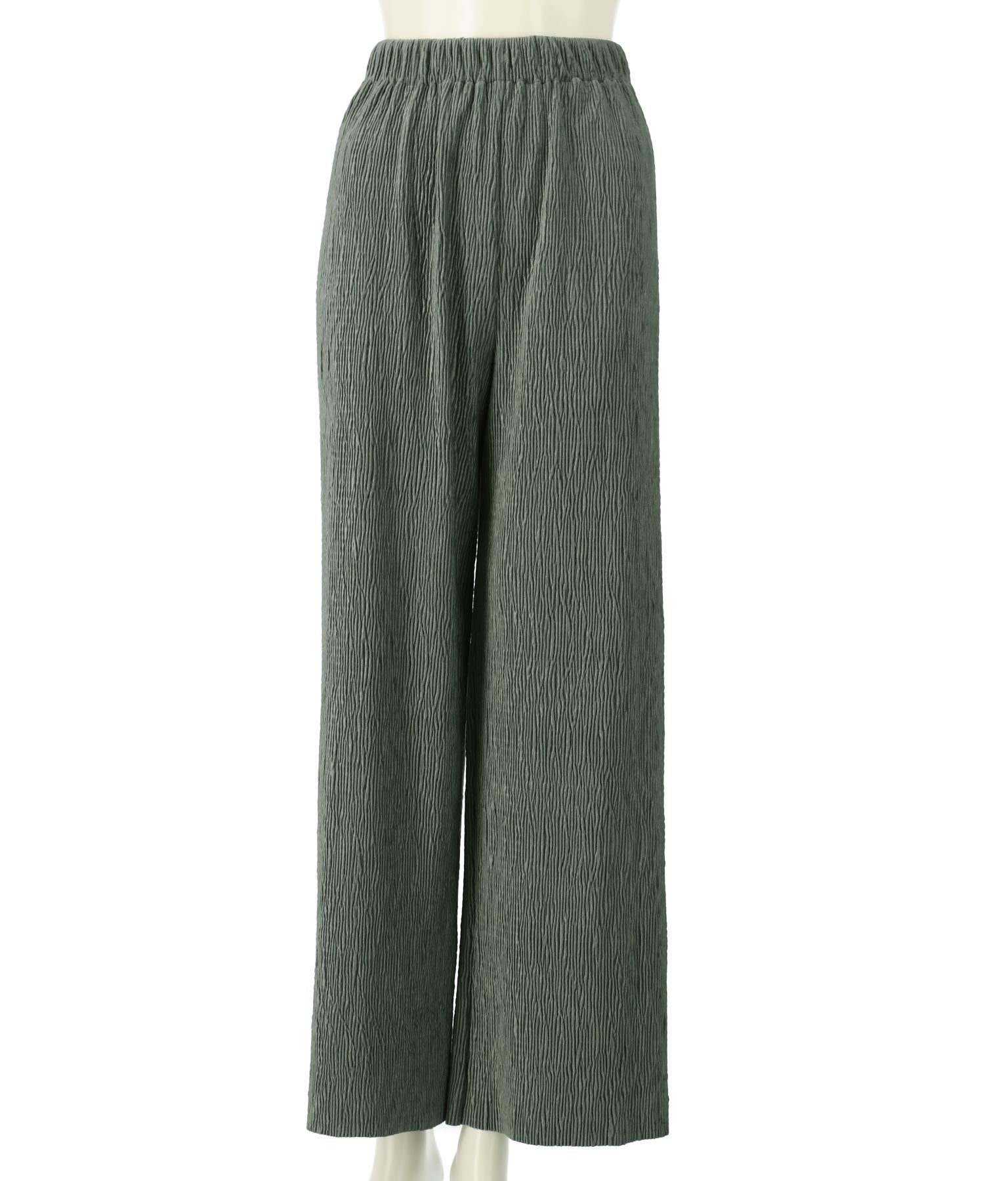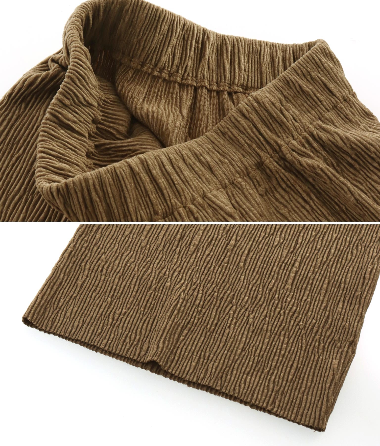 ウエストゴムの履きやすいプリーツ風ワイドパンツ。