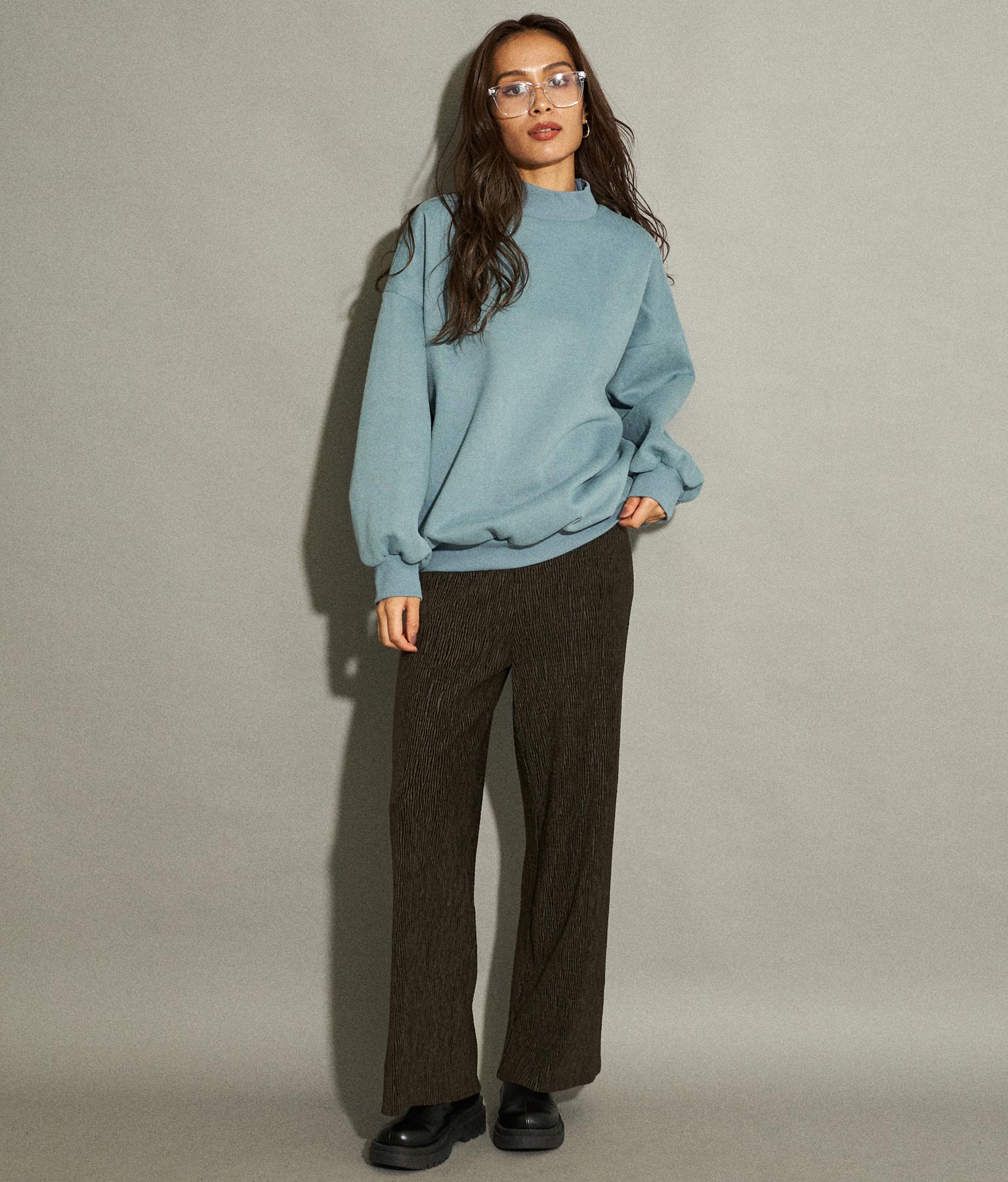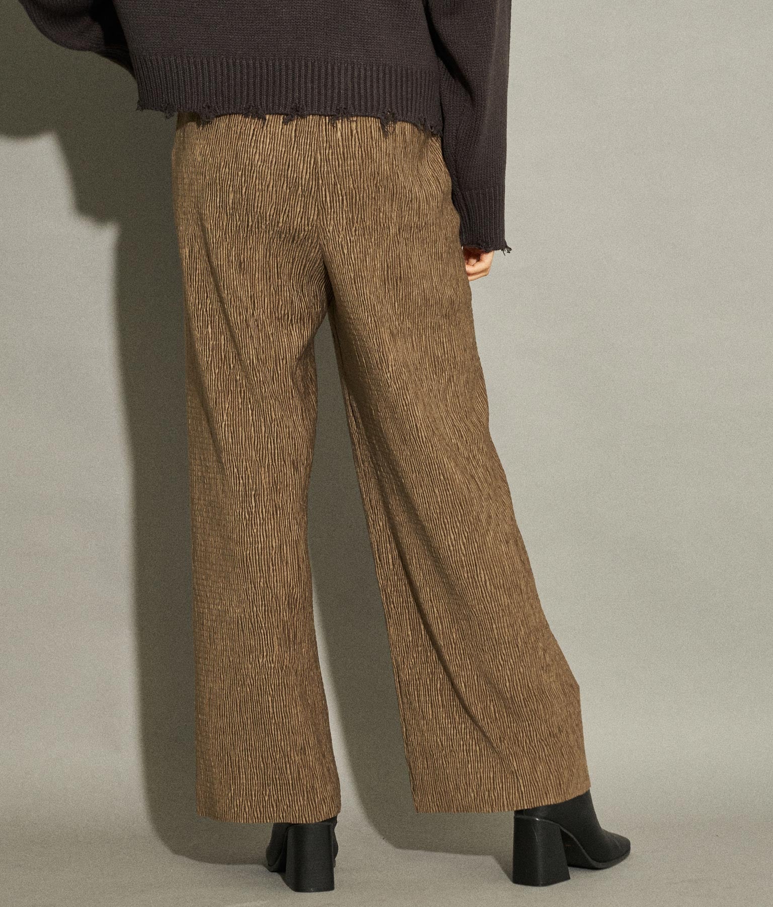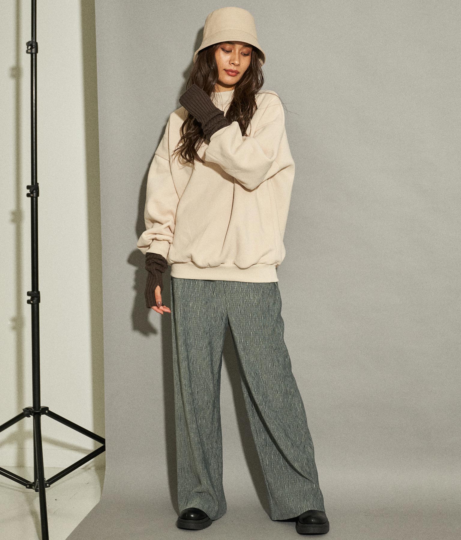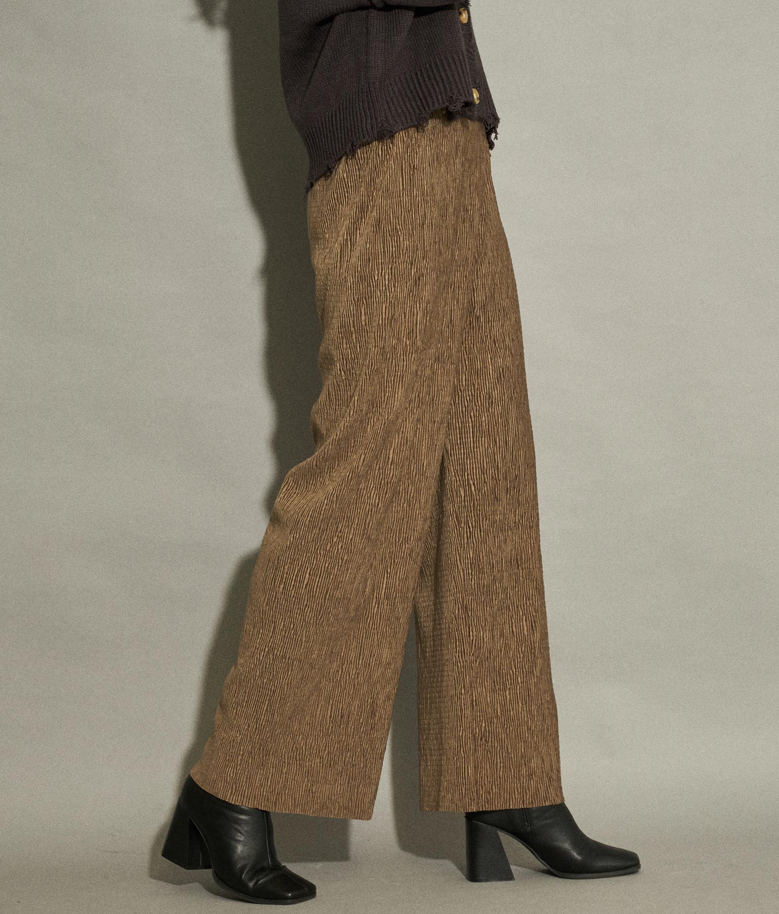 ウエストゴムの履きやすいプリーツ風ワイドパンツ。