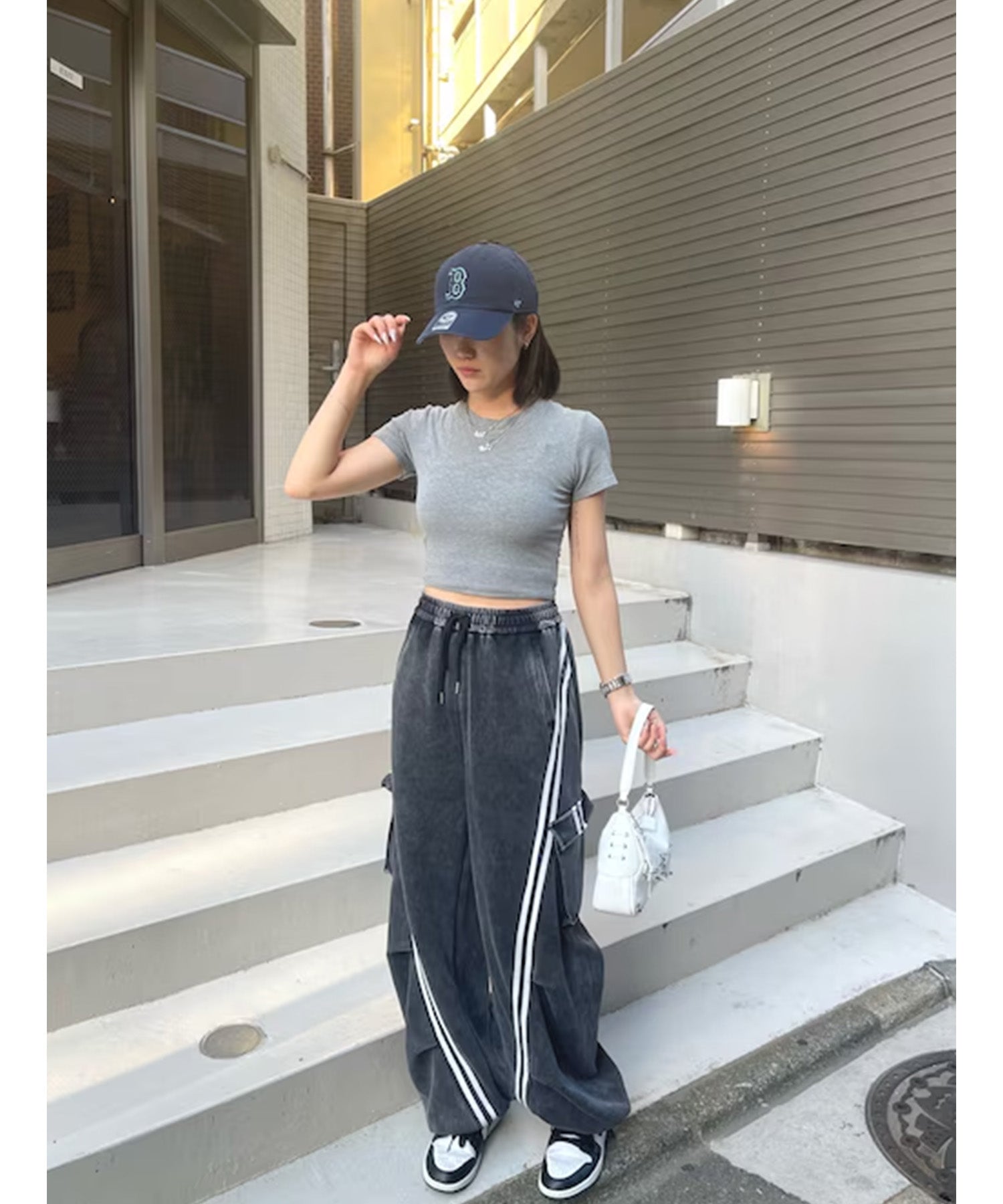 サイドラインが脚長効果をプラスし、スタイリングにアクセントを。