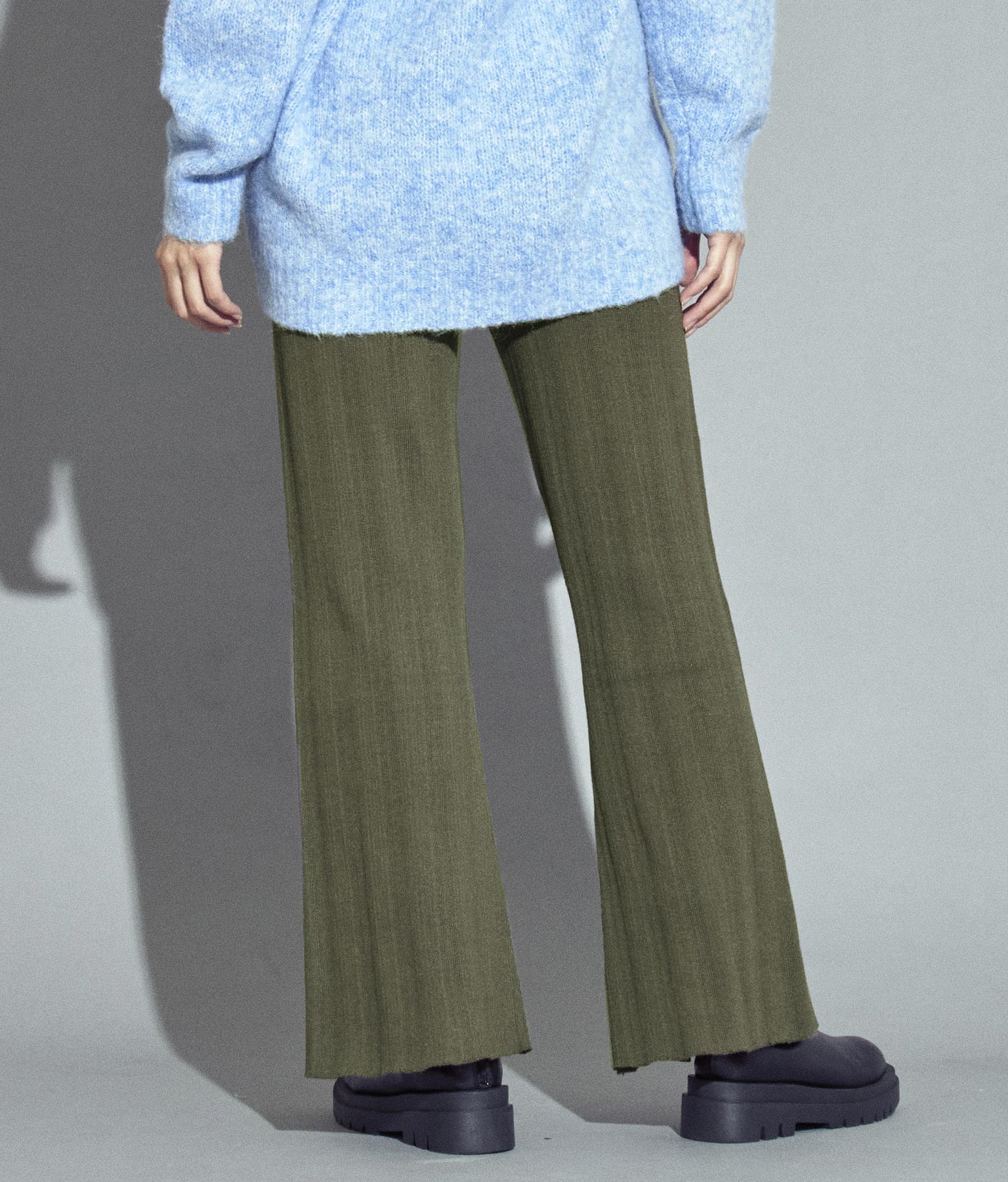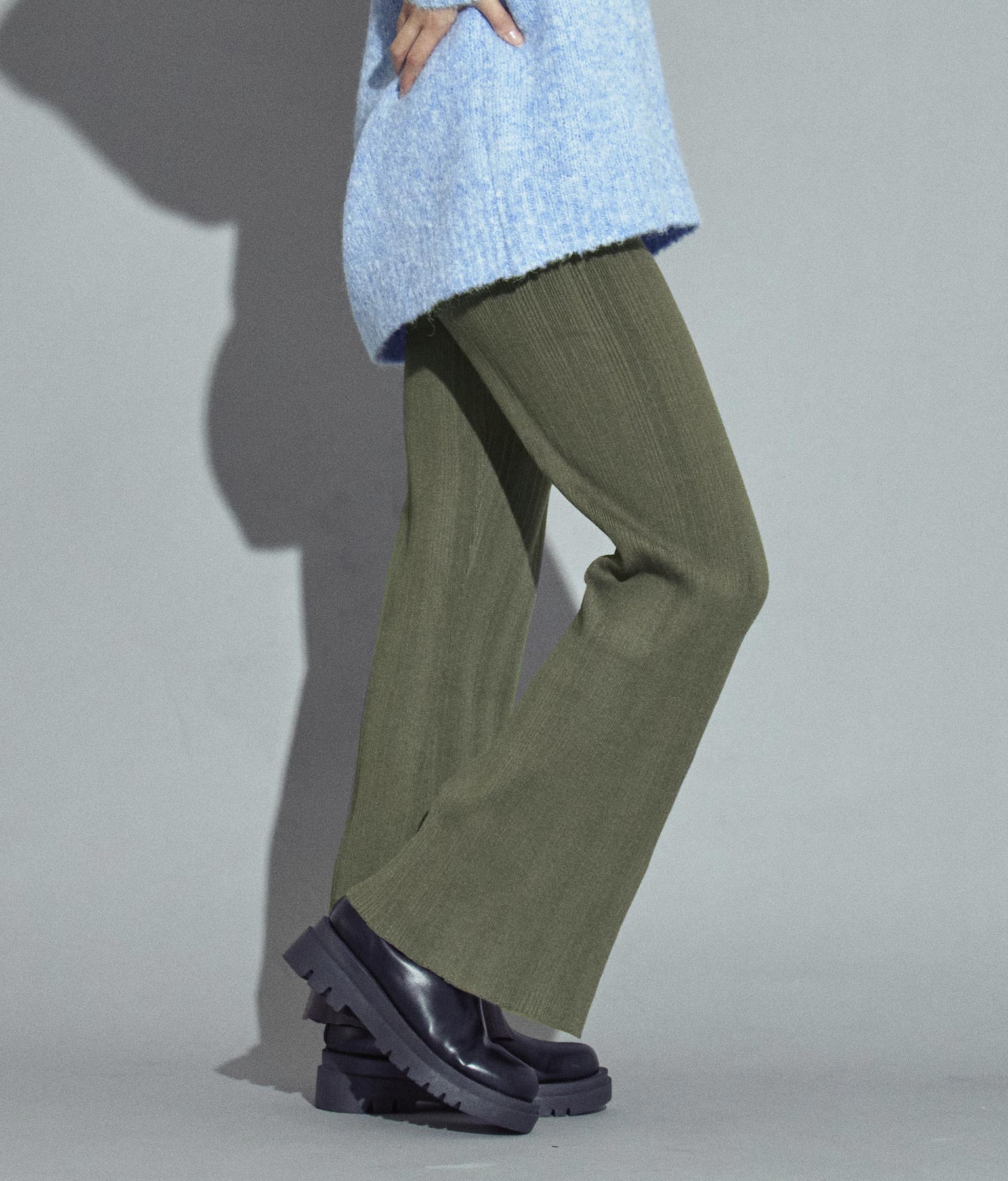 ランダムリブセンタースリットニットパンツ -
