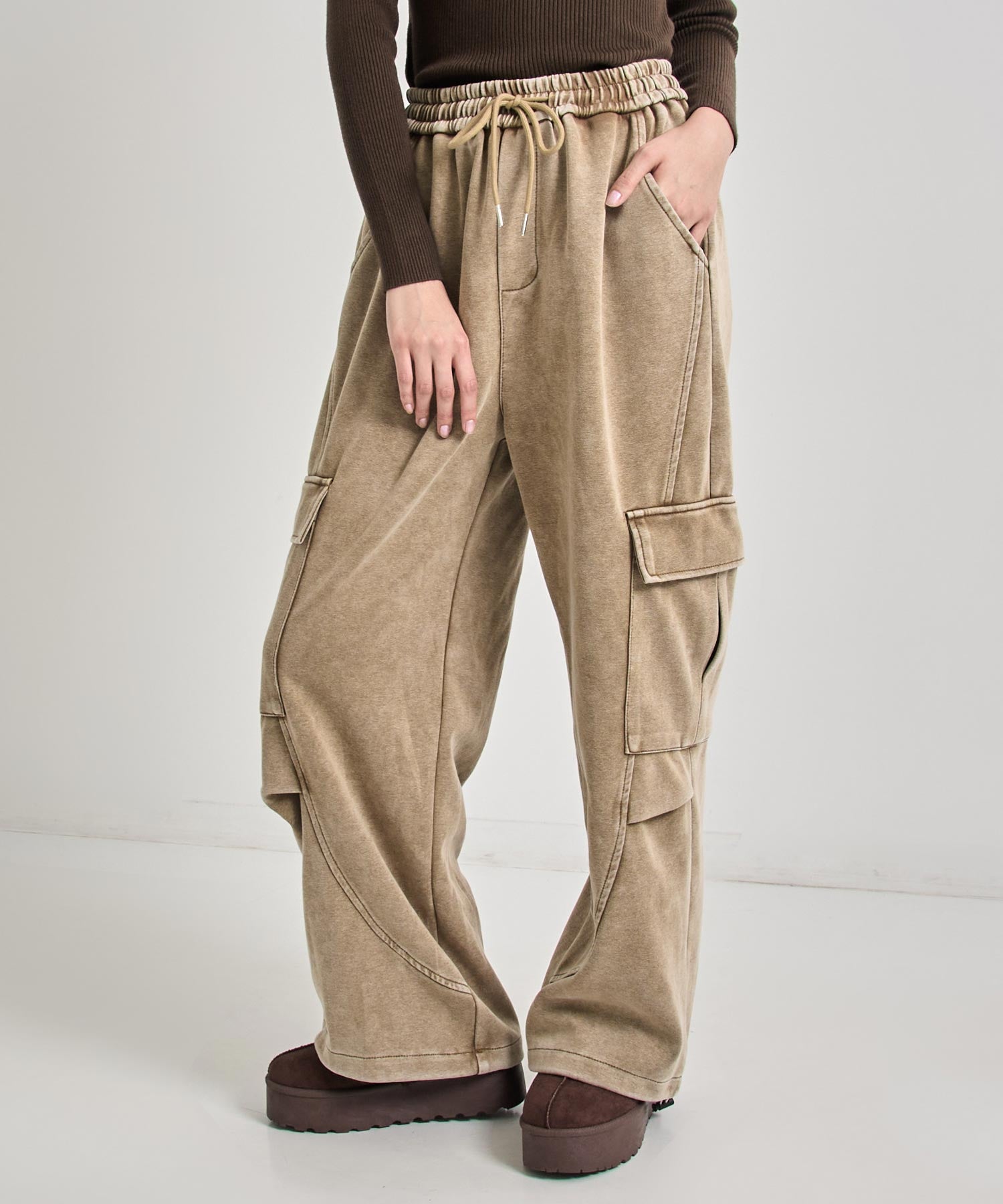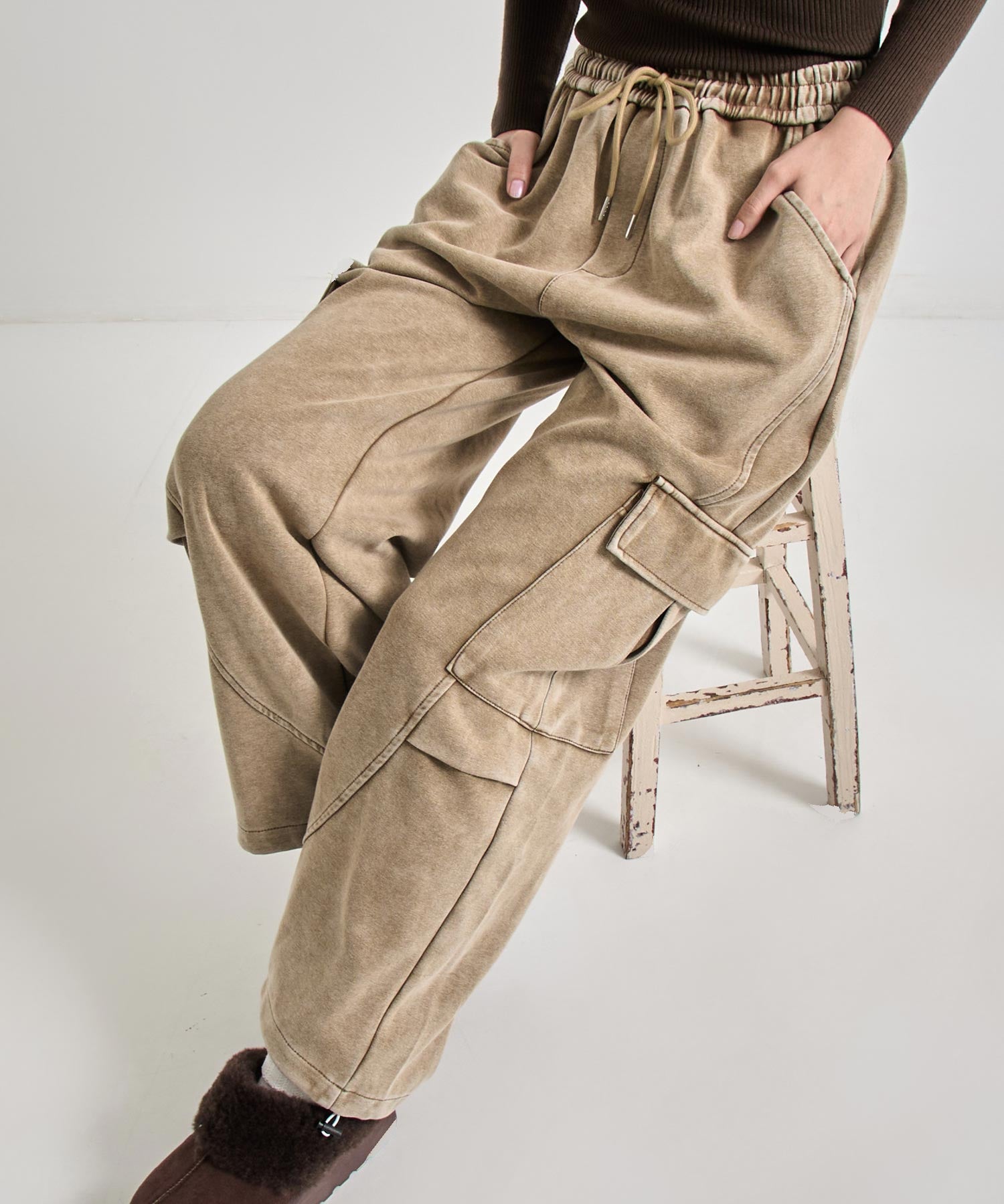 ウォッシュ加工の風合いがこなれ感を引き出すスウェットカーゴパンツ。