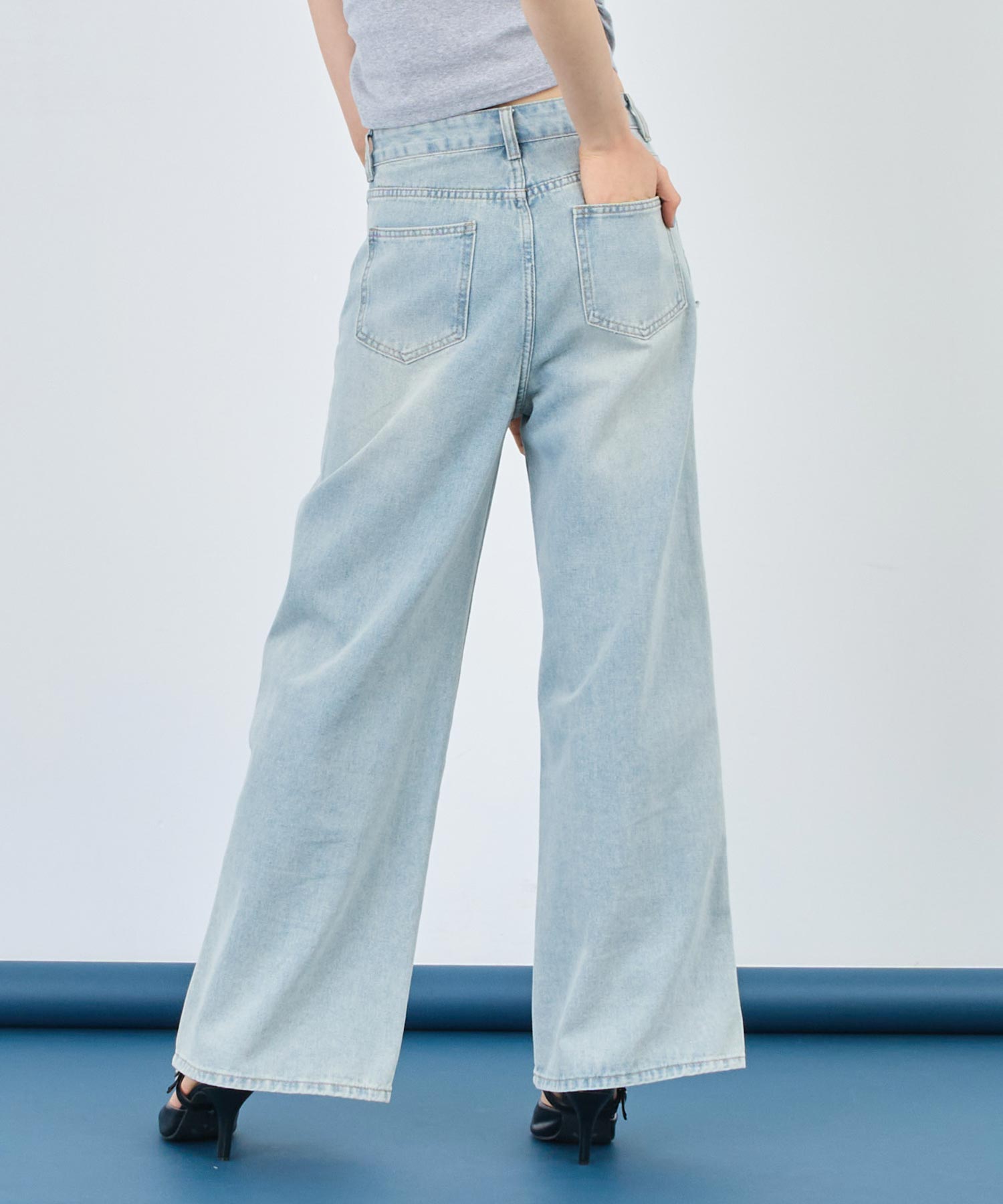 ハイウエスト&ワイドストレートのシルエットは、脚長効果も抜群で、気になる腰まわりも自然にカバーしてくれます。