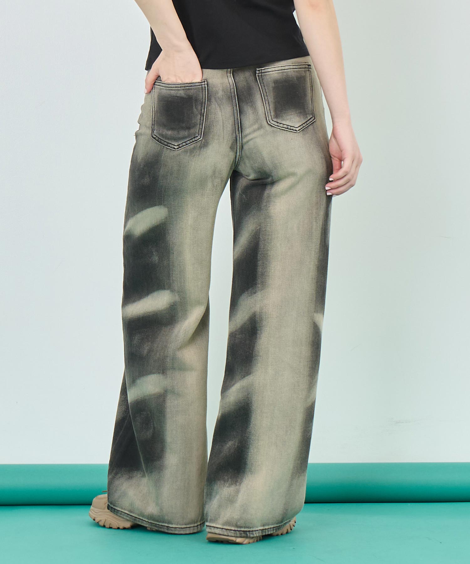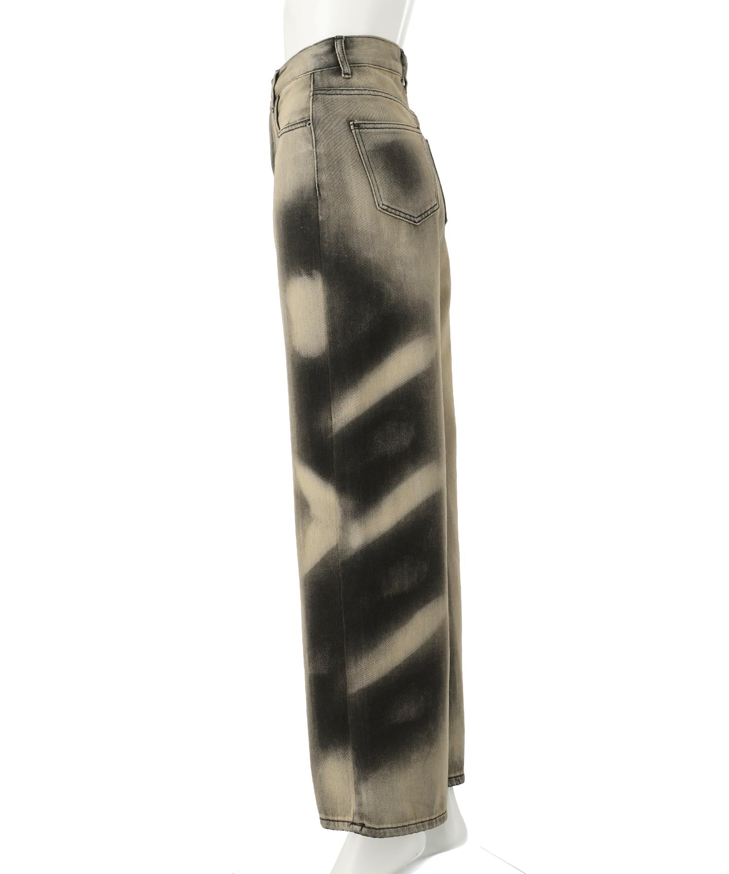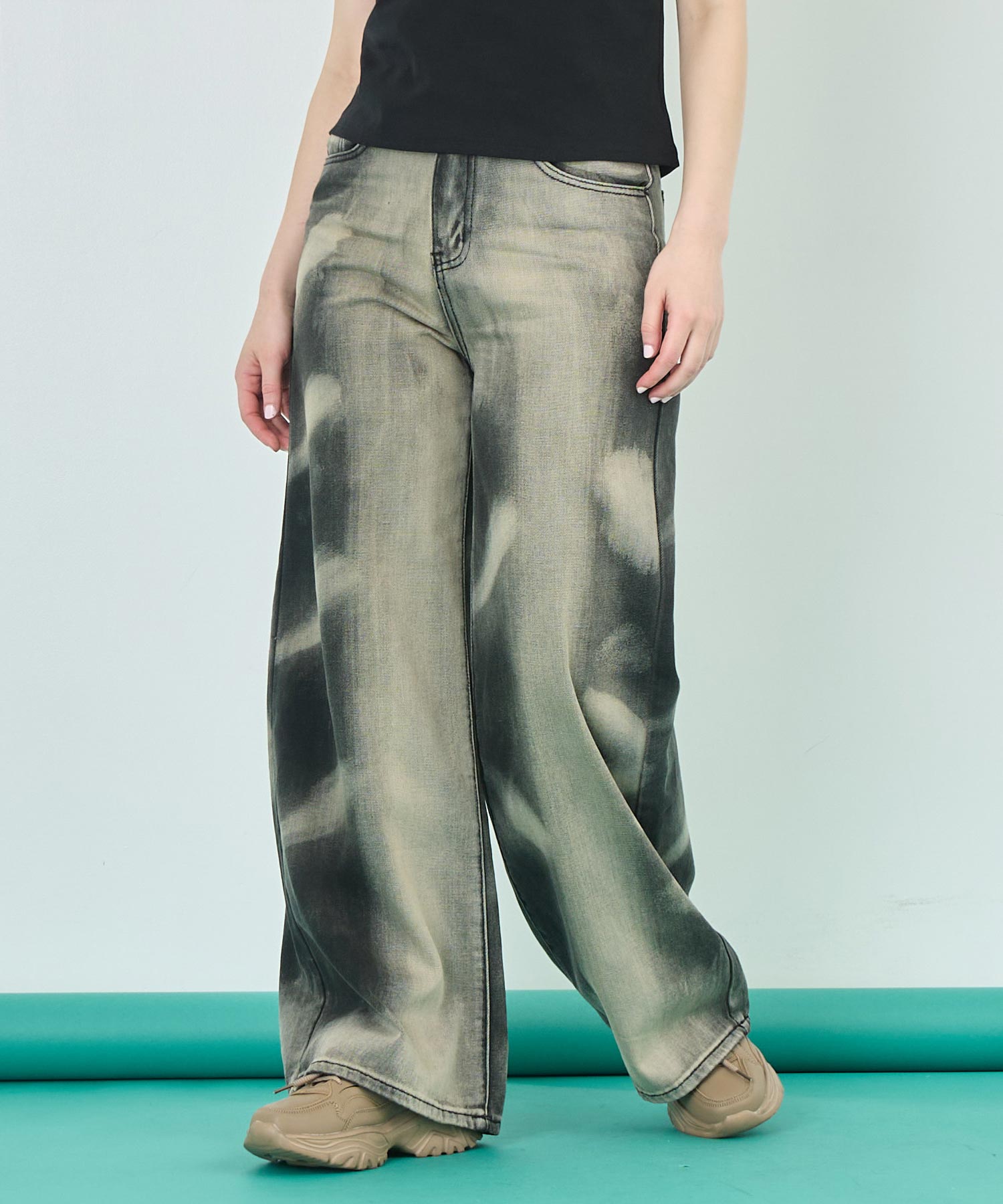 特徴的な“オーバーダイ”加工が、一本一本違う表情を見せてくれるワイドデニムパンツ。